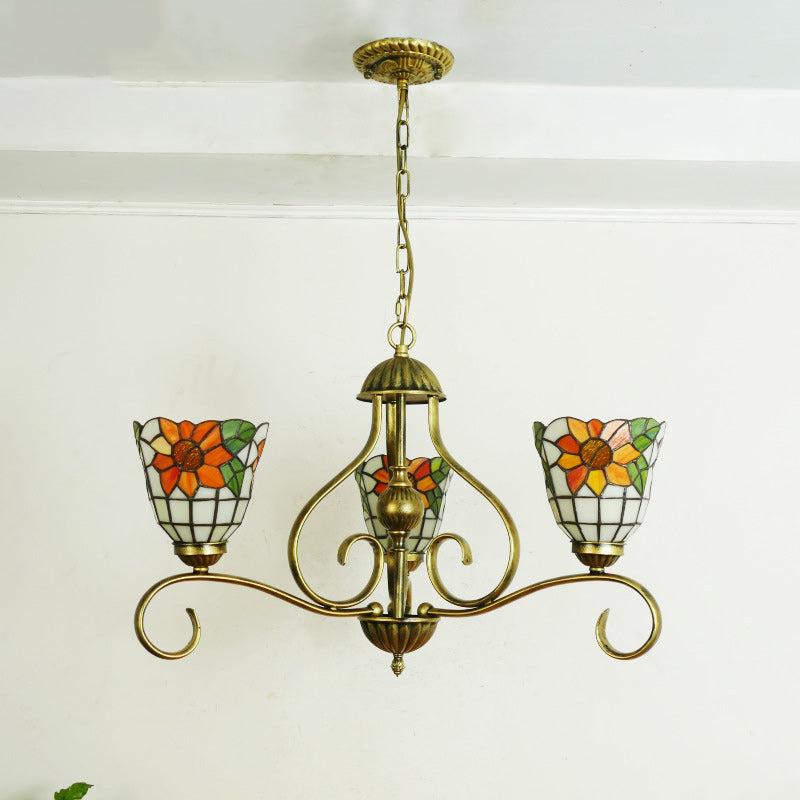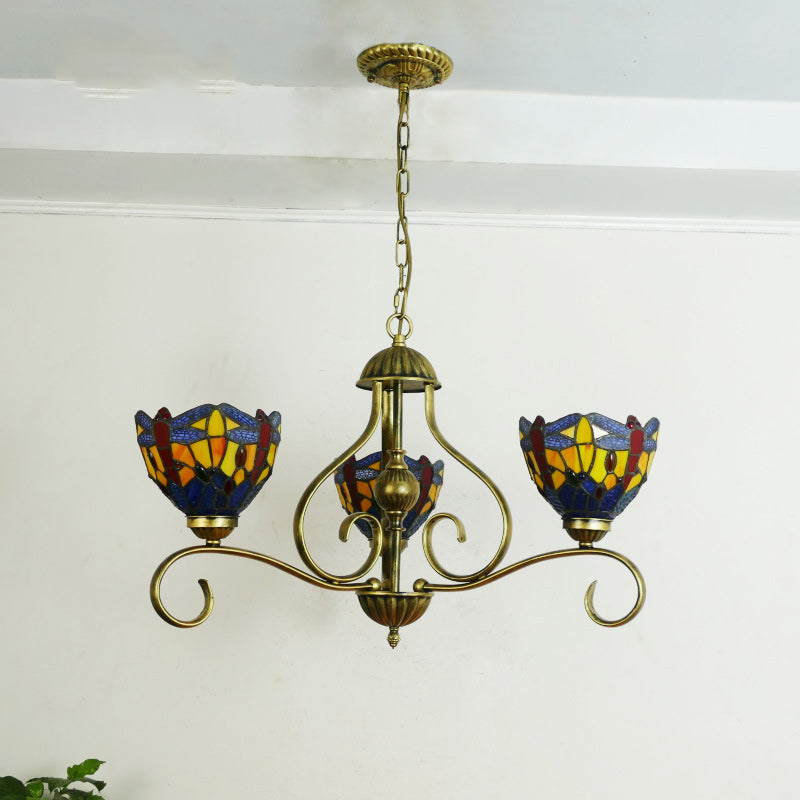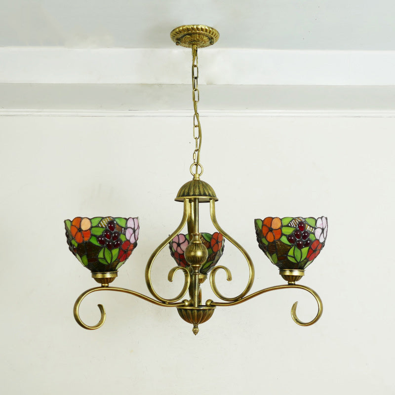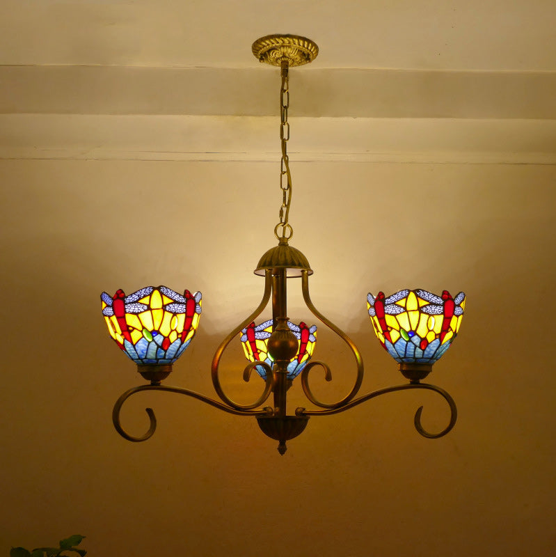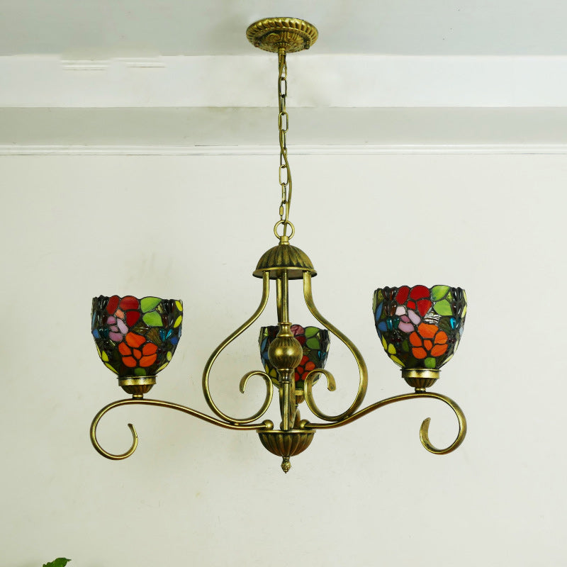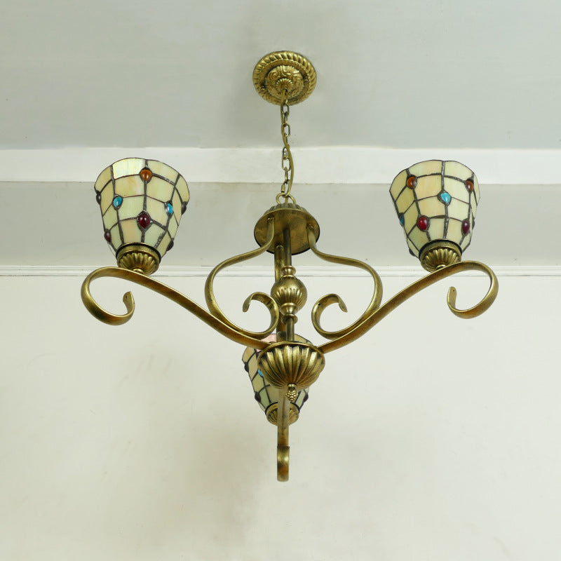 伝統的なティファニーの半円曲線枝ガラス鉄製3灯シャンデリア(リビングルーム用)