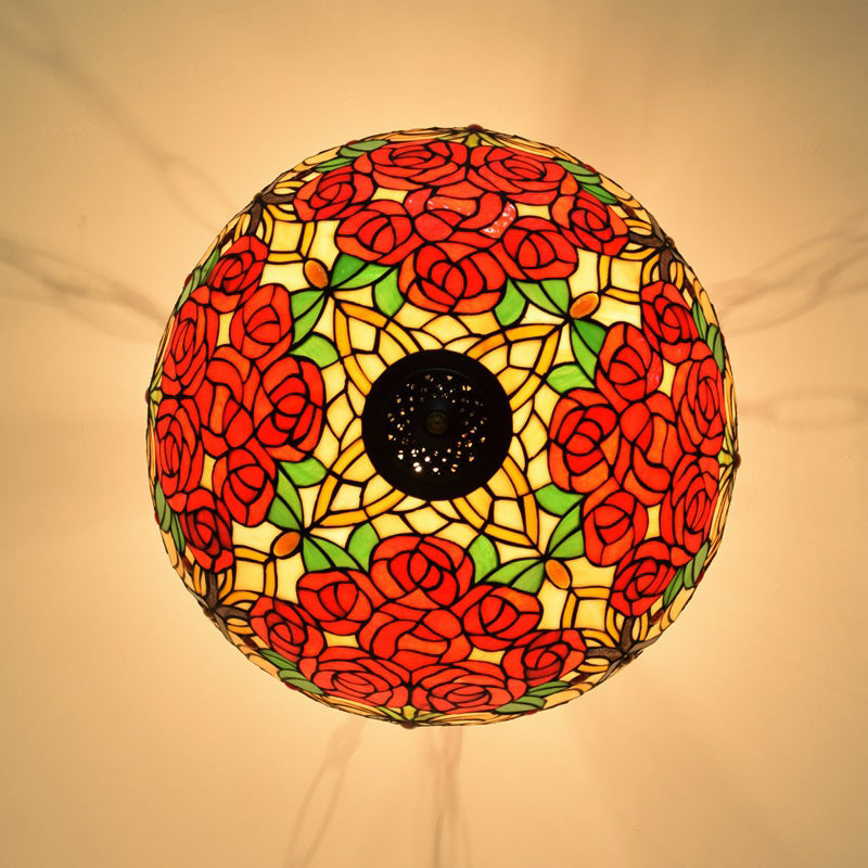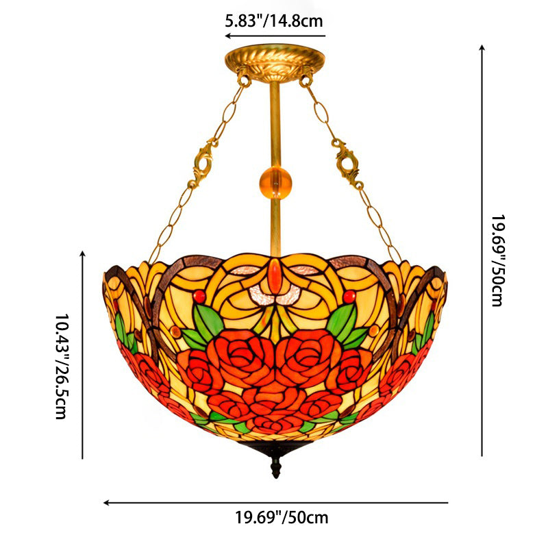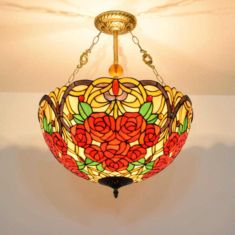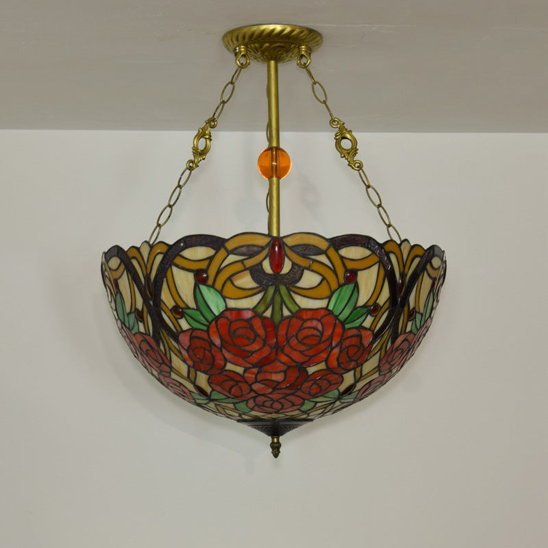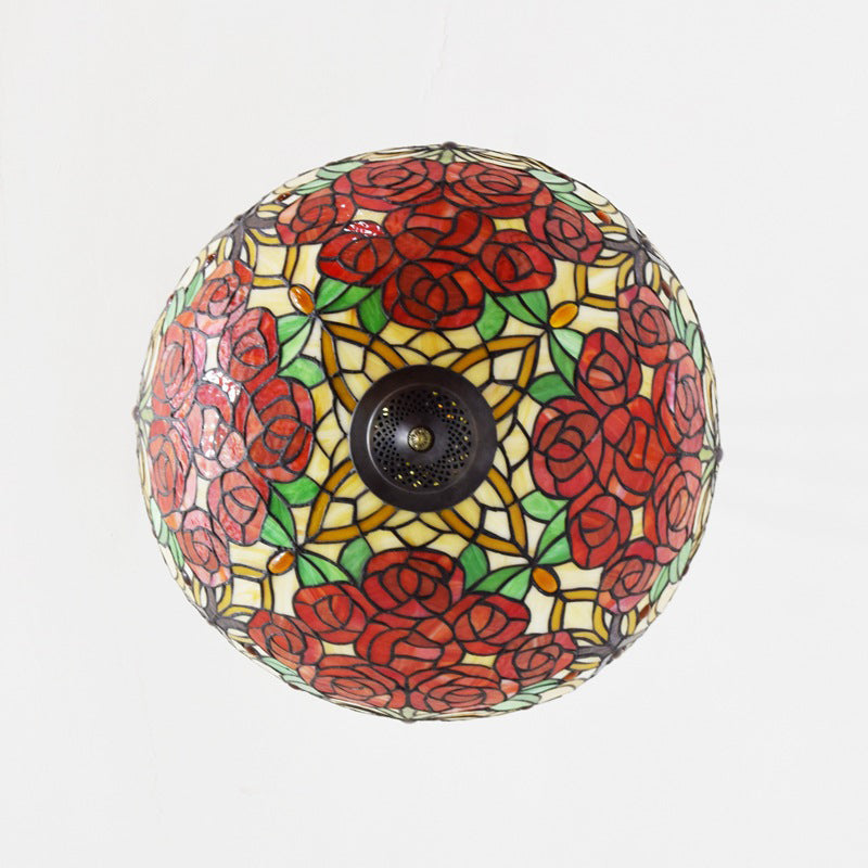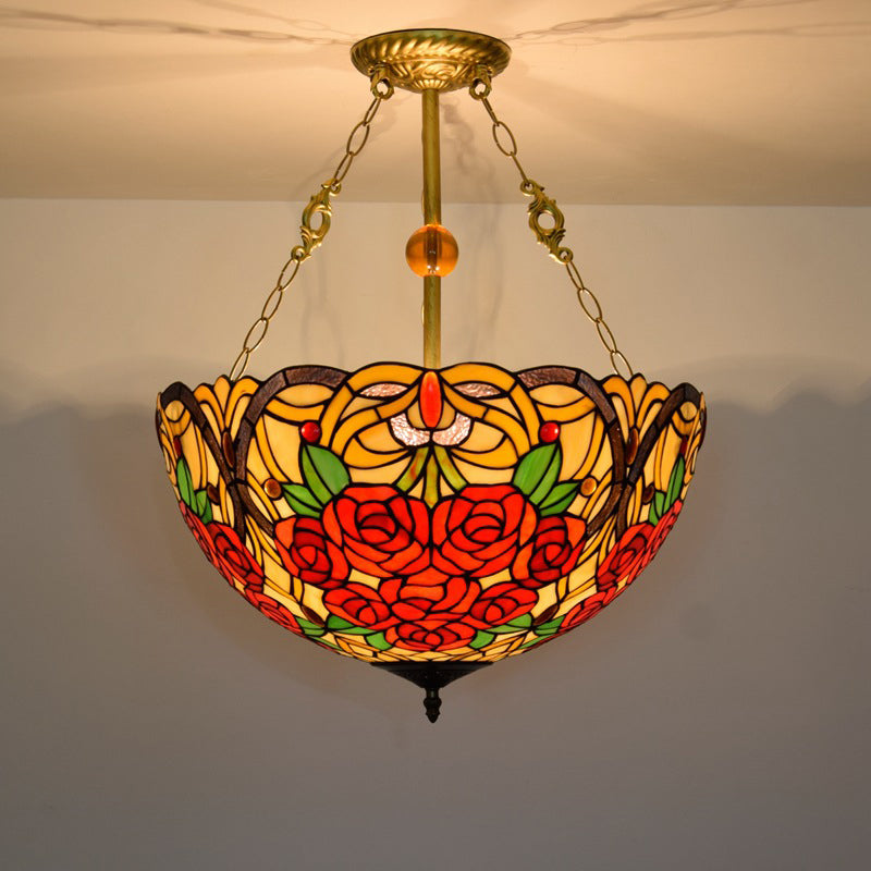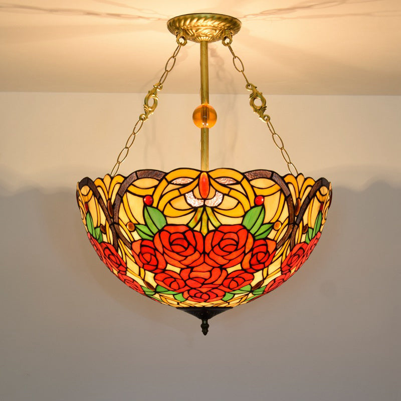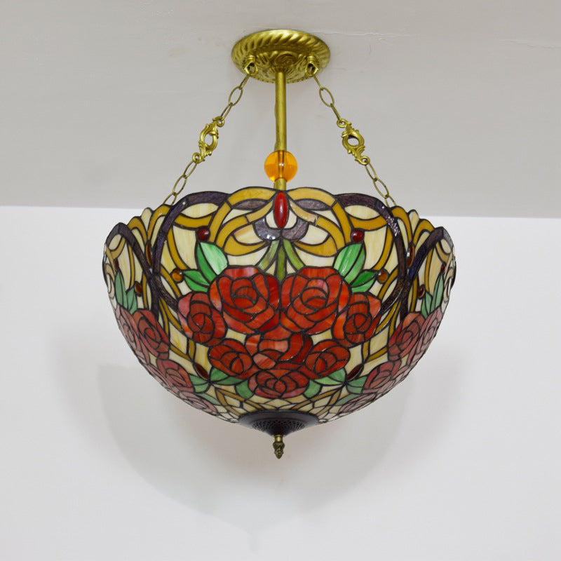 伝統的なティファニーステンドグラスローズフラワーアイアン3ライトシャンデリア(リビングルーム用)