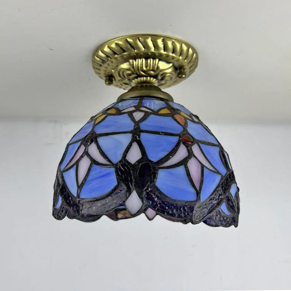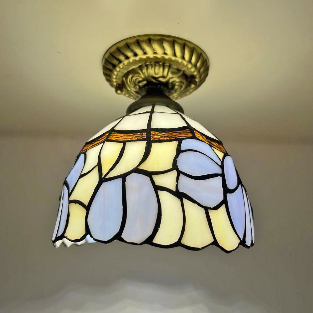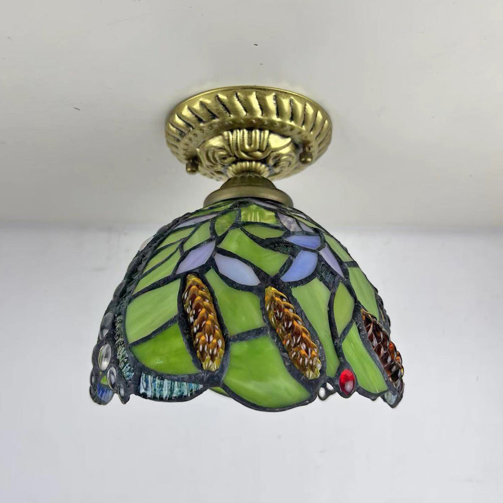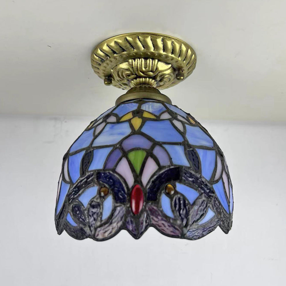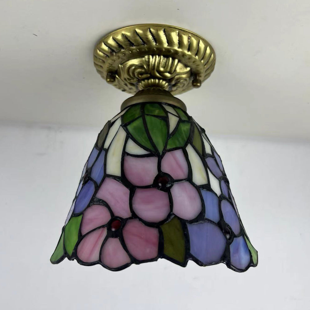 伝統的なティファニーステンドグラスローズフラワーラウンドシェード樹脂1ライトセミフラッシュマウントシーリングライト寝室用