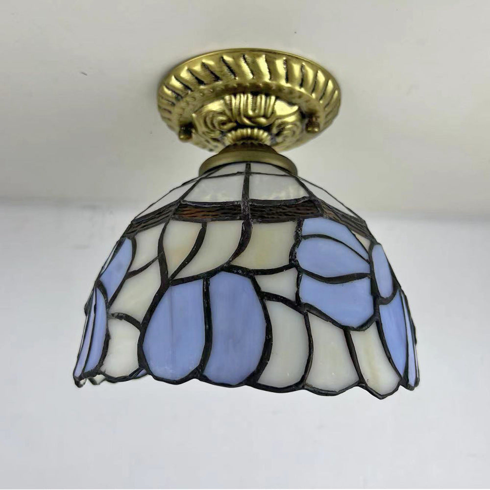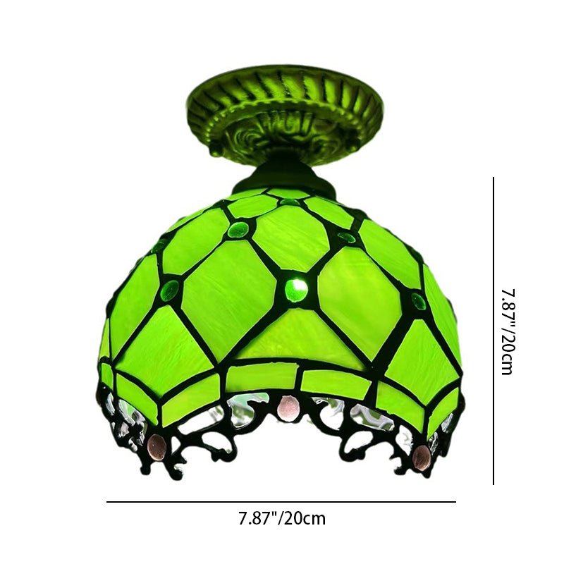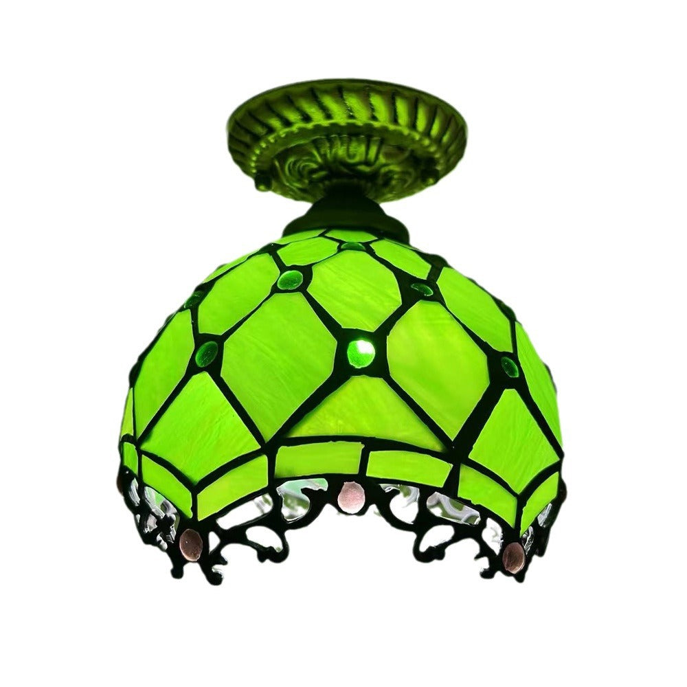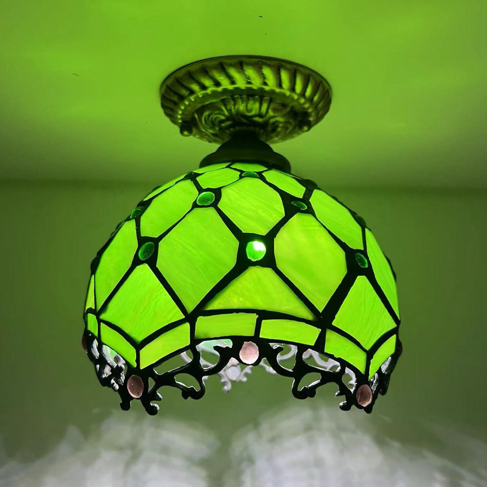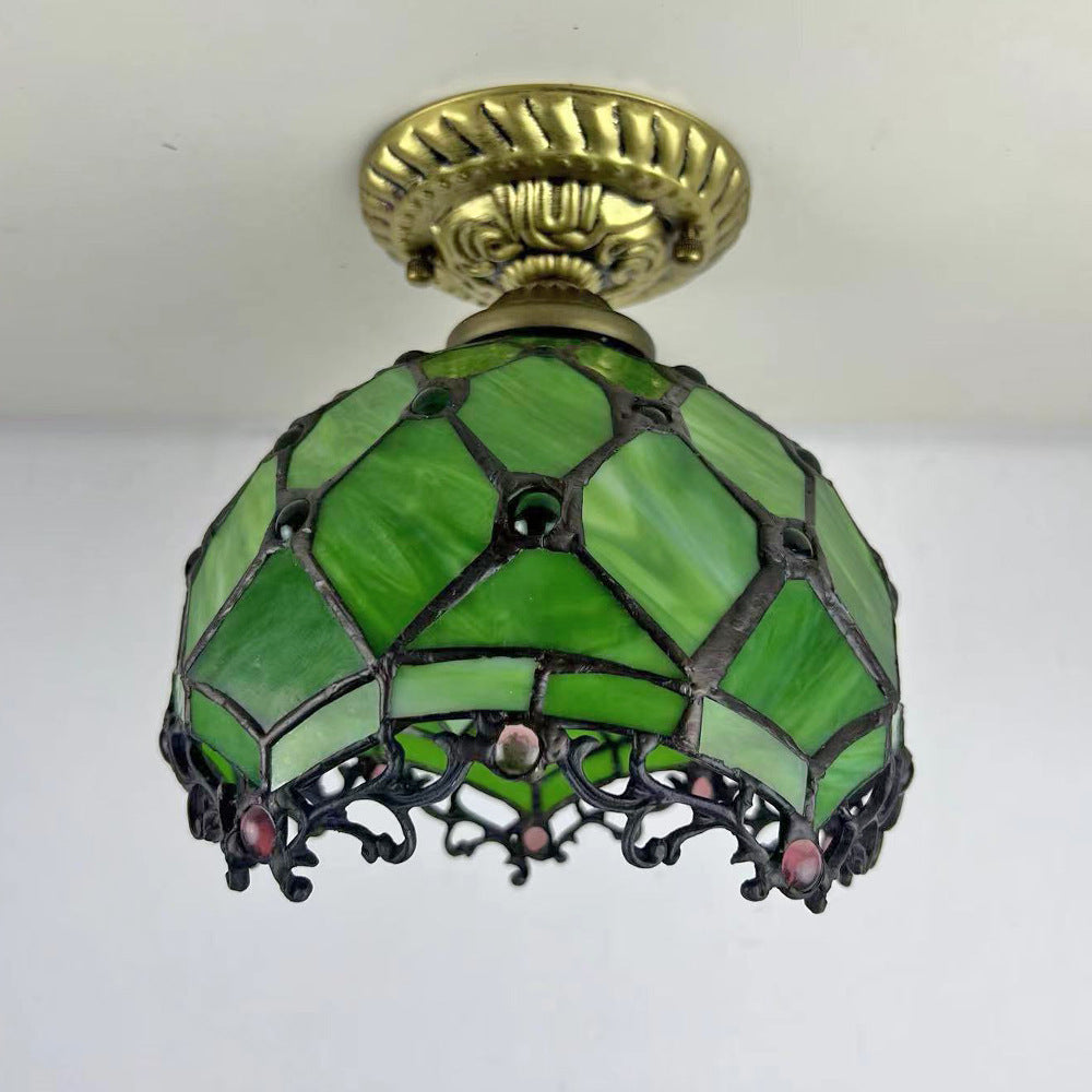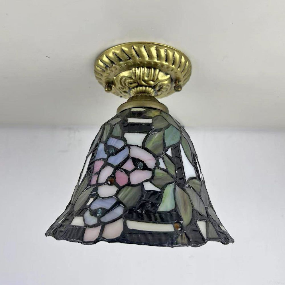 伝統的なティファニーステンドグラスローズフラワーラウンドシェード樹脂1ライトセミフラッシュマウントシーリングライト寝室用