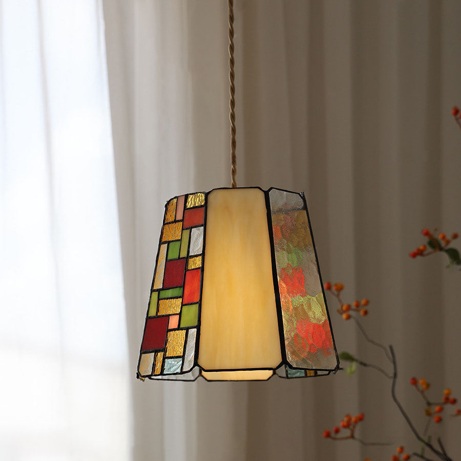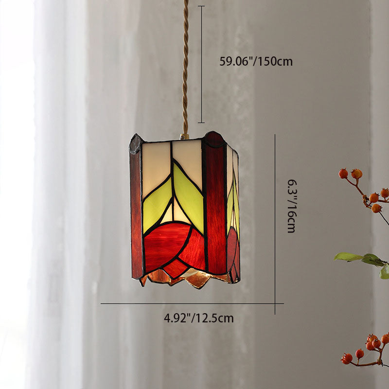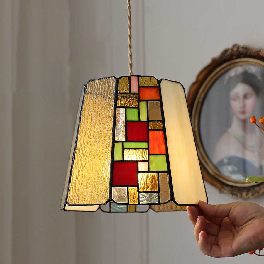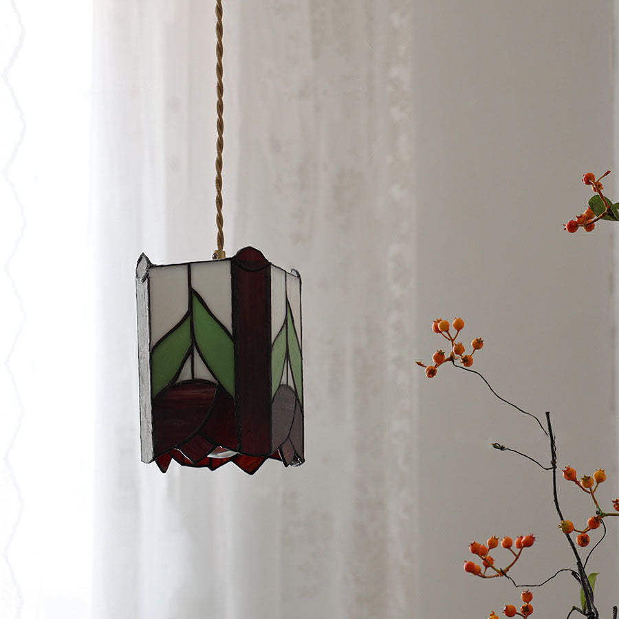 伝統的なティファニー台形長方形ローズ真鍮ステンドグラス1灯ペンダントライトリビングルーム用