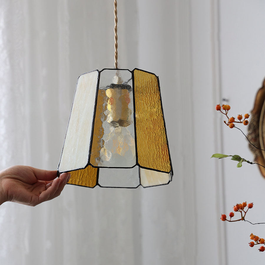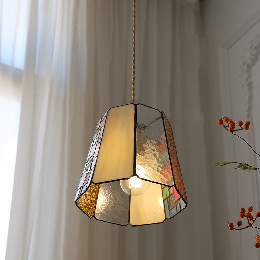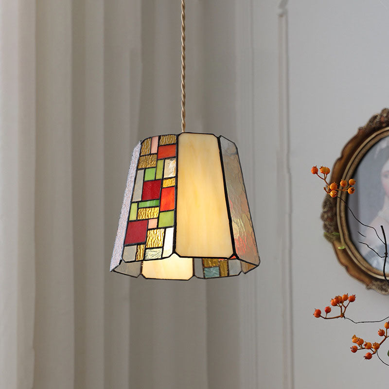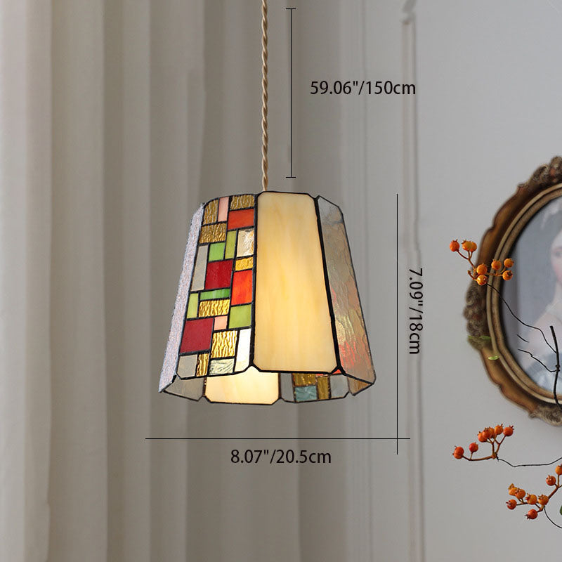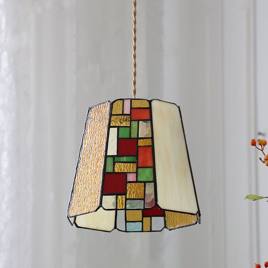 伝統的なティファニー台形長方形ローズ真鍮ステンドグラス1灯ペンダントライトリビングルーム用