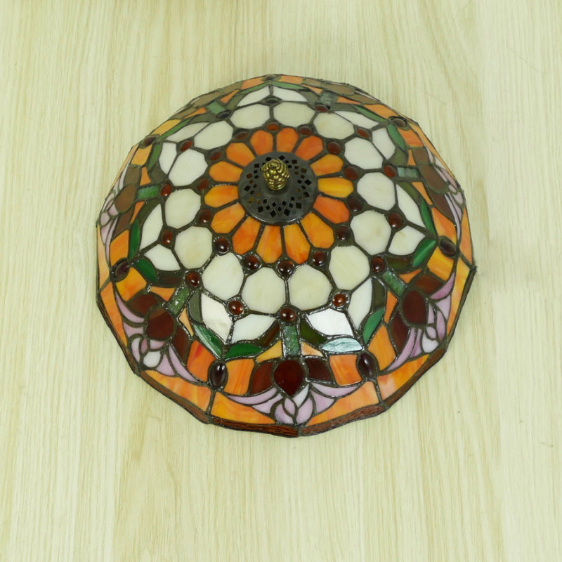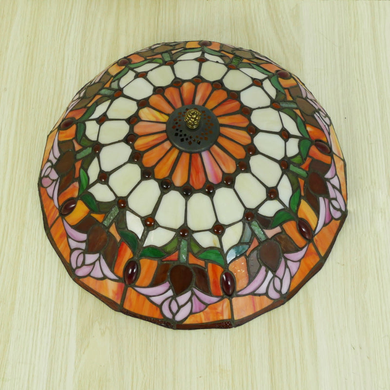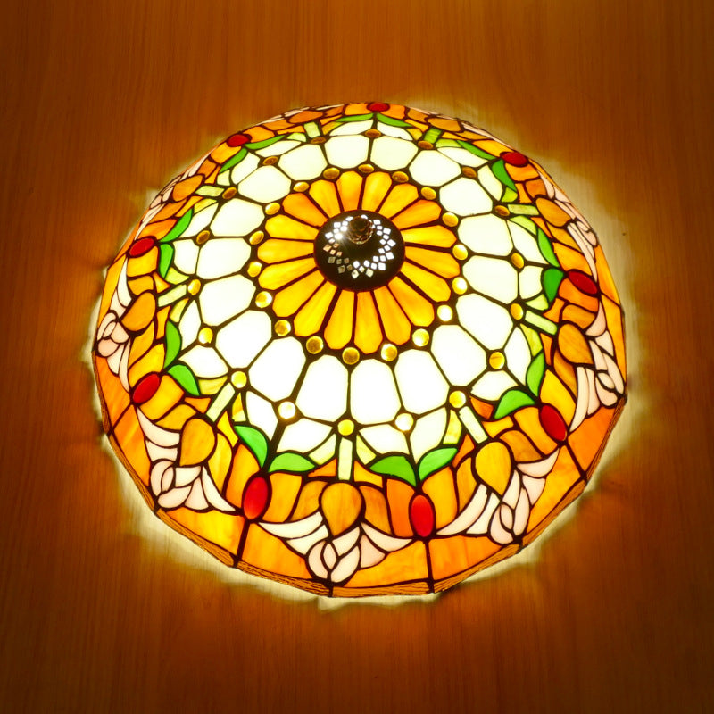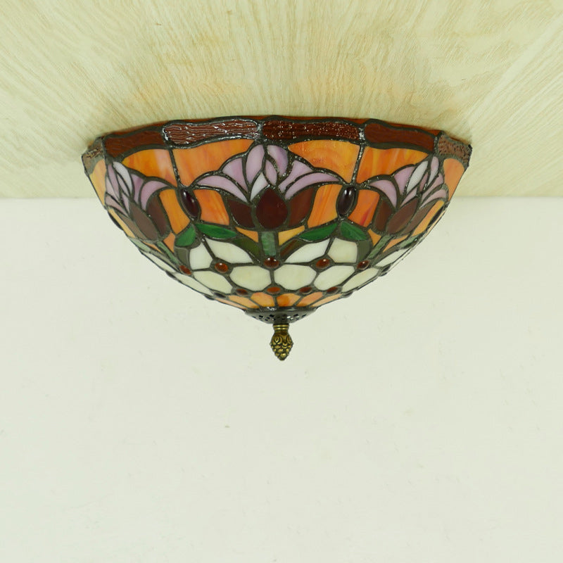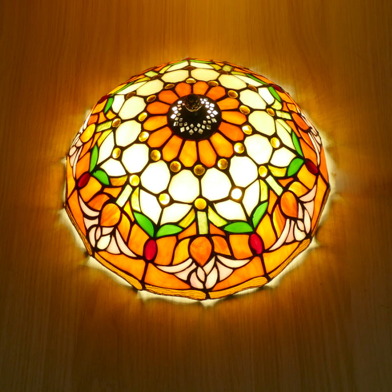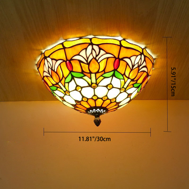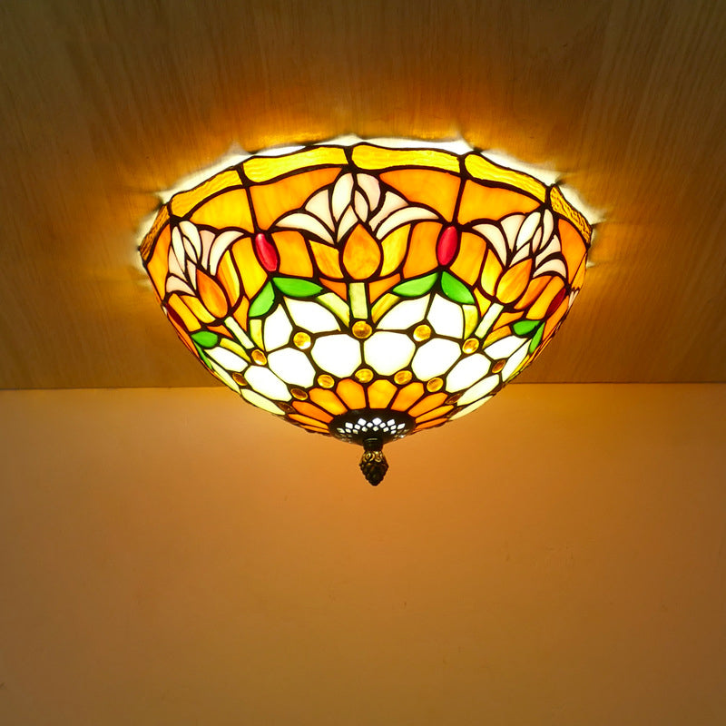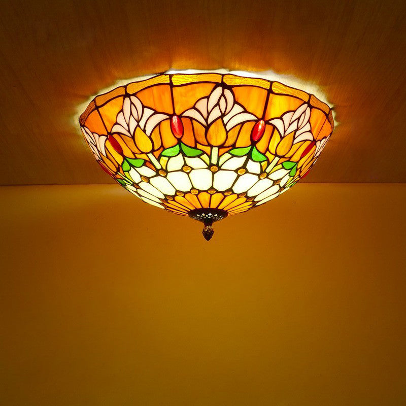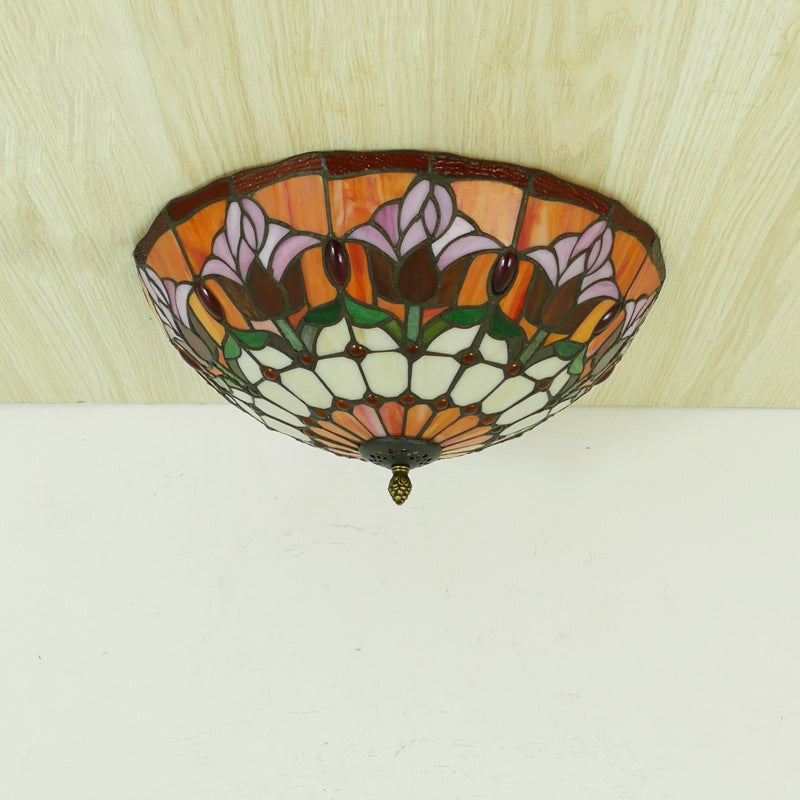 伝統的なティファニーチューリップステンドグラスアイアンドーム2/3ライトフラッシュマウントシーリングライトリビングルーム用
