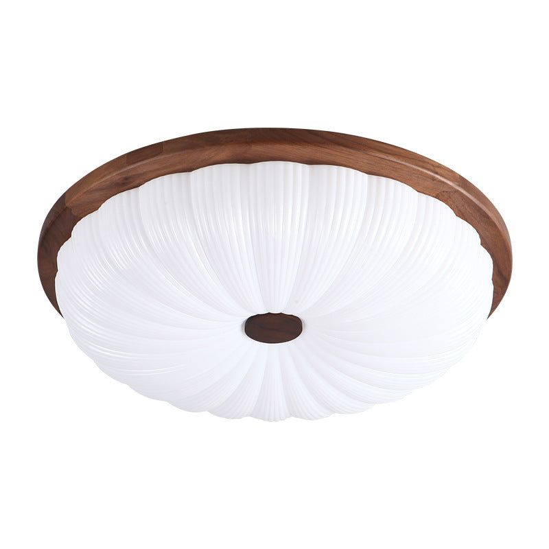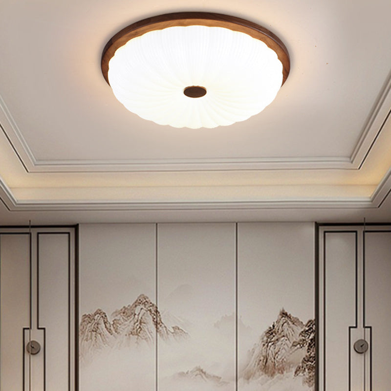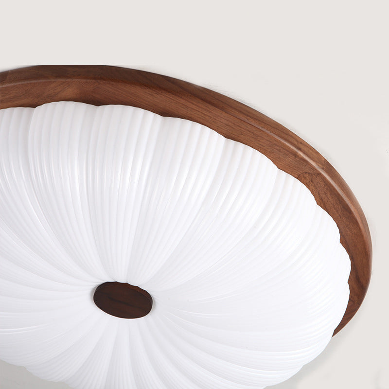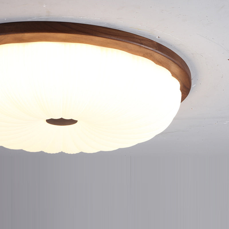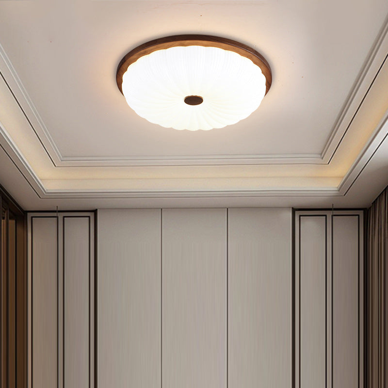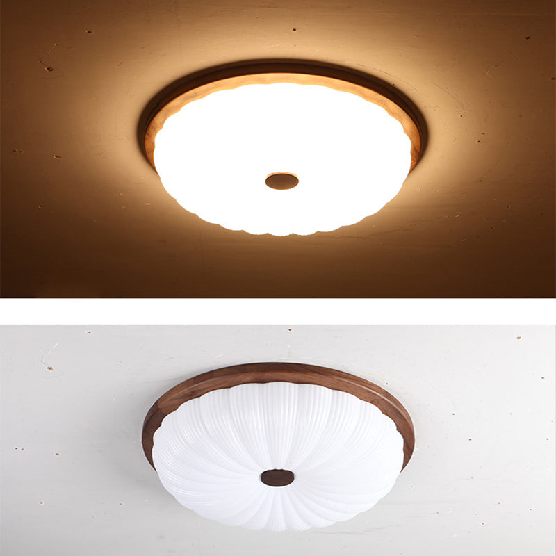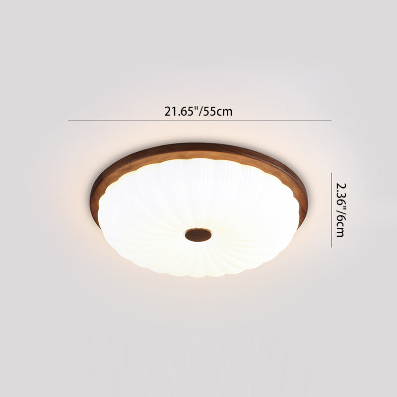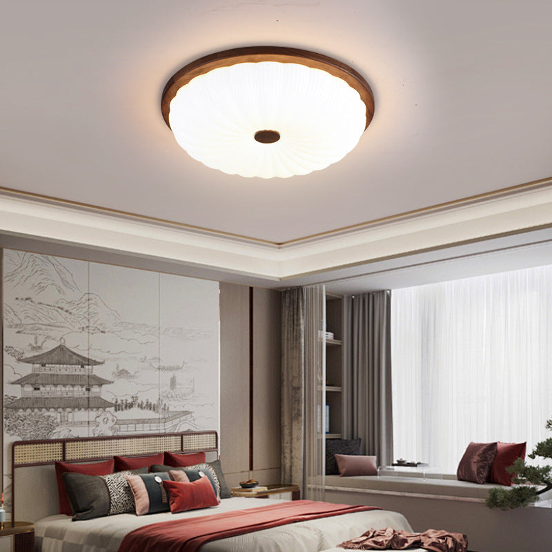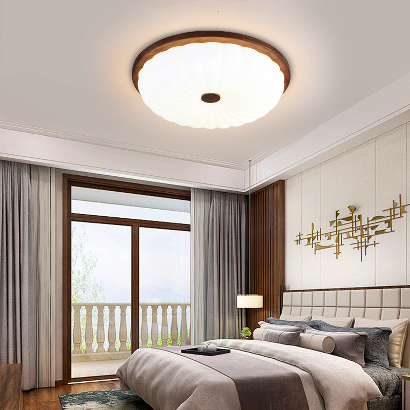 伝統的なヴィンテージアクリルウォールナットストライプラウンドLEDフラッシュマウントシーリングライト寝室とリビングルーム用