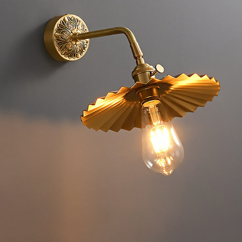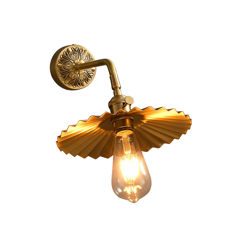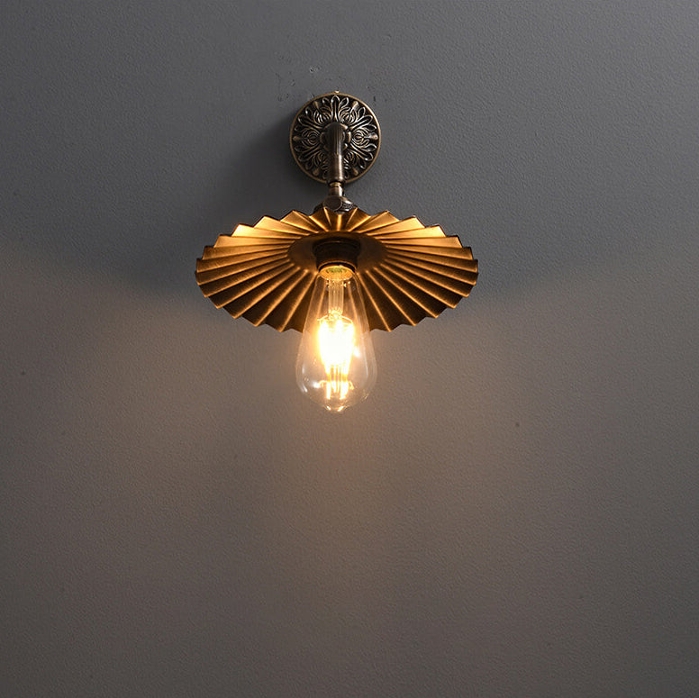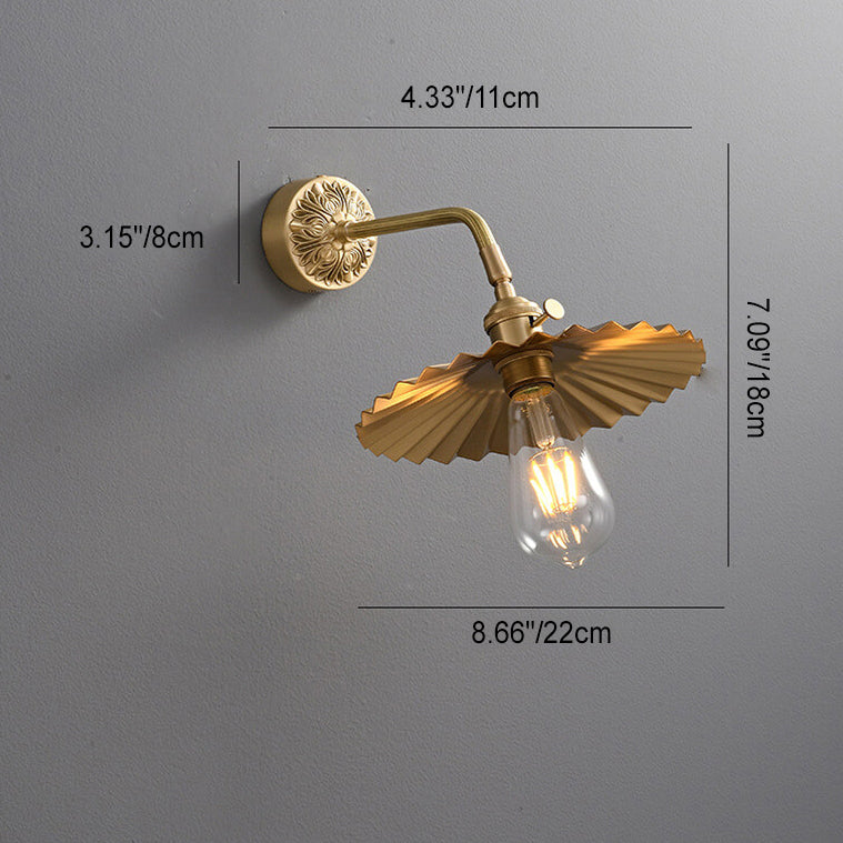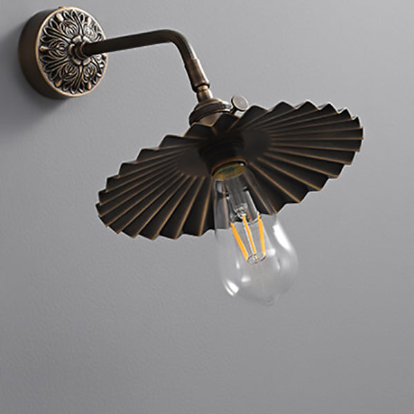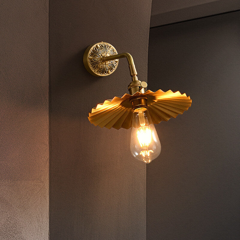 伝統的なヴィンテージの全銅製ラウンドプリーツ1ライト壁取り付け用燭台ランプリビングルーム用