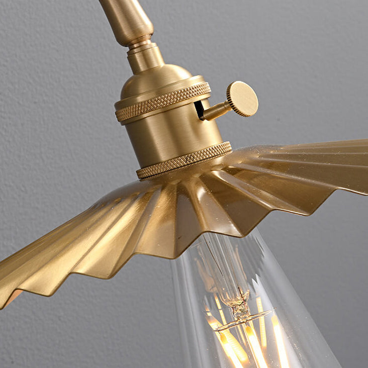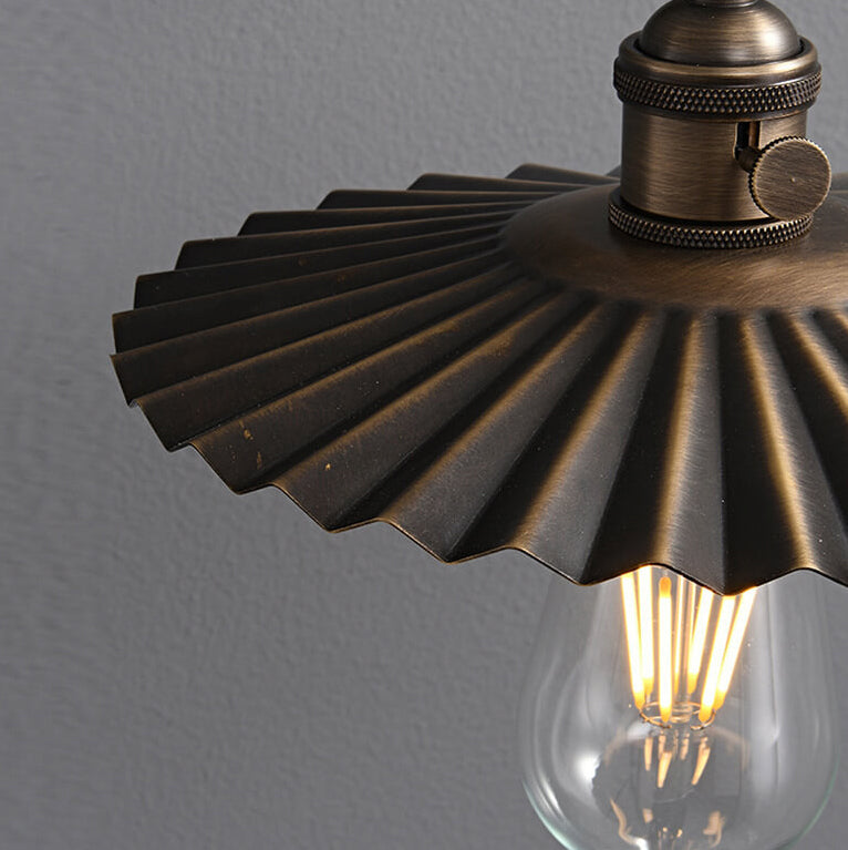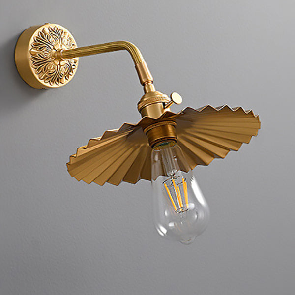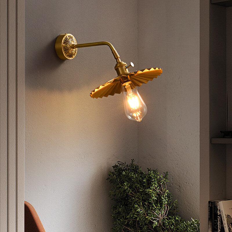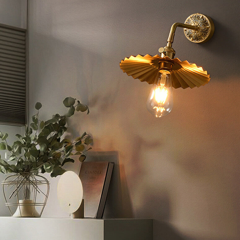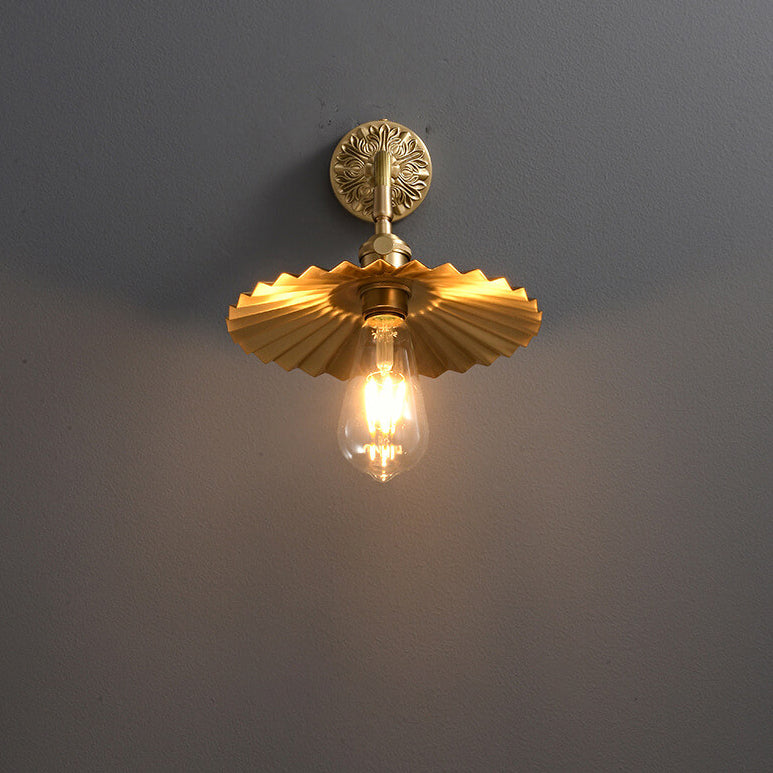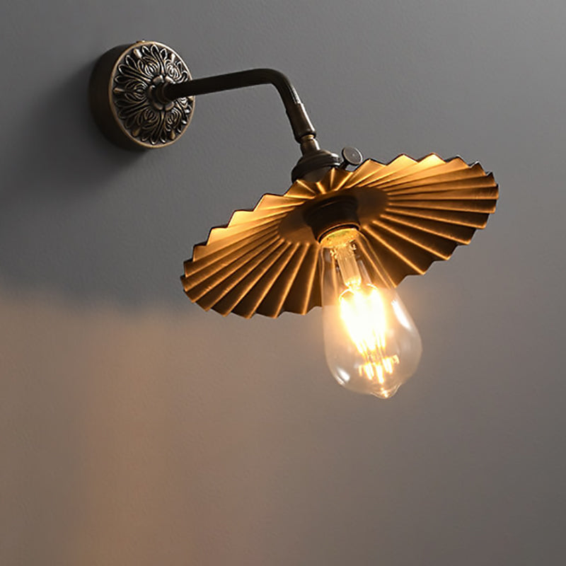 伝統的なヴィンテージの全銅製ラウンドプリーツ1ライト壁取り付け用燭台ランプリビングルーム用