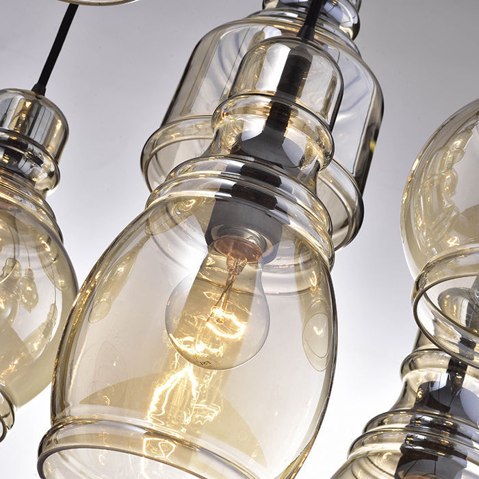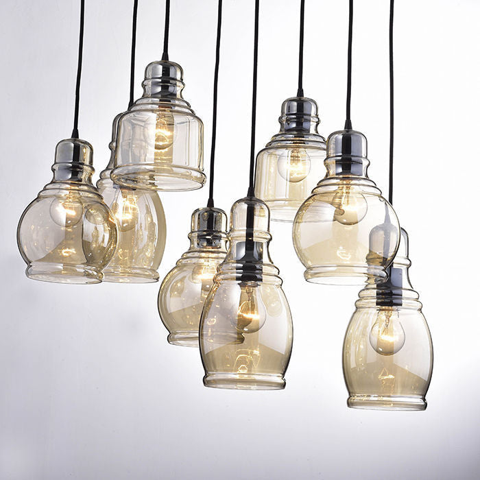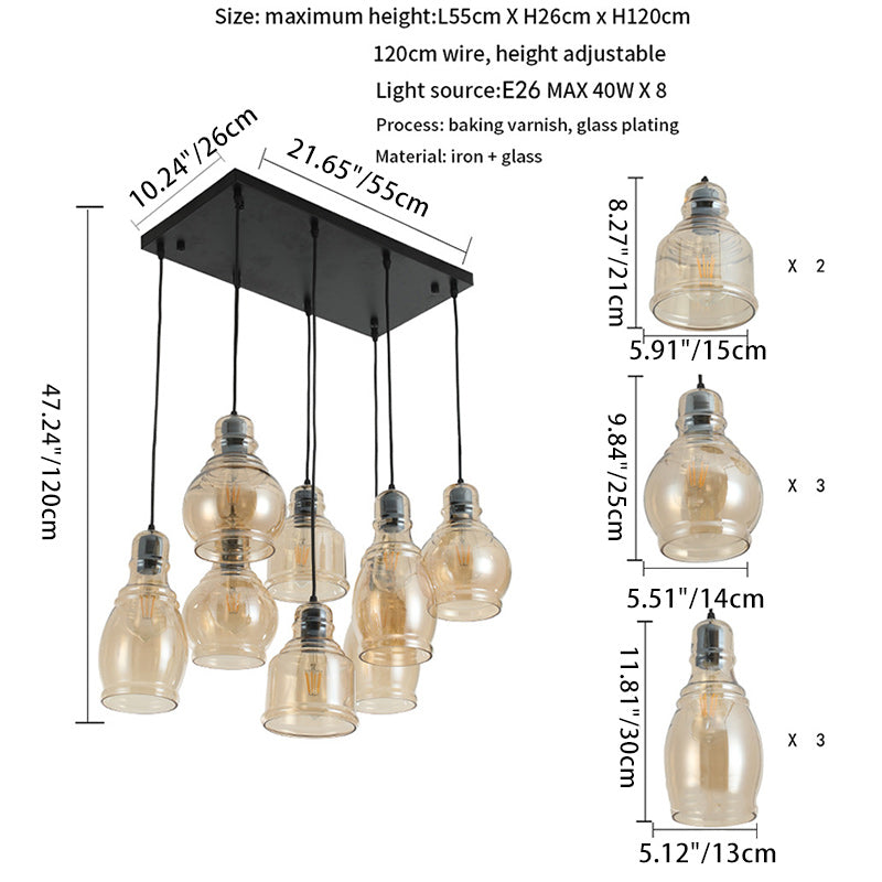 伝統的なヴィンテージボウリングボール型アイアンガラス8灯シャンデリア(ダイニングルーム用)