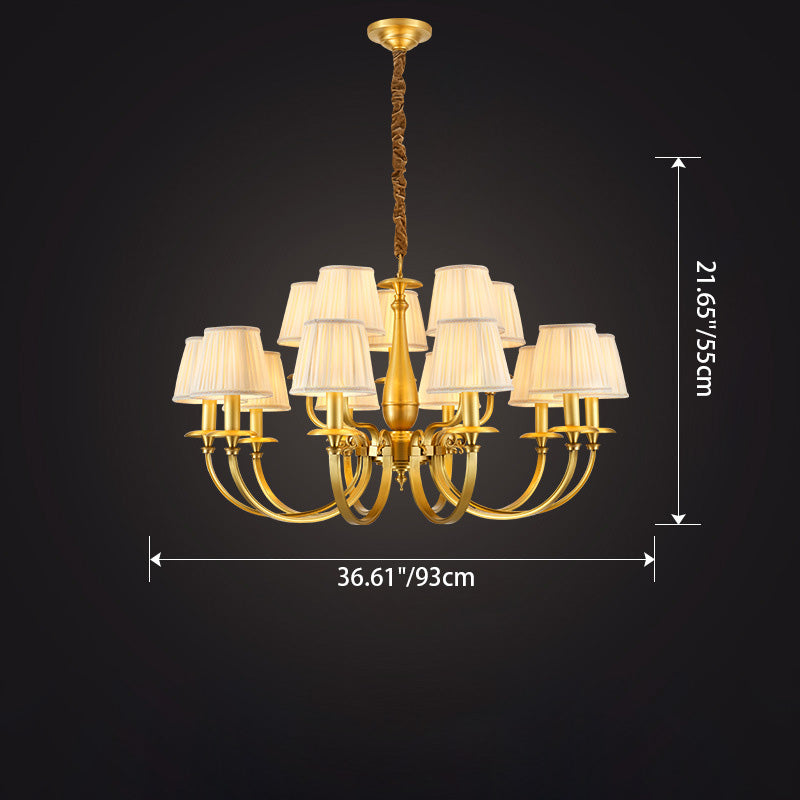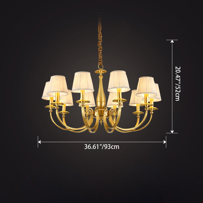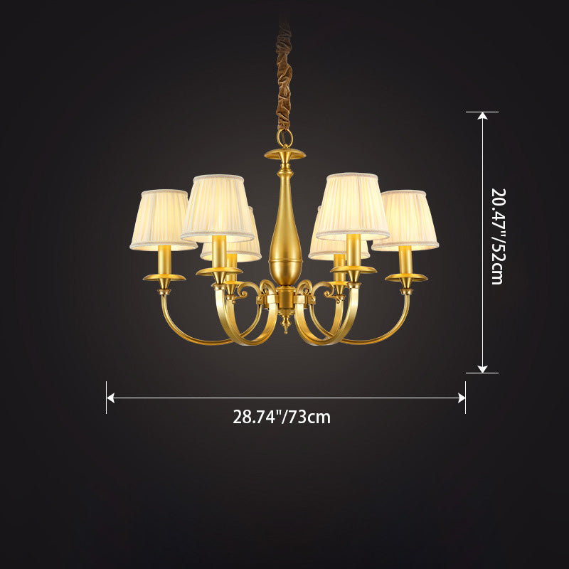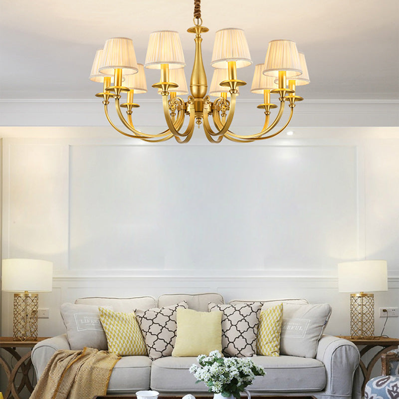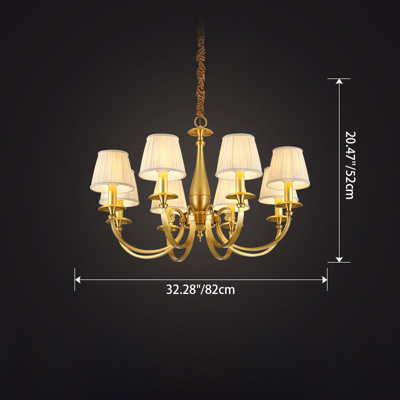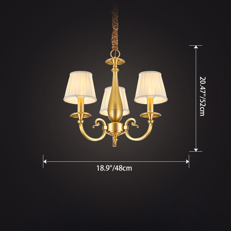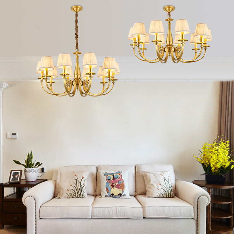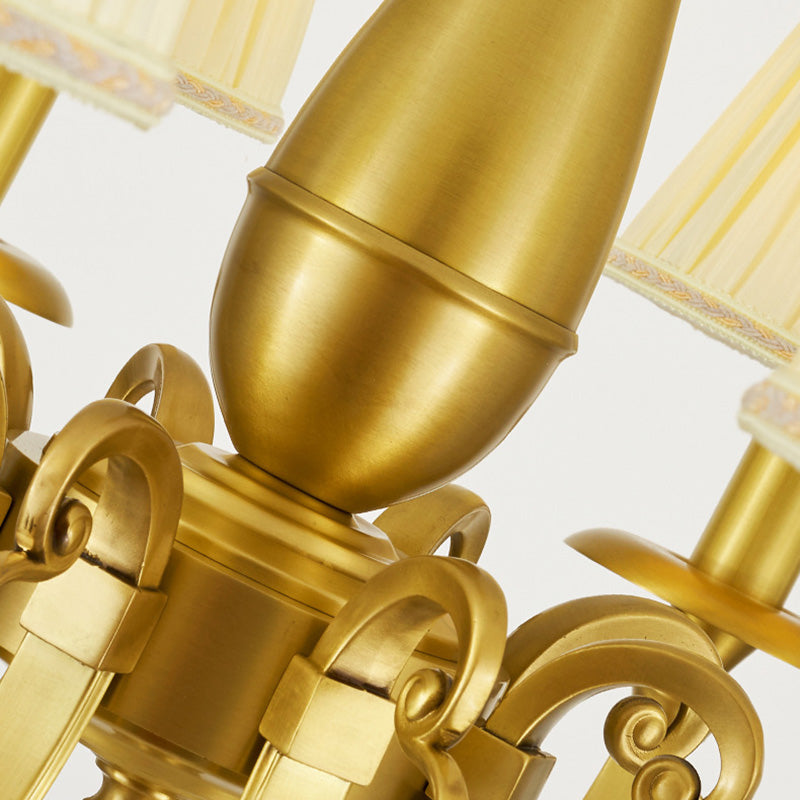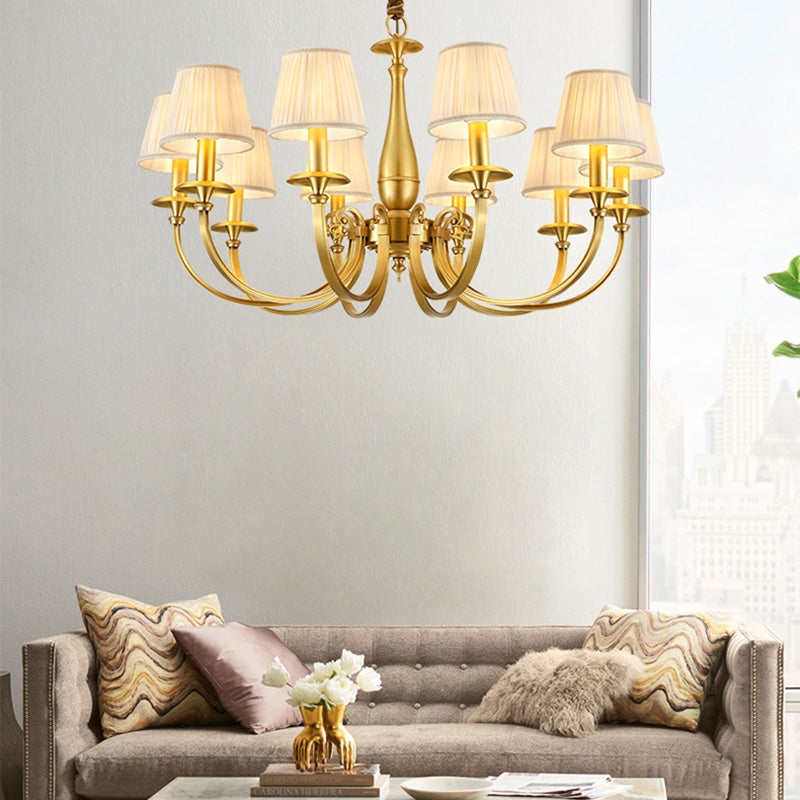 伝統的なヴィンテージブランチカーブシリンダーファブリックブラス3/6/8/10/15ライトシャンデリアリビングルーム用
