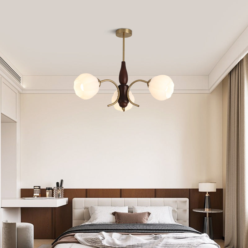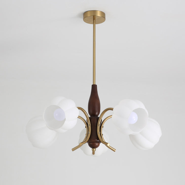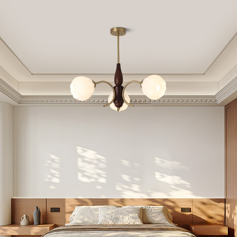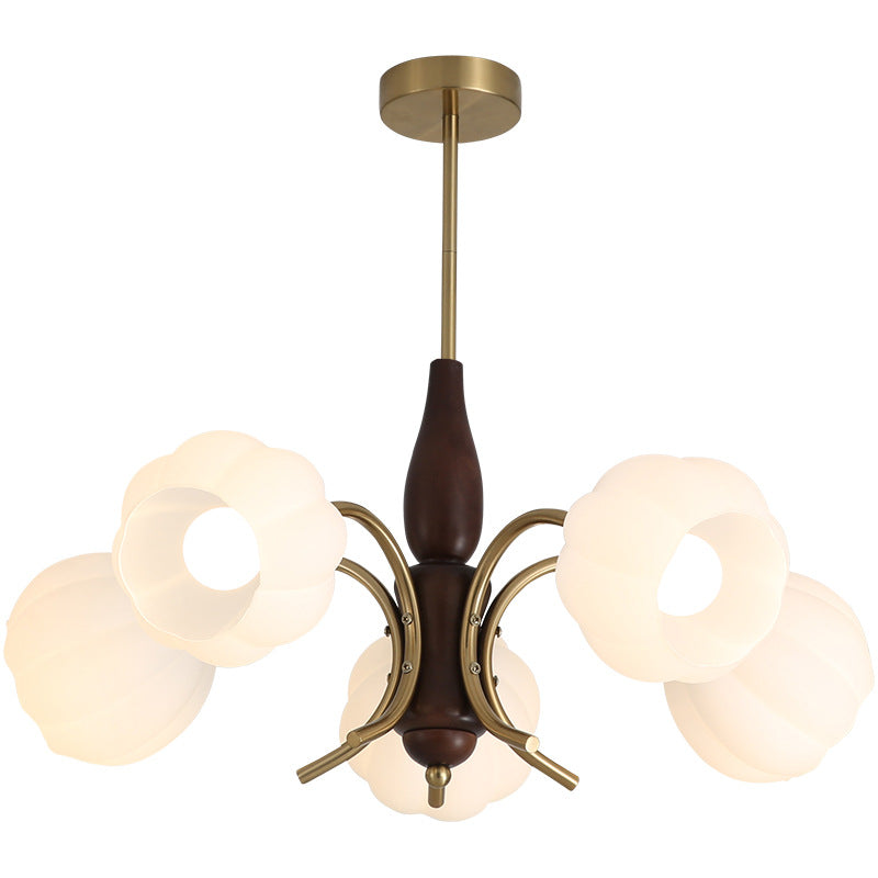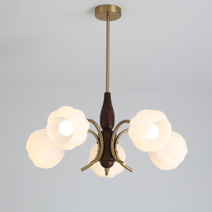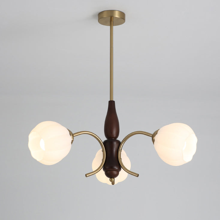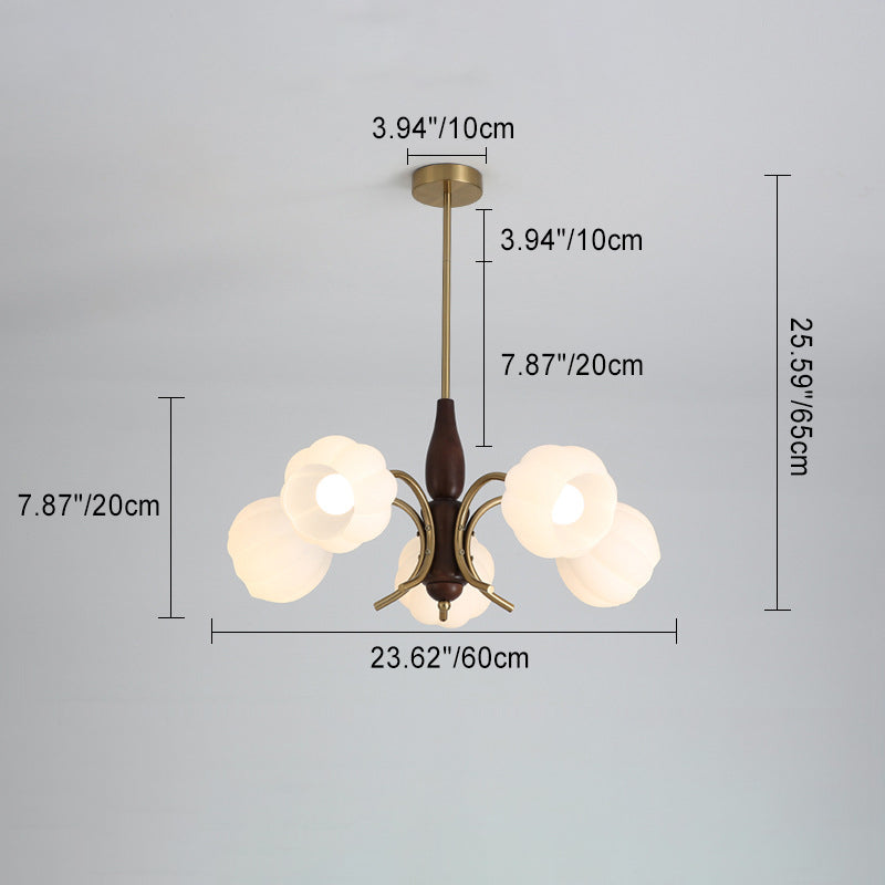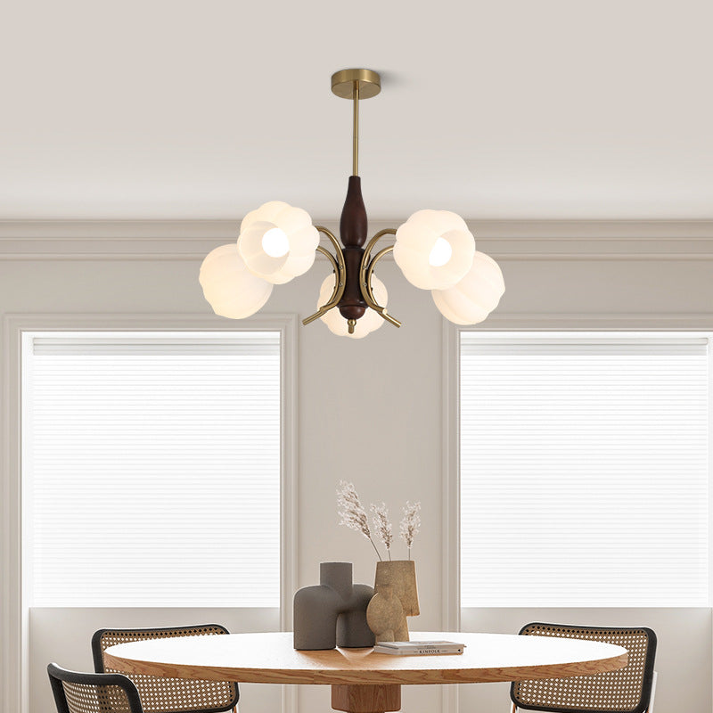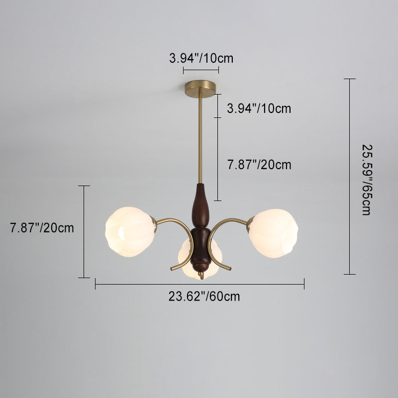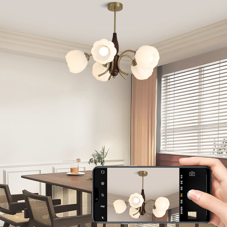 伝統的なヴィンテージの枝花ガラス木製鉄3/5ライトシャンデリアリビングルーム用