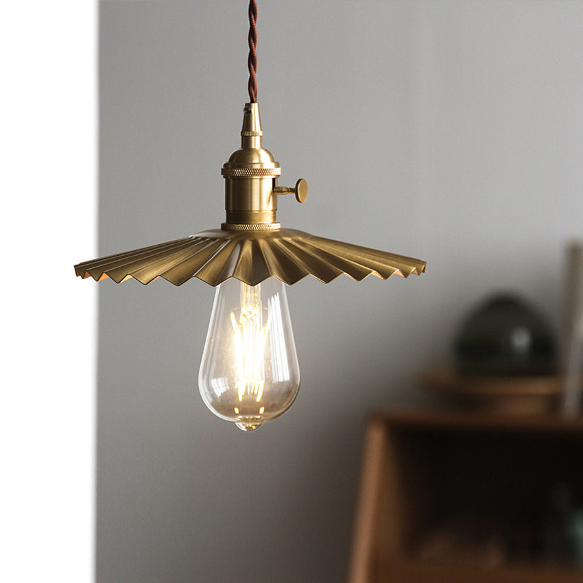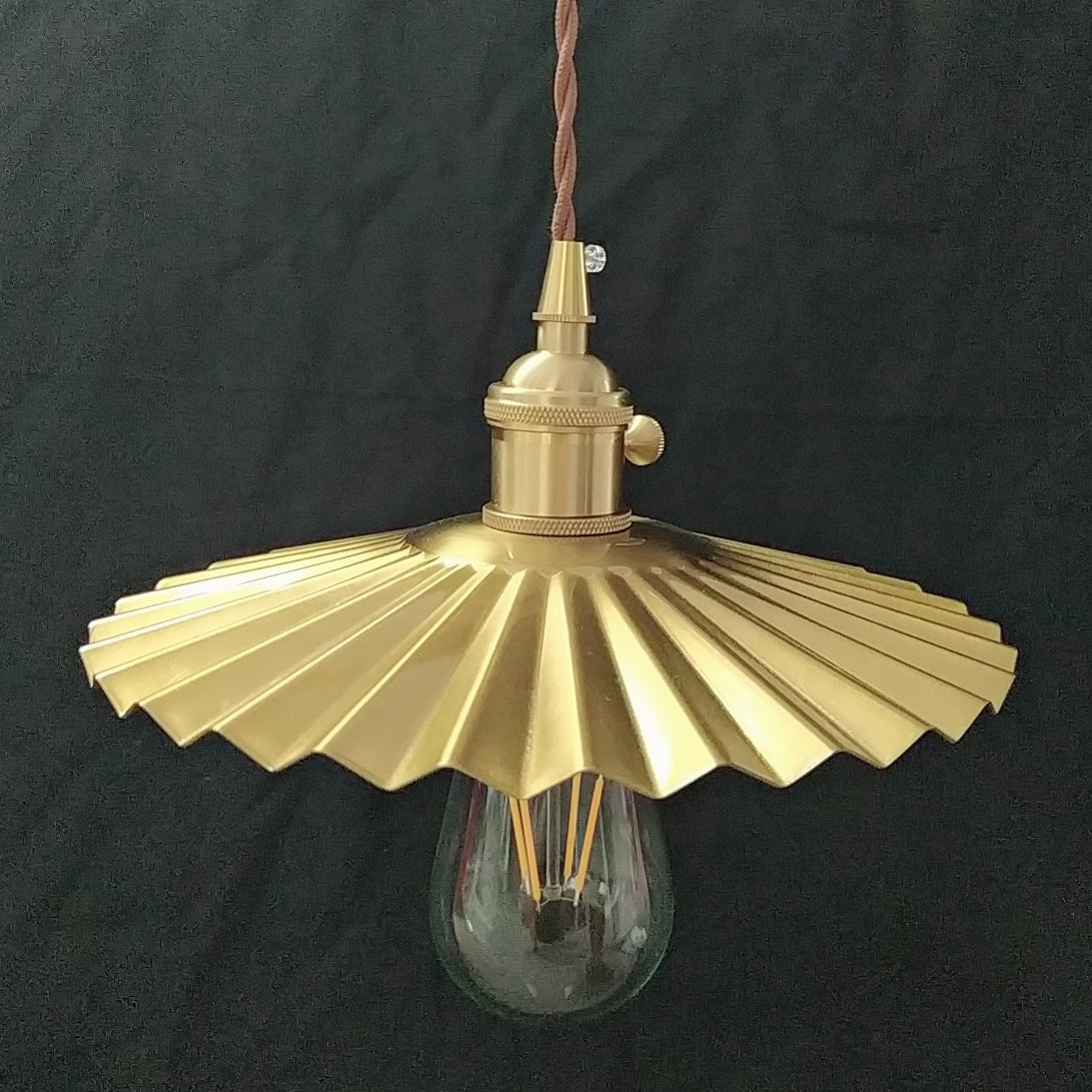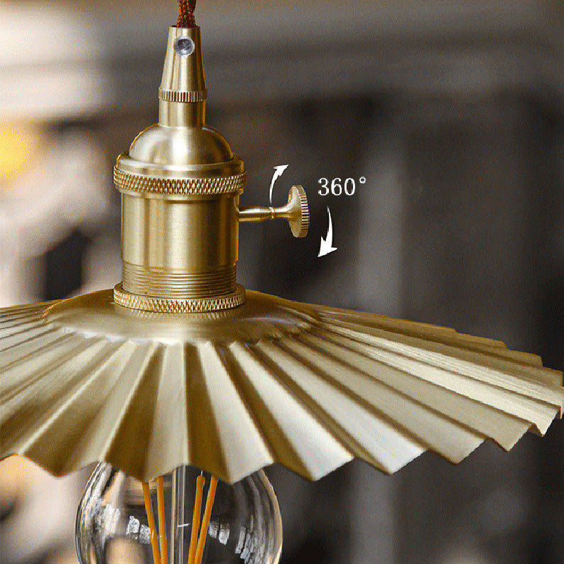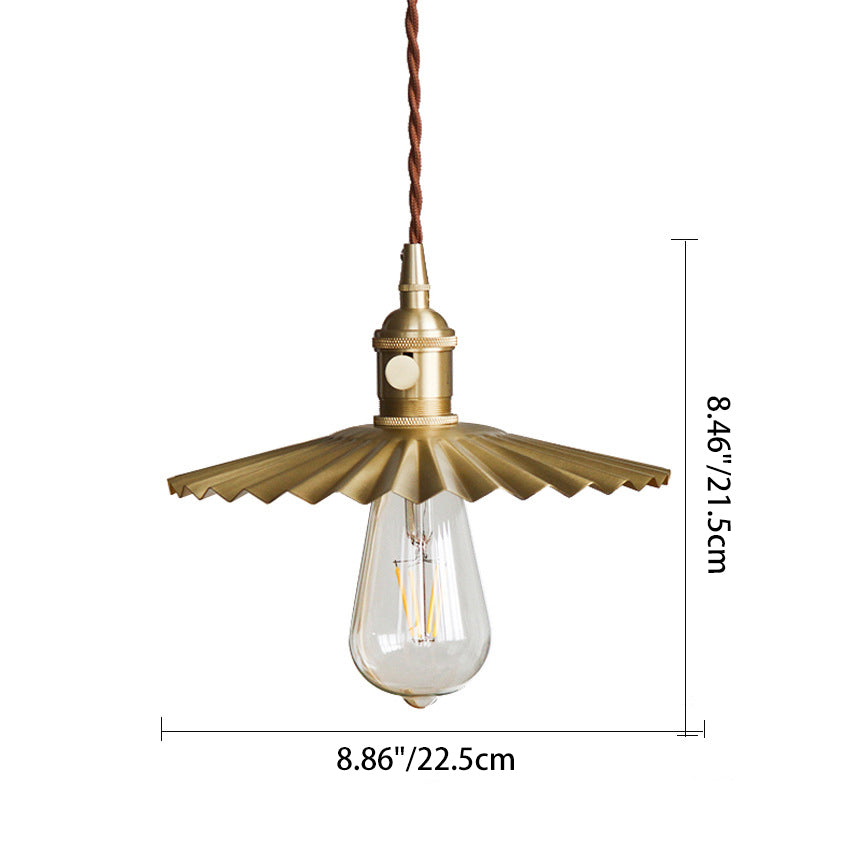 寝室やリビングルームに最適な、伝統的なヴィンテージ真鍮プリーツラウンド1灯ペンダントライト