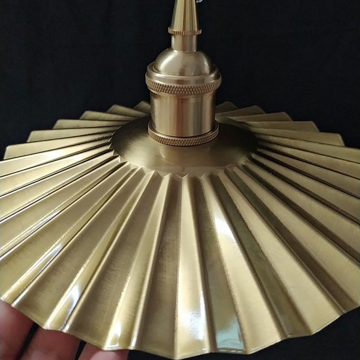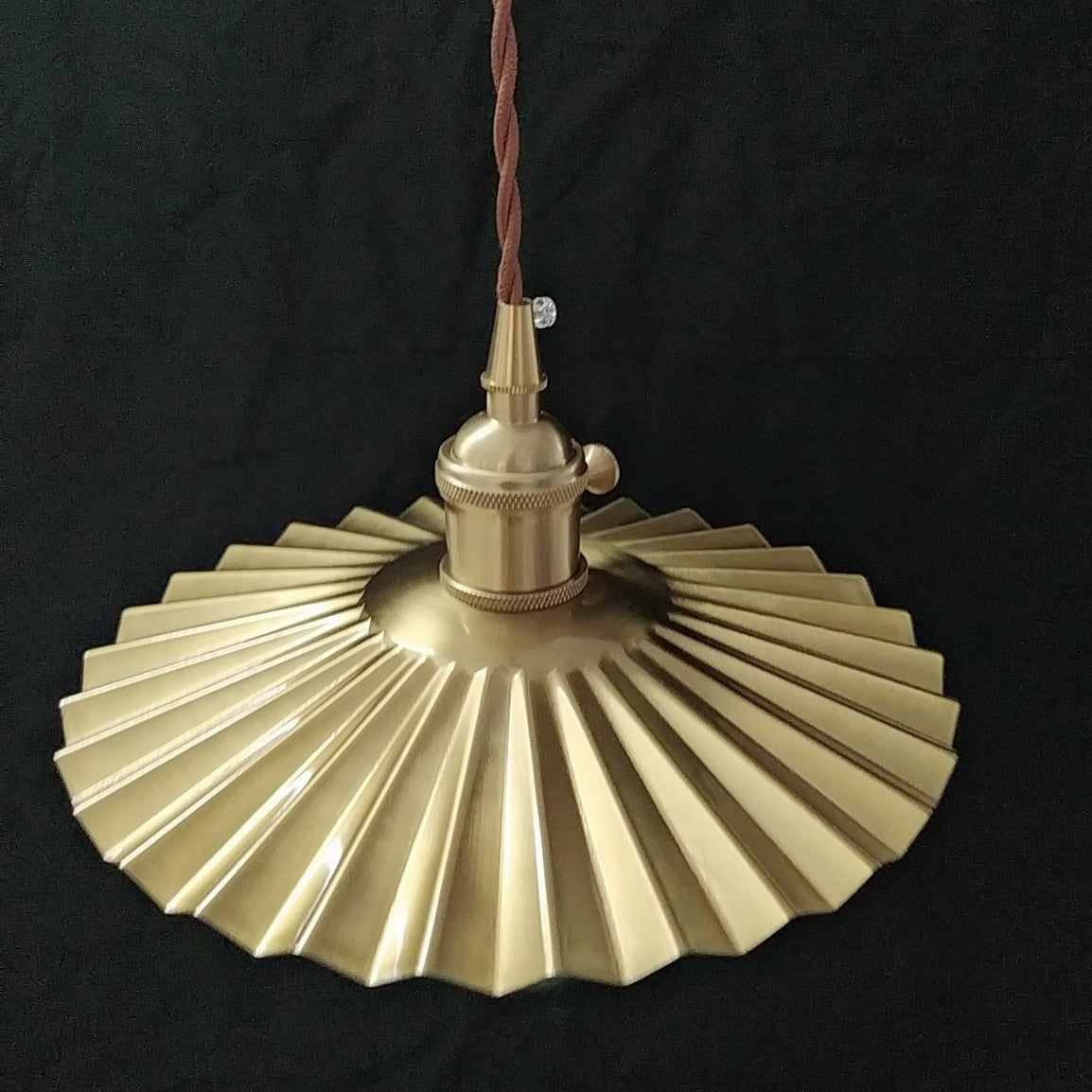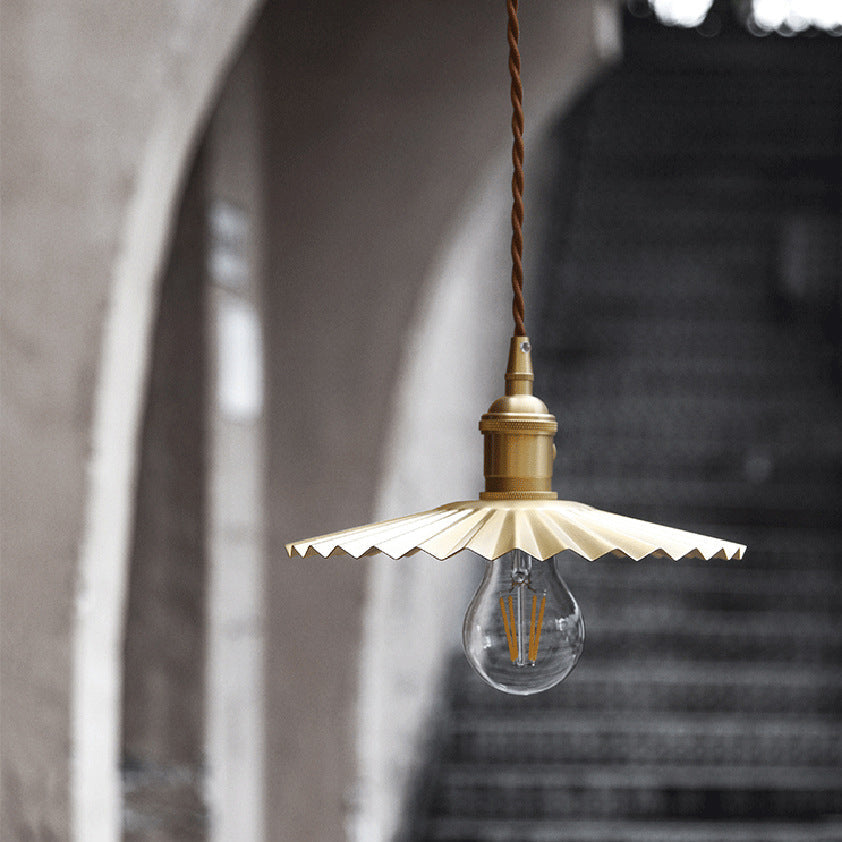 寝室やリビングルームに最適な、伝統的なヴィンテージ真鍮プリーツラウンド1灯ペンダントライト
