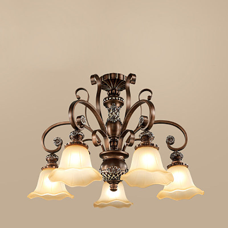 伝統的なヴィンテージブロンズ仕上げフレームガラスシェード1/3/5ライトシャンデリアリビングルーム用