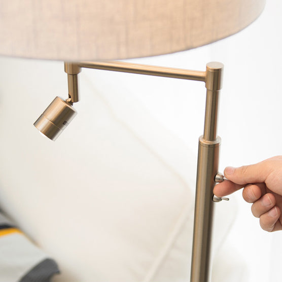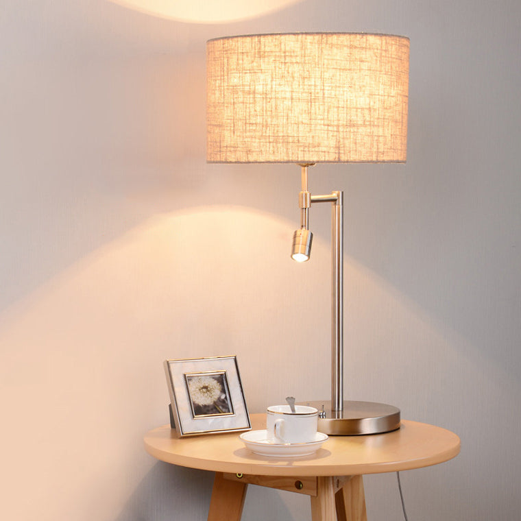 Traditional Vintage Cylinder Fabric Iron 2-Light Rotatable Spotlight Table Lamp For Home Office
