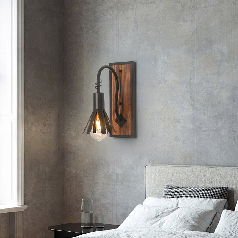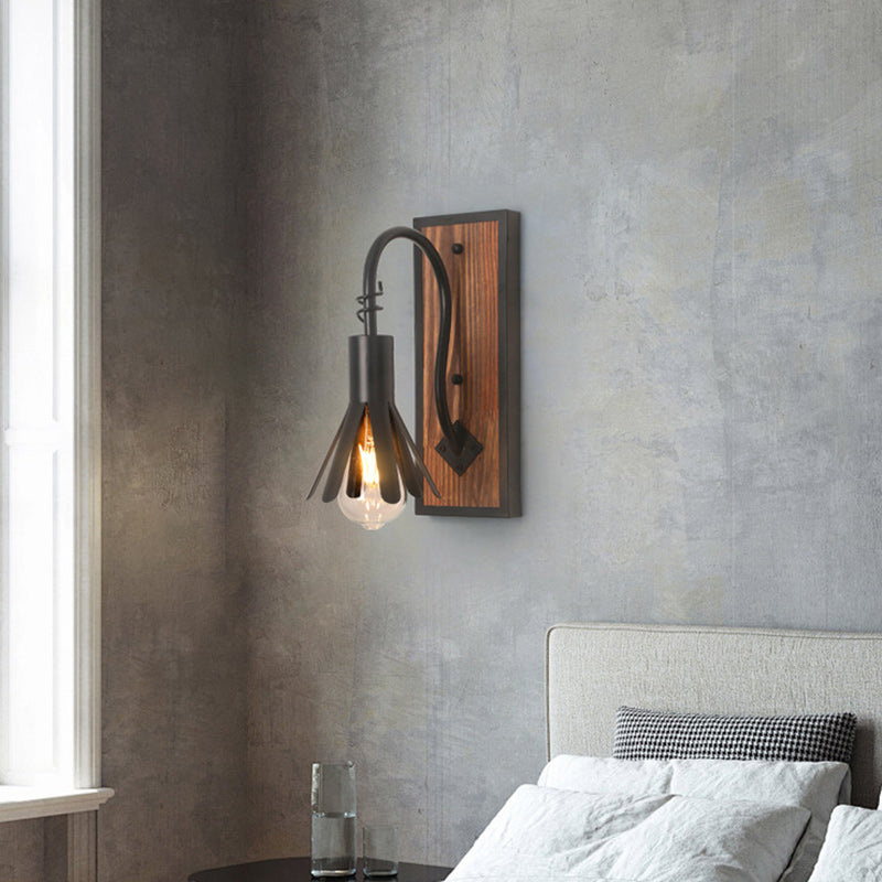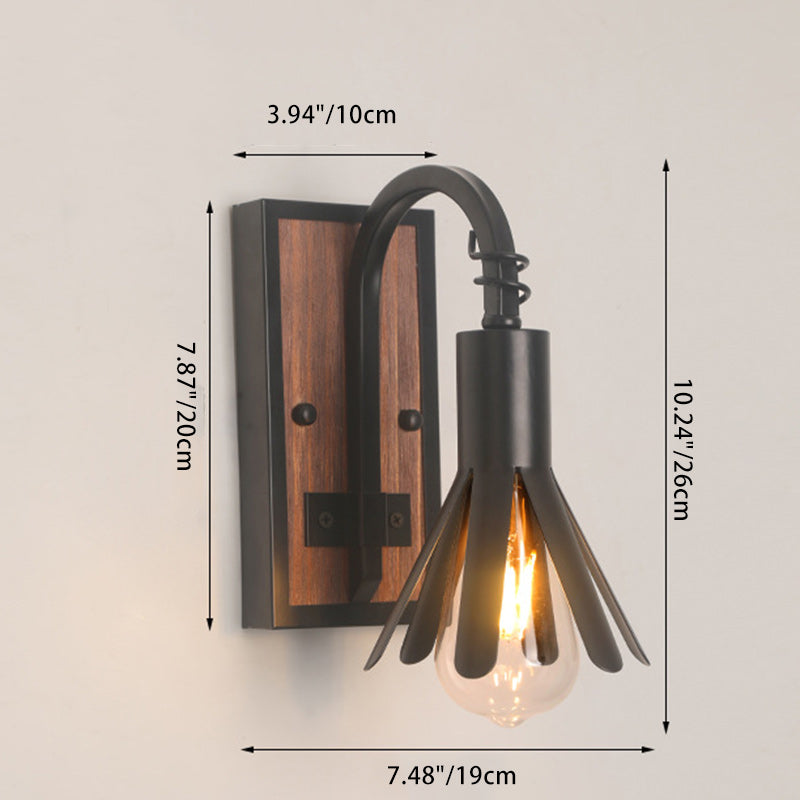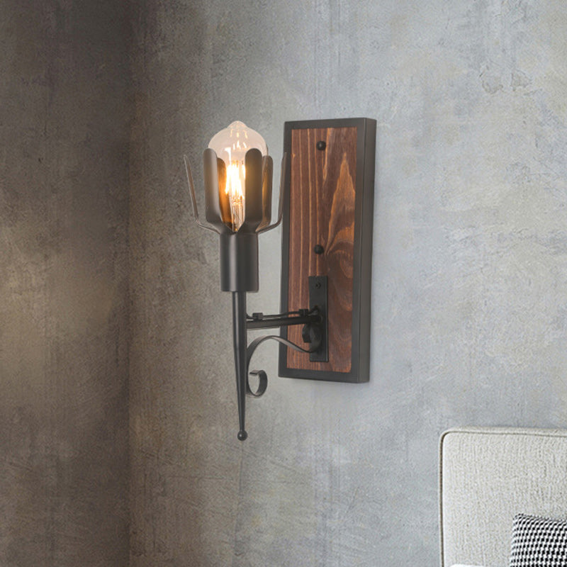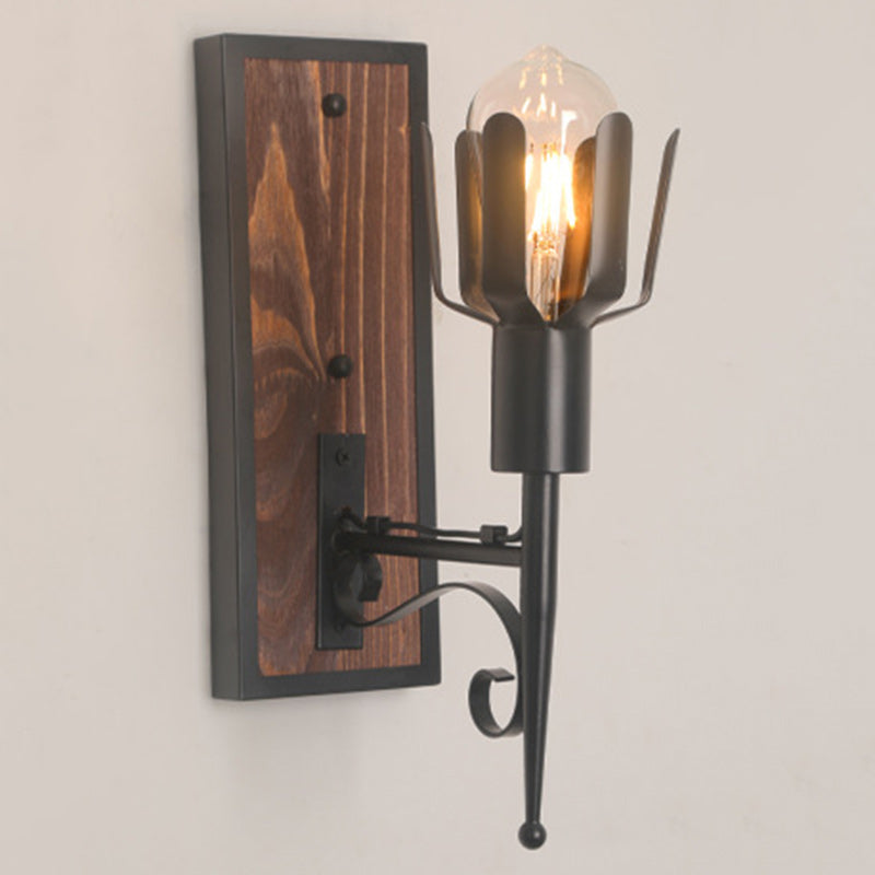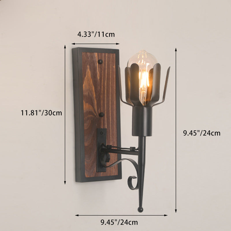 伝統的なヴィンテージシリンダー木製アイアン1ライト壁取り付け用燭台ランプリビングルーム用