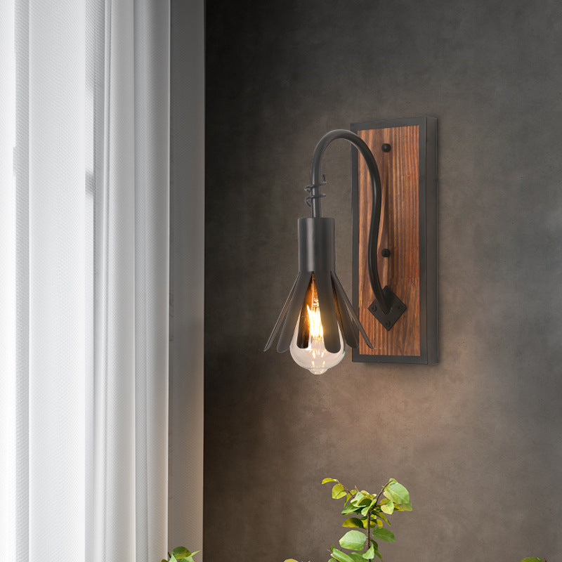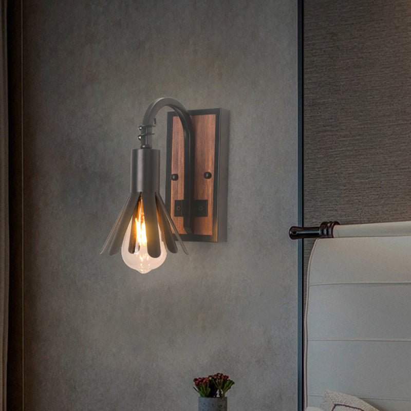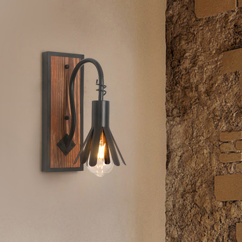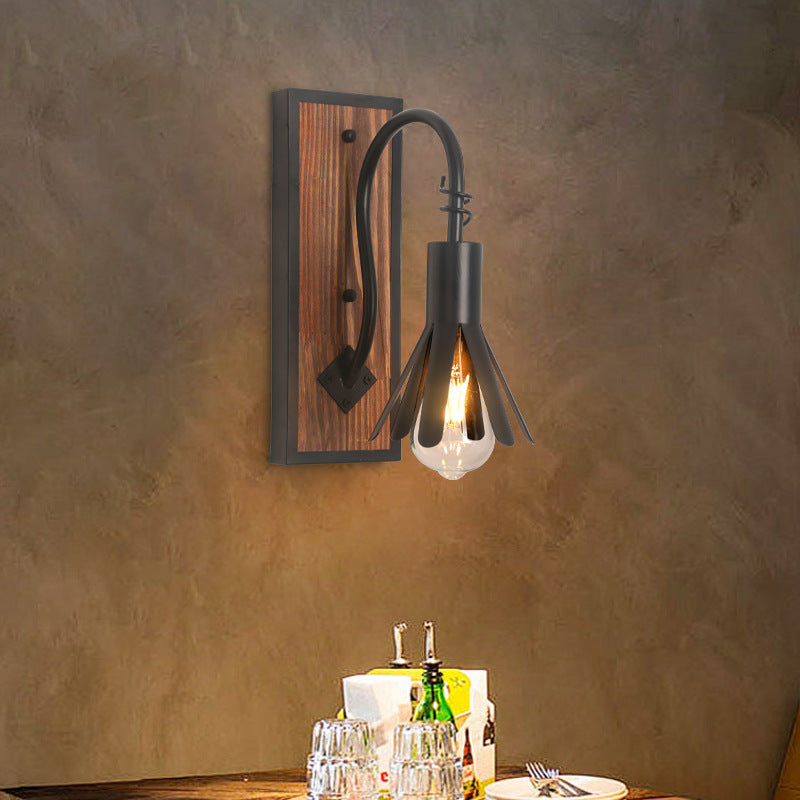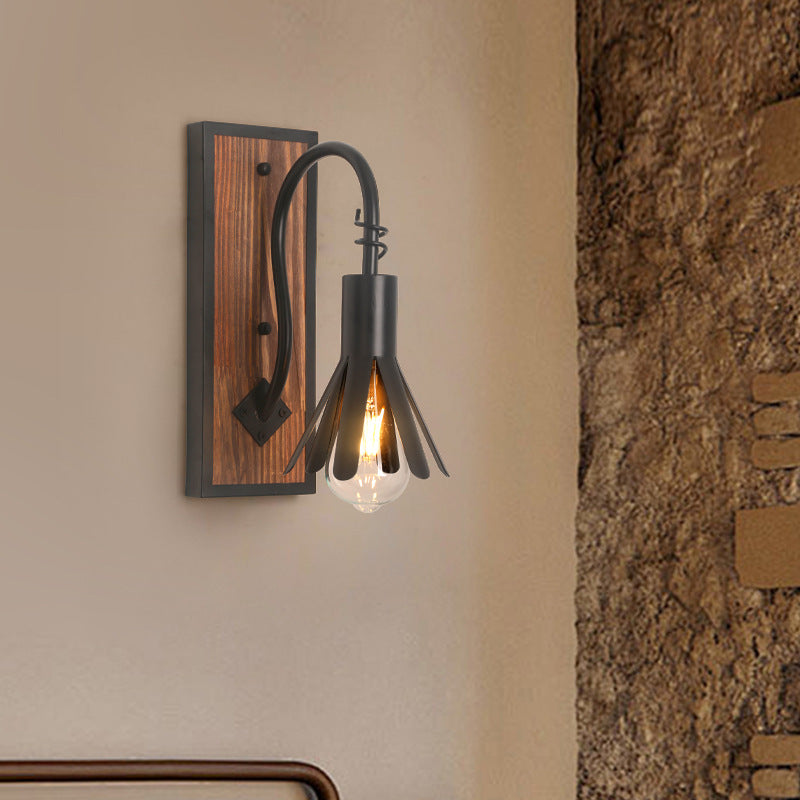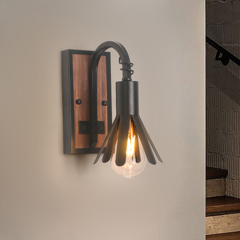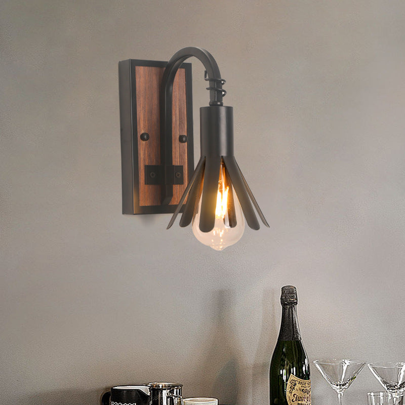 伝統的なヴィンテージシリンダー木製アイアン1ライト壁取り付け用燭台ランプリビングルーム用