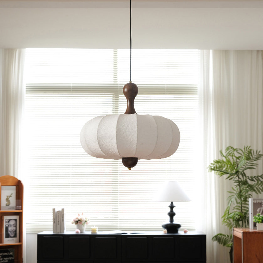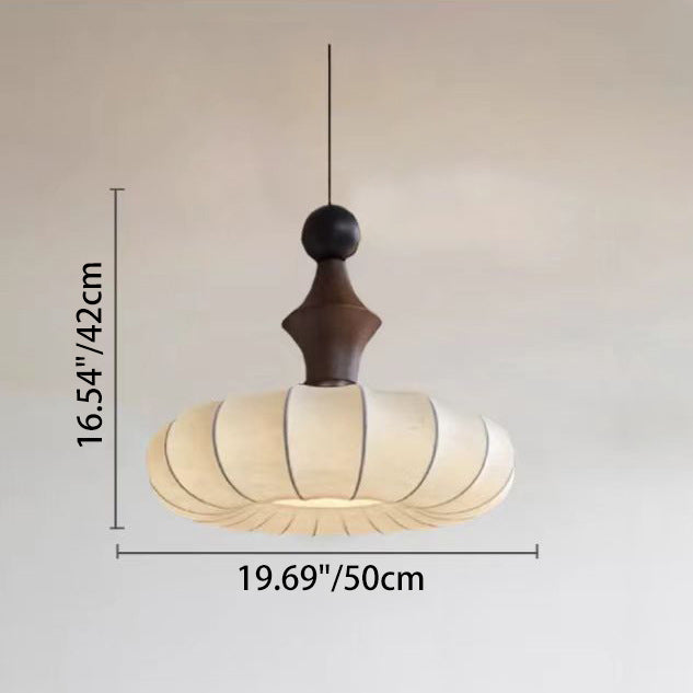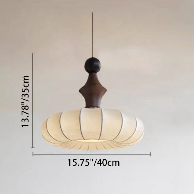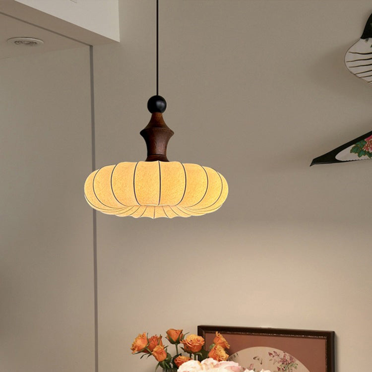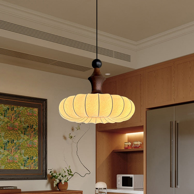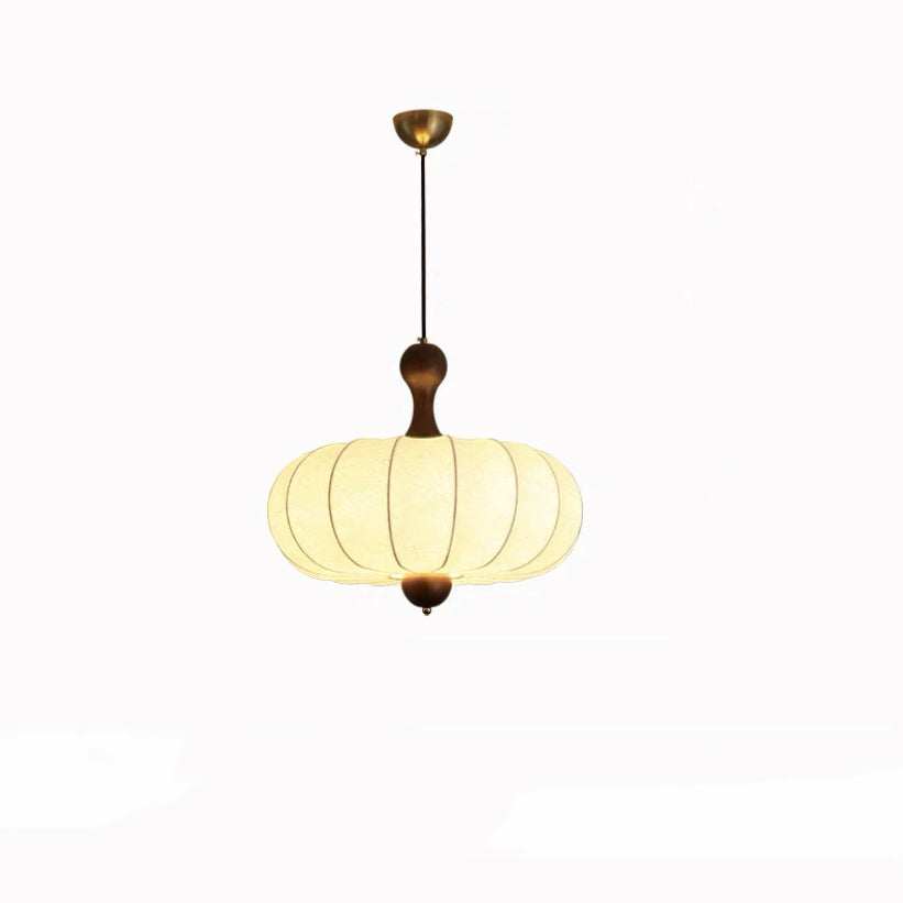 伝統的なヴィンテージフェイクシルク無垢材メタルストライプフラットラウンド1ライトペンダントライト寝室&リビングルーム用