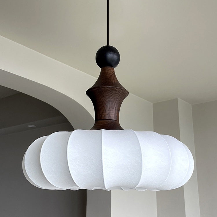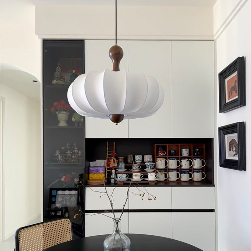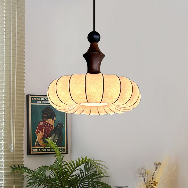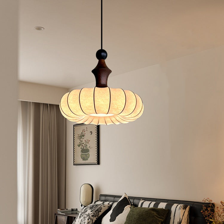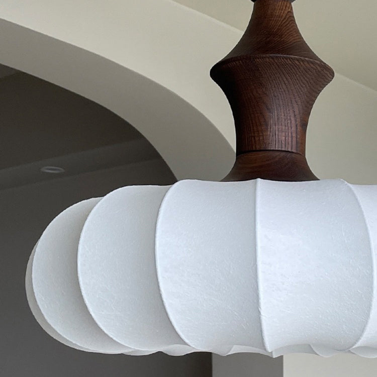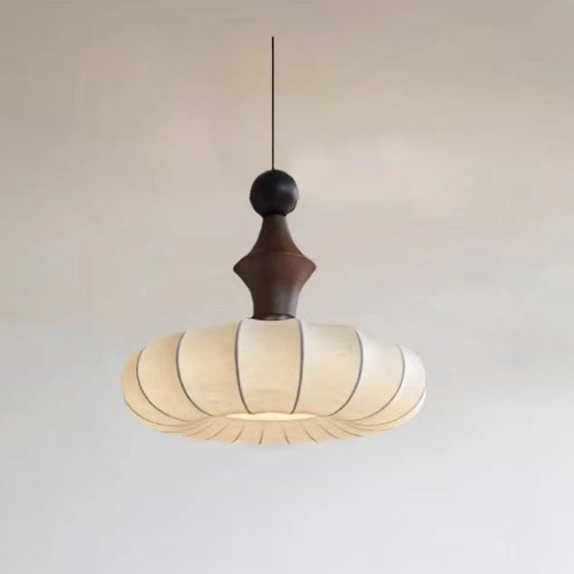 伝統的なヴィンテージフェイクシルク無垢材メタルストライプフラットラウンド1ライトペンダントライト寝室&リビングルーム用