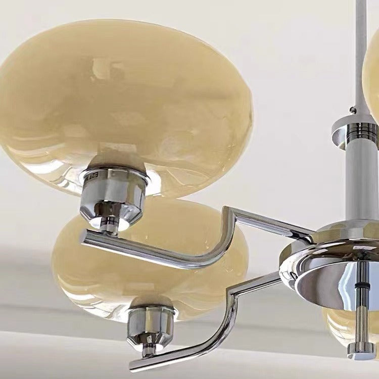 伝統的なヴィンテージフラットラウンドブランチカーブガラスアイアン3/5ライトシャンデリアリビングルーム用