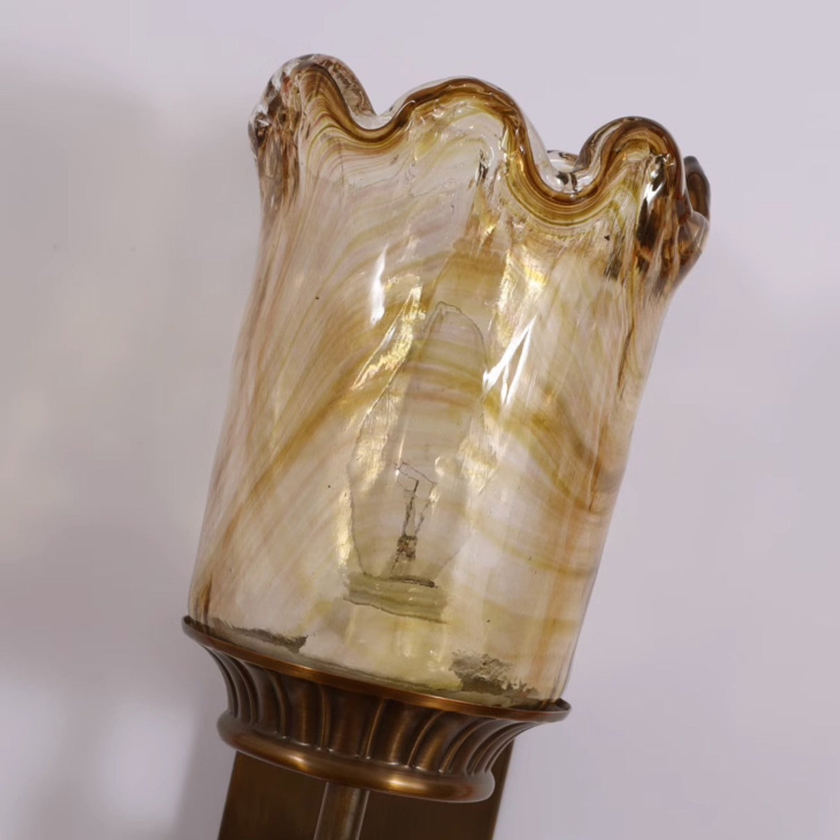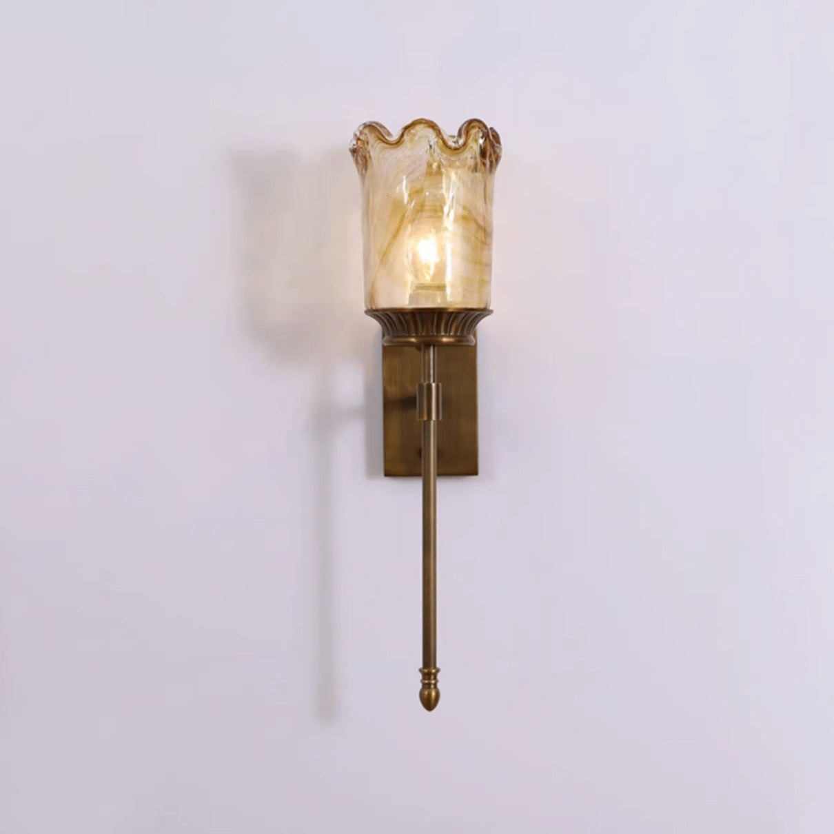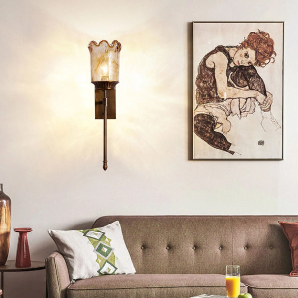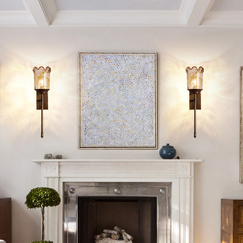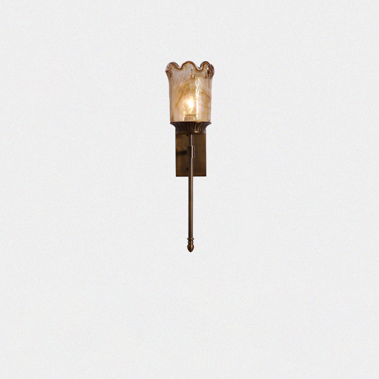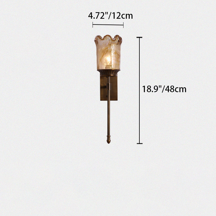 伝統的なヴィンテージフラワーカップ型シリンダーフル銅ポールガラスシェード1ライト壁取り付け用燭台ランプリビングルーム用