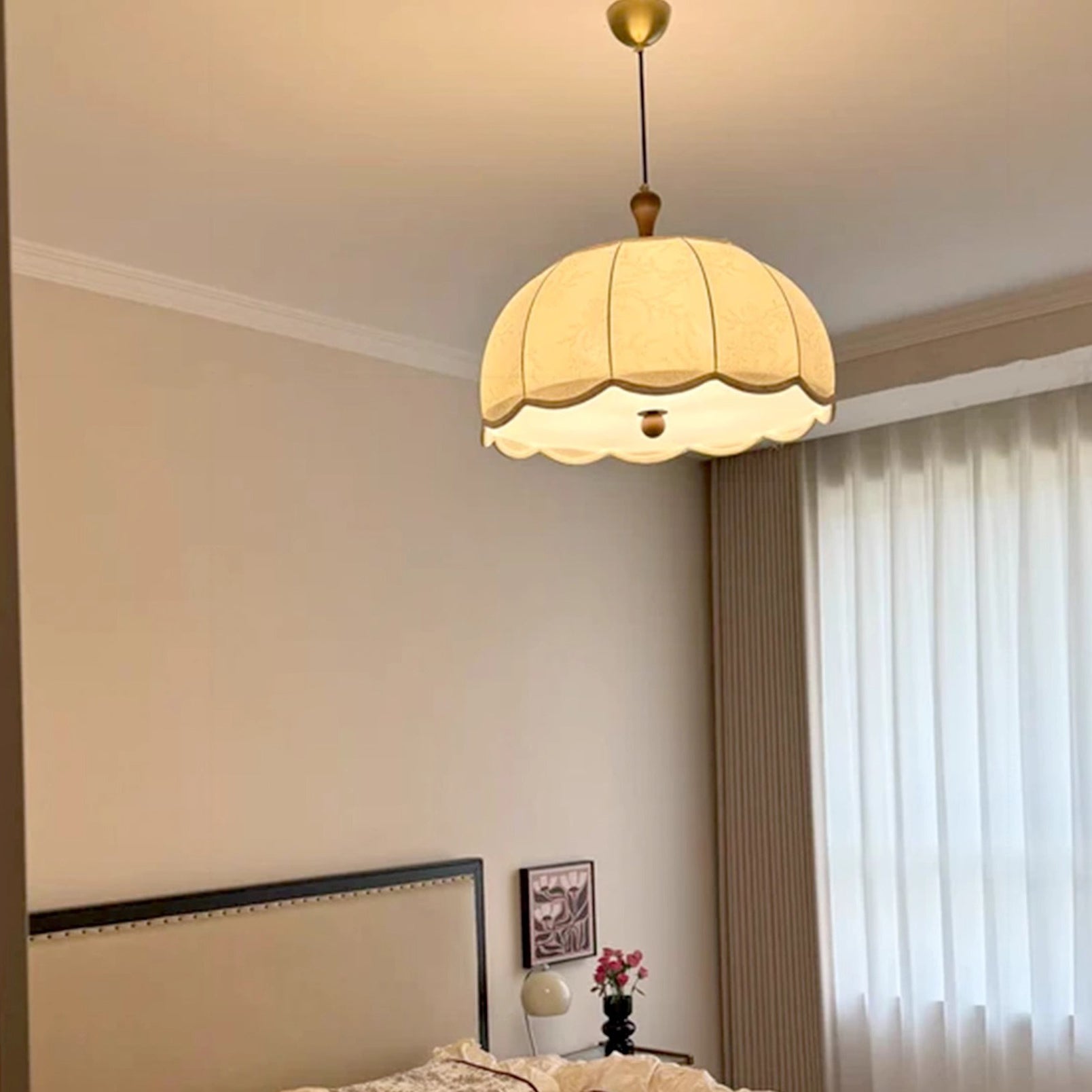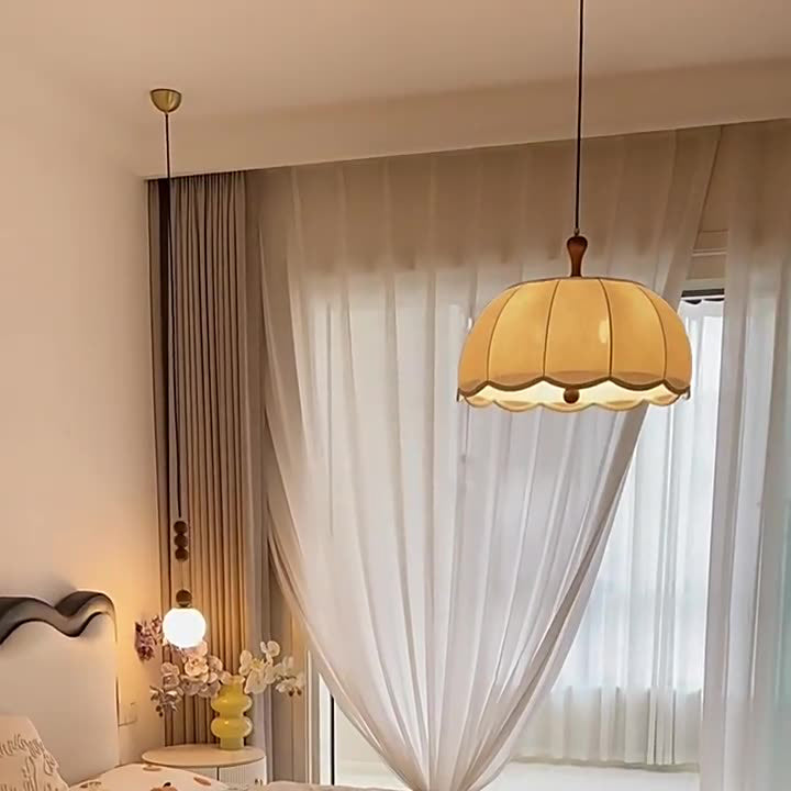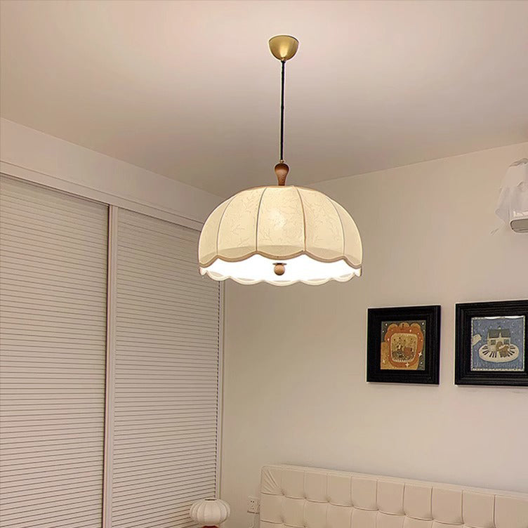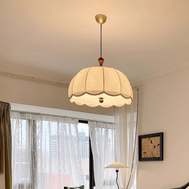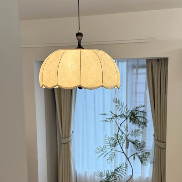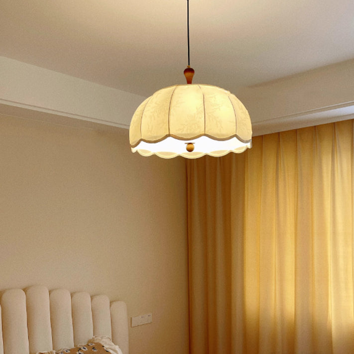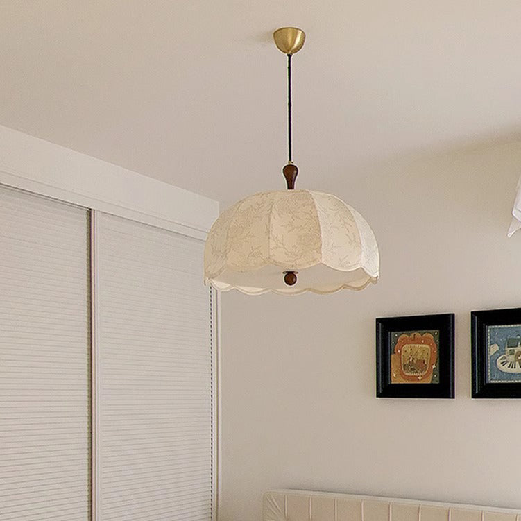 伝統的なヴィンテージフラワー半球木製ファブリックアクリル3/5ライトペンダントライト寝室用