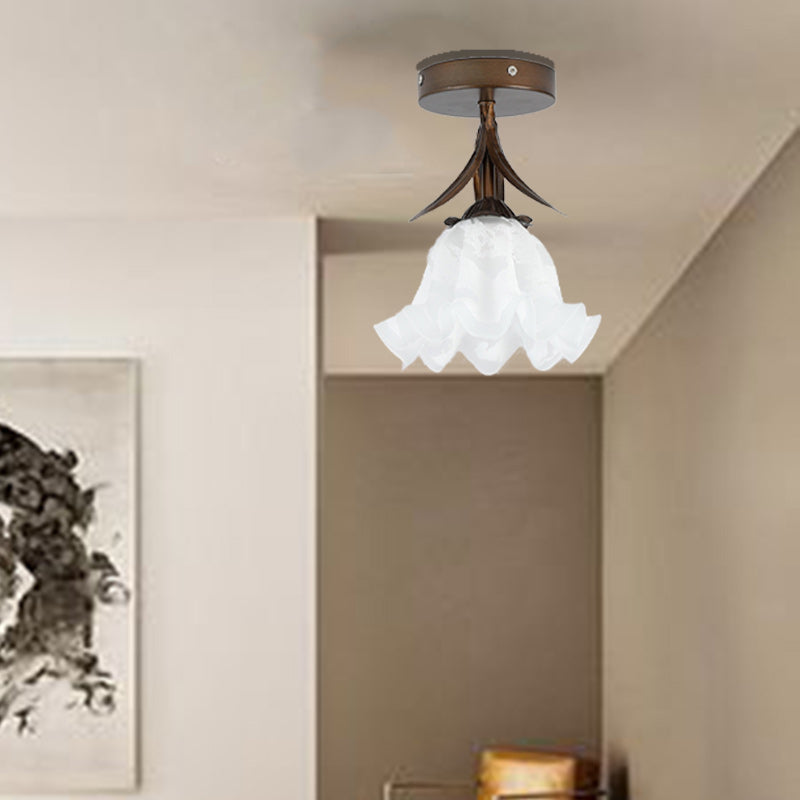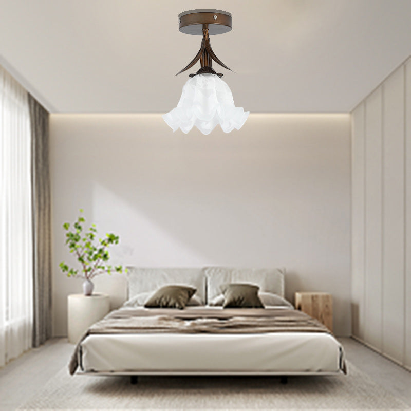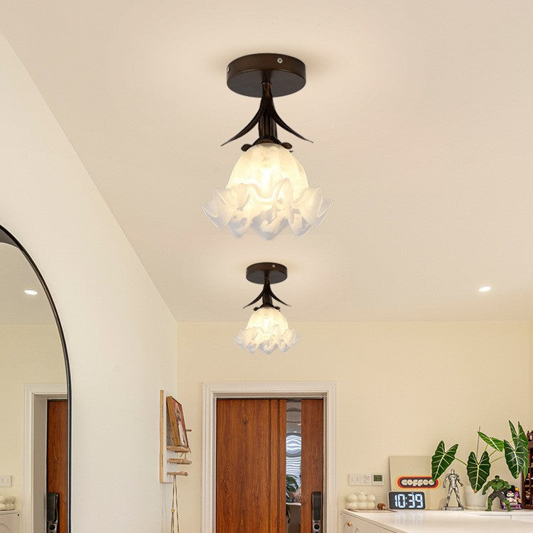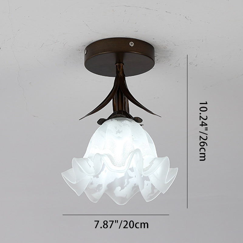 伝統的なヴィンテージフラワーアイアンガラス1灯セミフラッシュマウントシーリングライトリビングルーム用