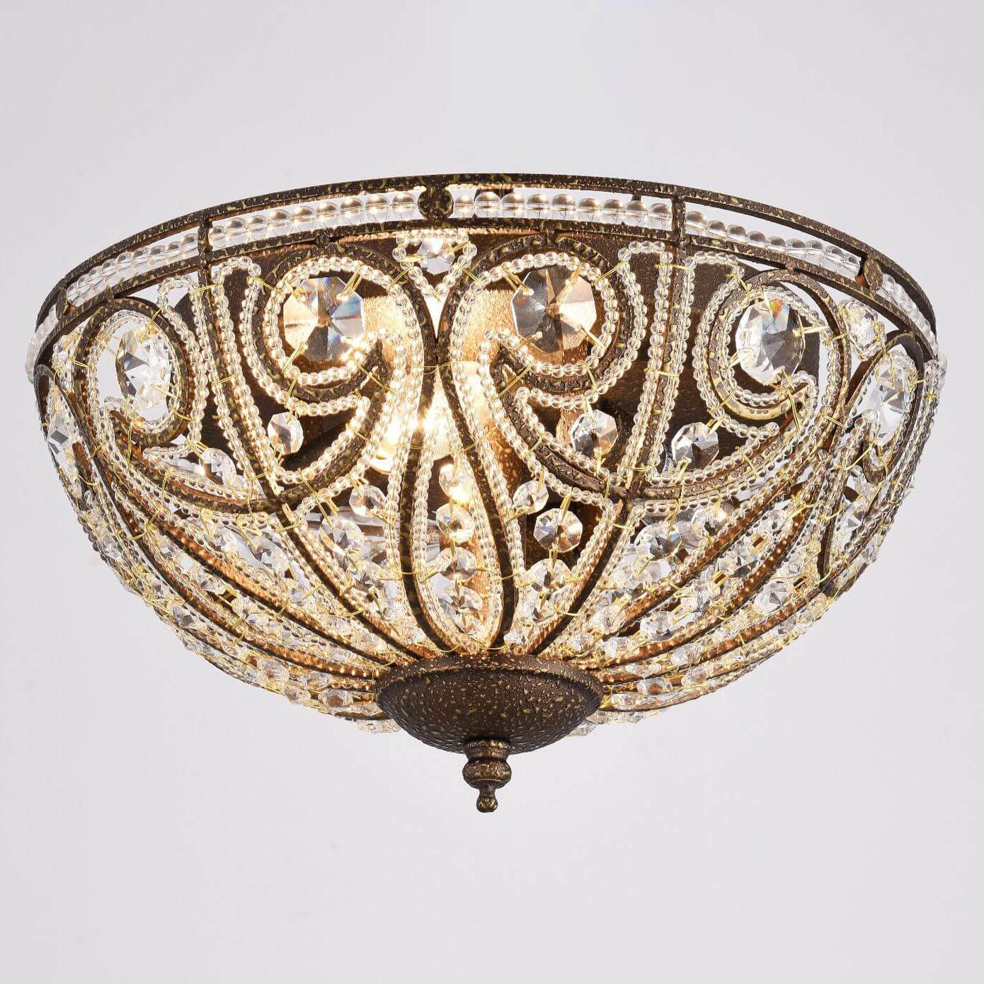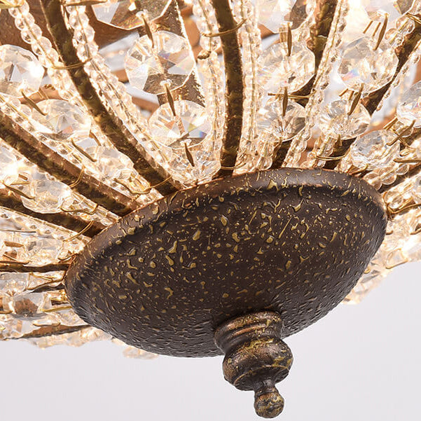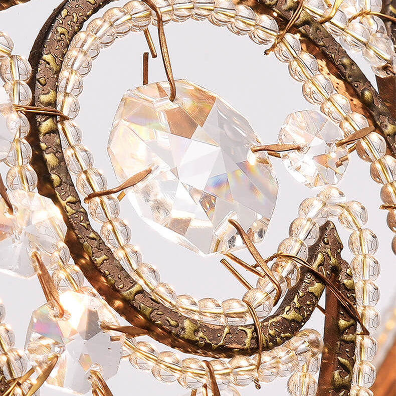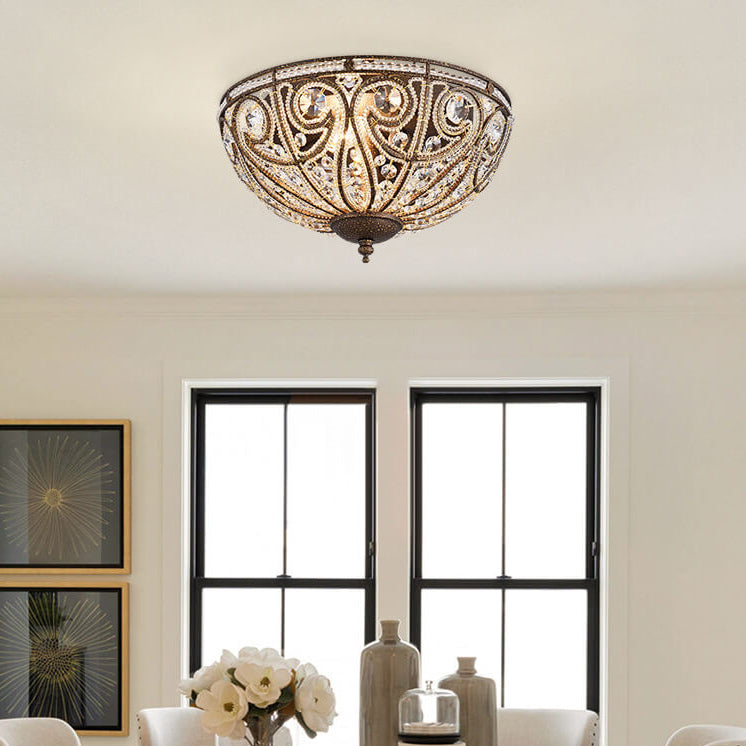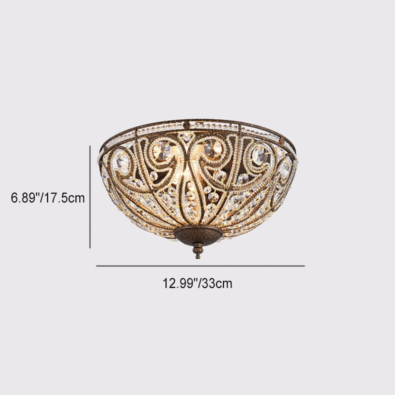 寝室用 伝統的なヴィンテージ ハーフサークル アイアンクリスタル 3灯 フラッシュマウント シーリングライト