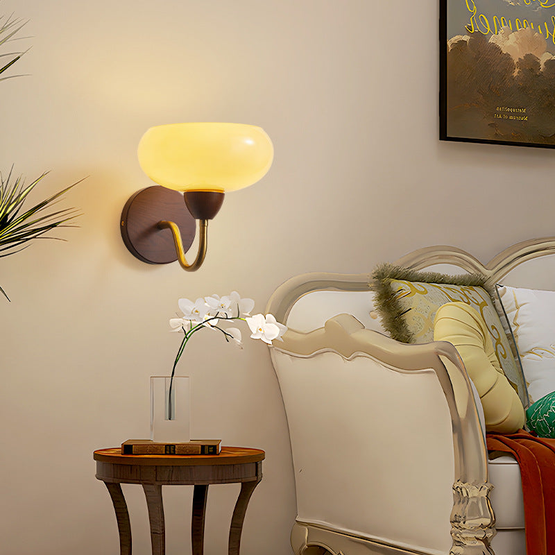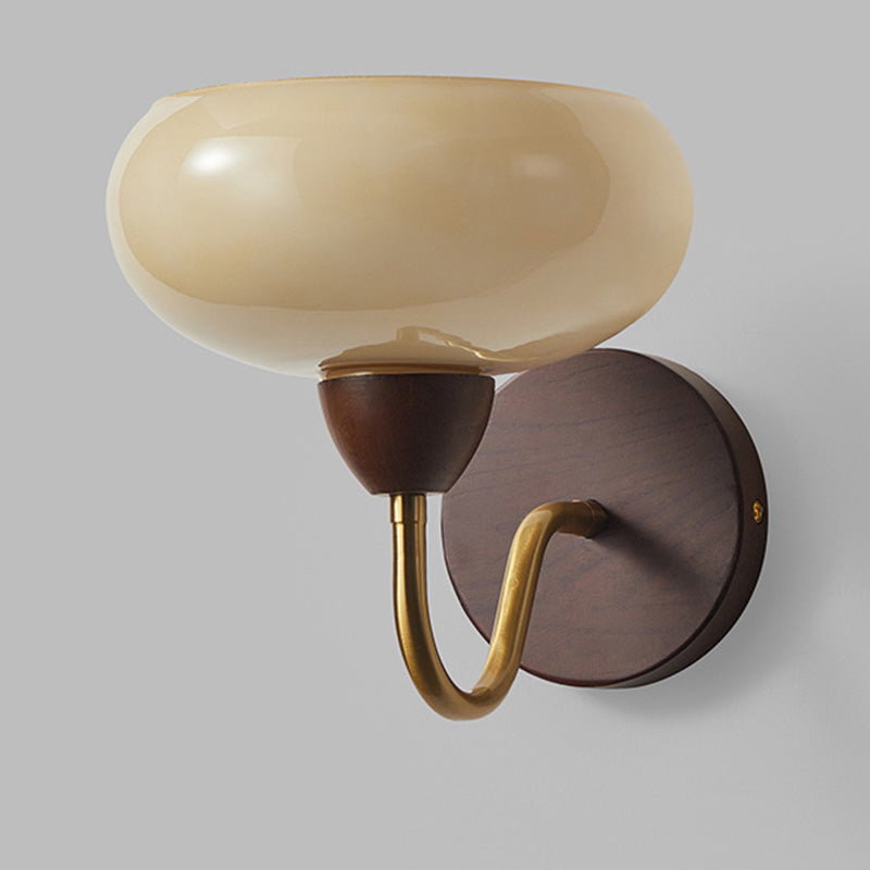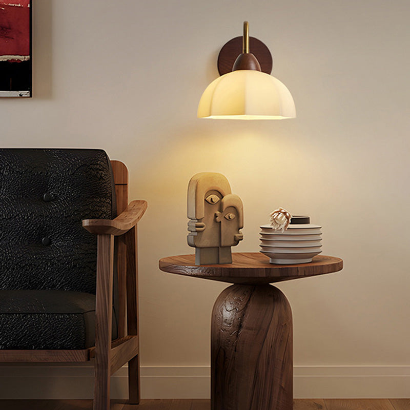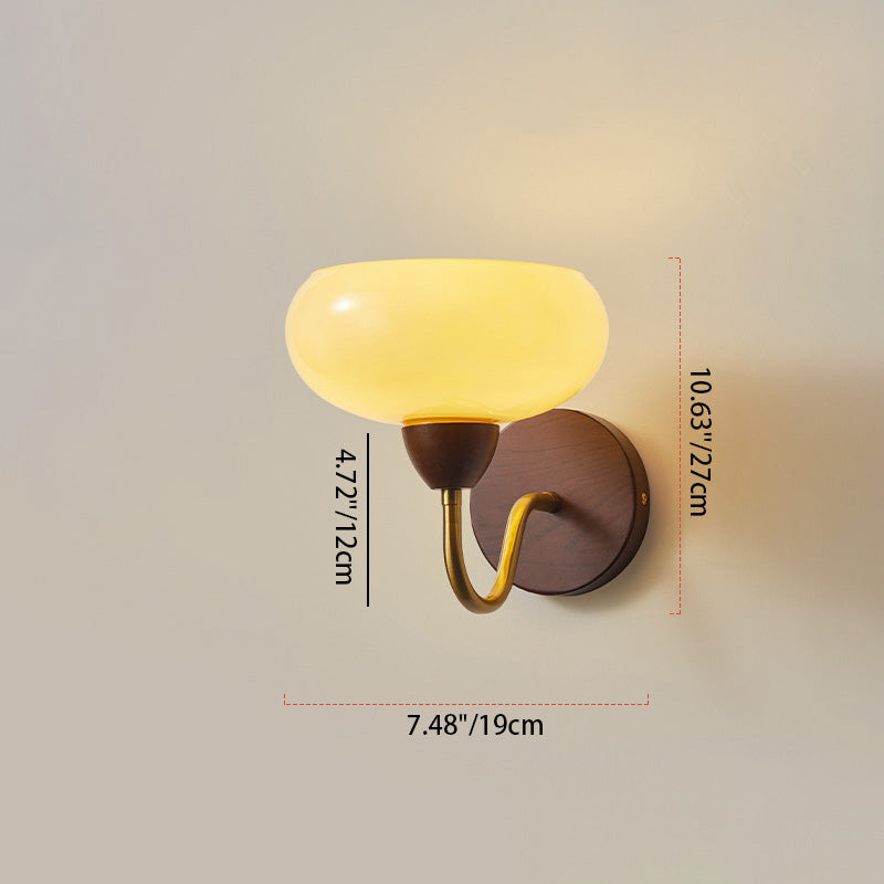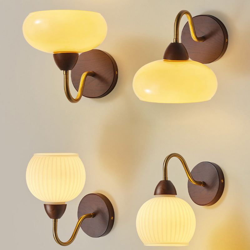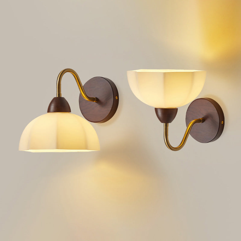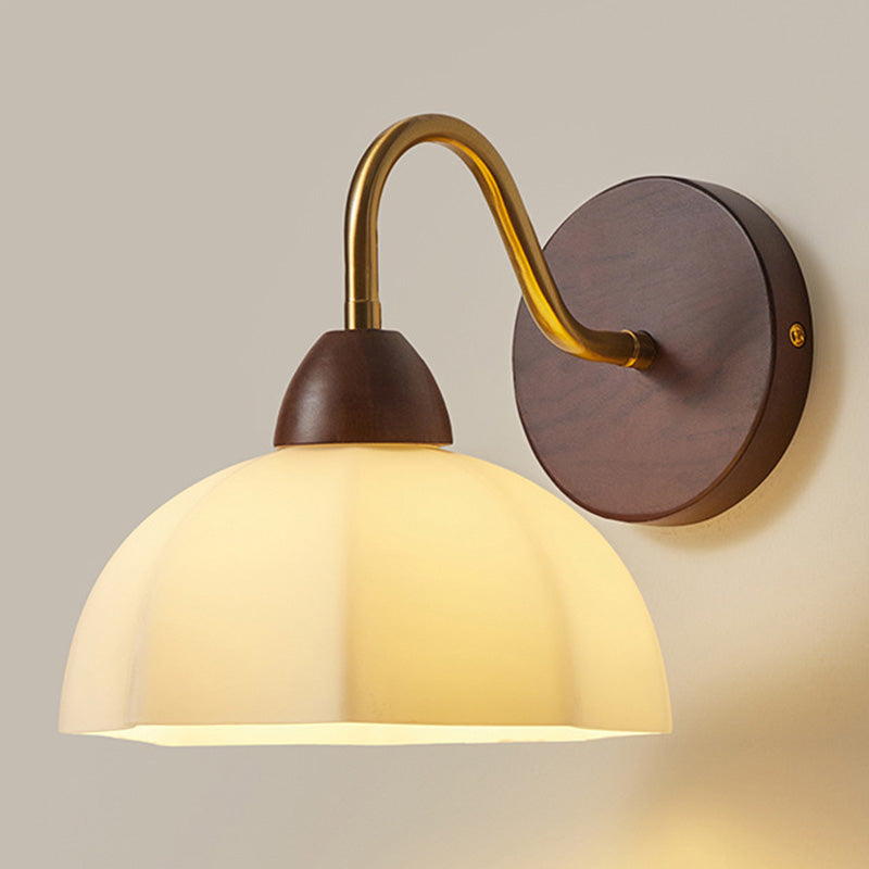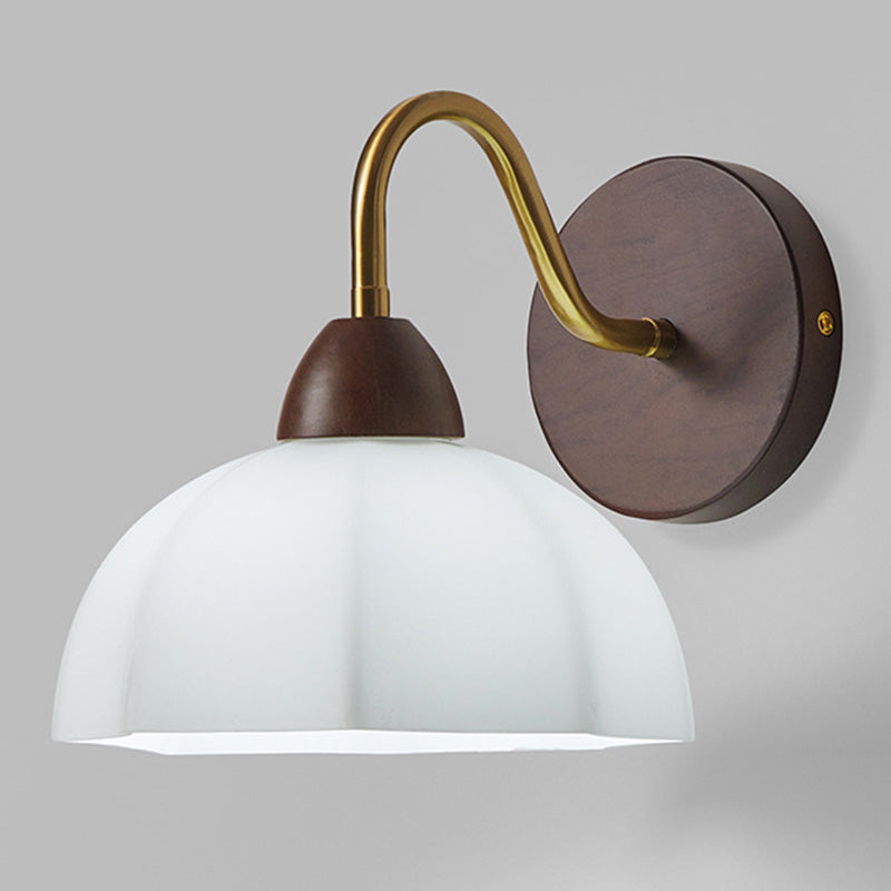 伝統的なヴィンテージ半円形プリーツガラスアッシュウッド金具1灯壁取り付け用燭台ランプ寝室用