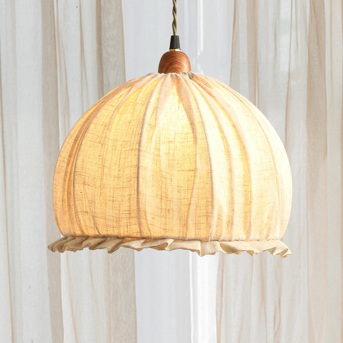伝統的なヴィンテージの半円形スカート付きファブリックアイアン1灯ペンダントライト(リビングルーム用)