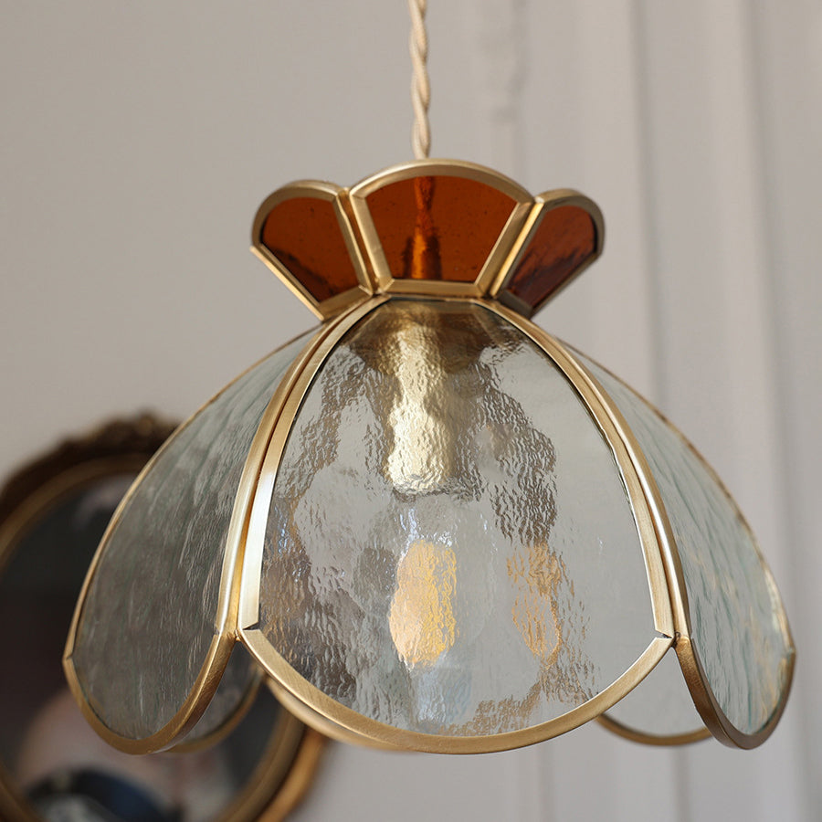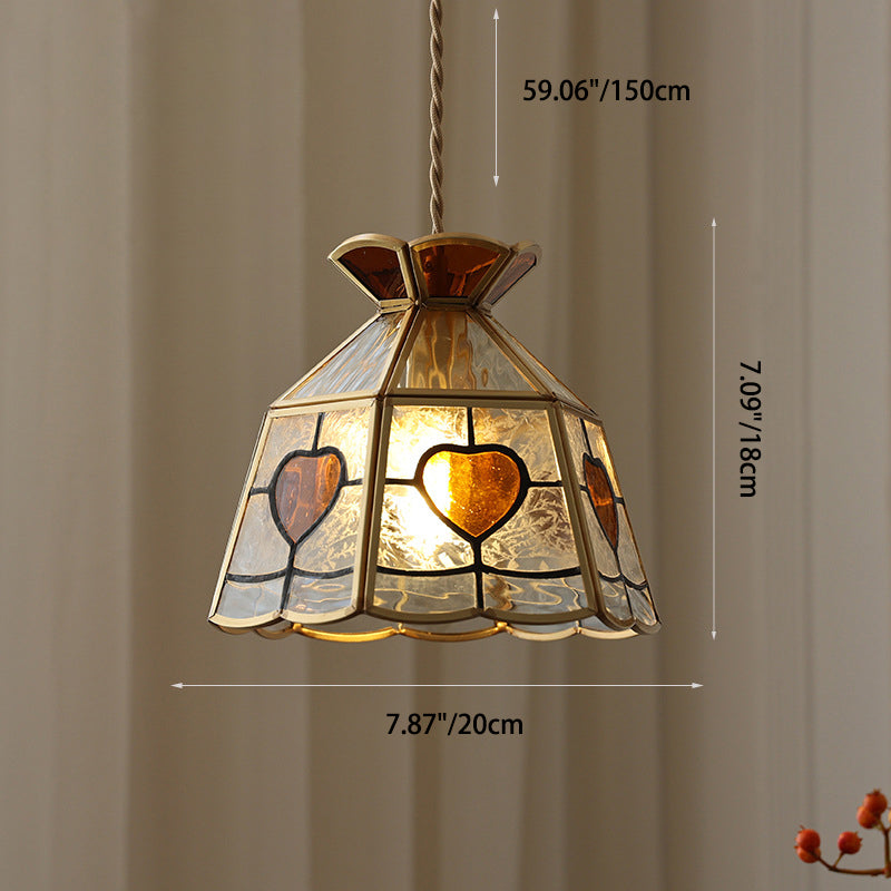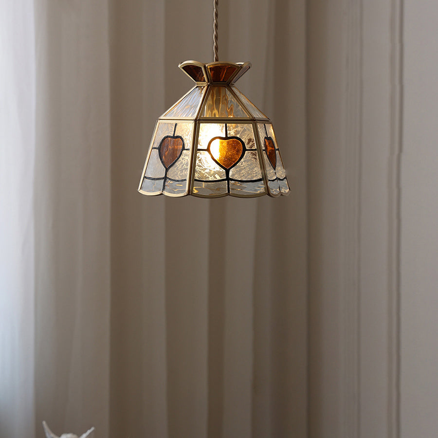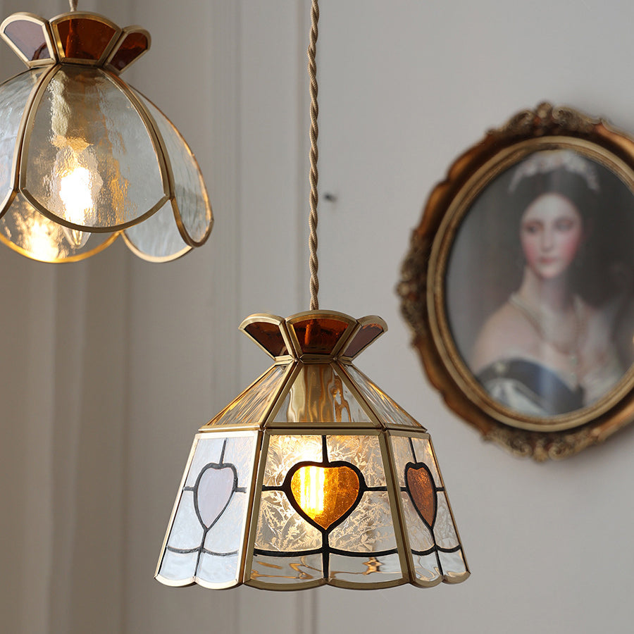 寝室用トラディショナルヴィンテージハートクラウン銅ガラス1灯ペンダントライト