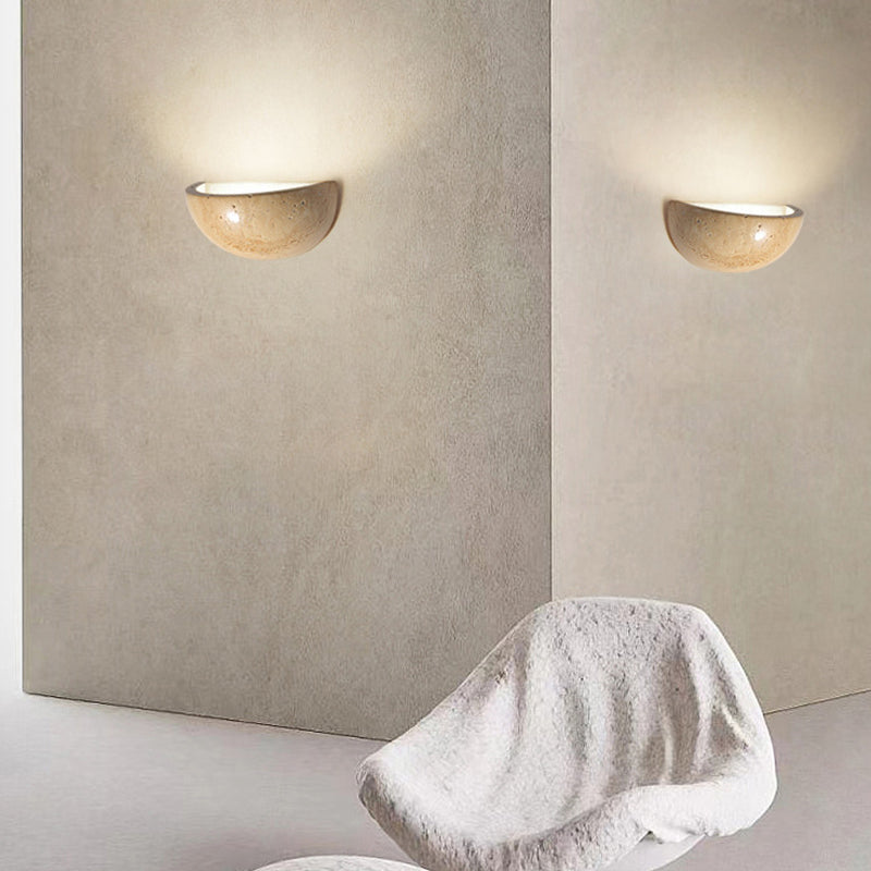 伝統的なヴィンテージ半球型イエロートラバーチン1灯壁取り付け用燭台ランプ(寝室用)