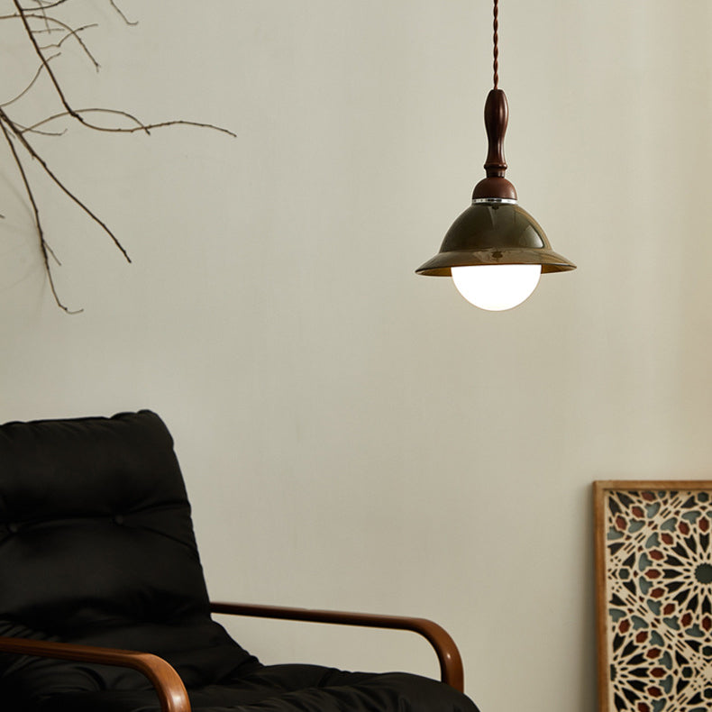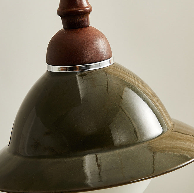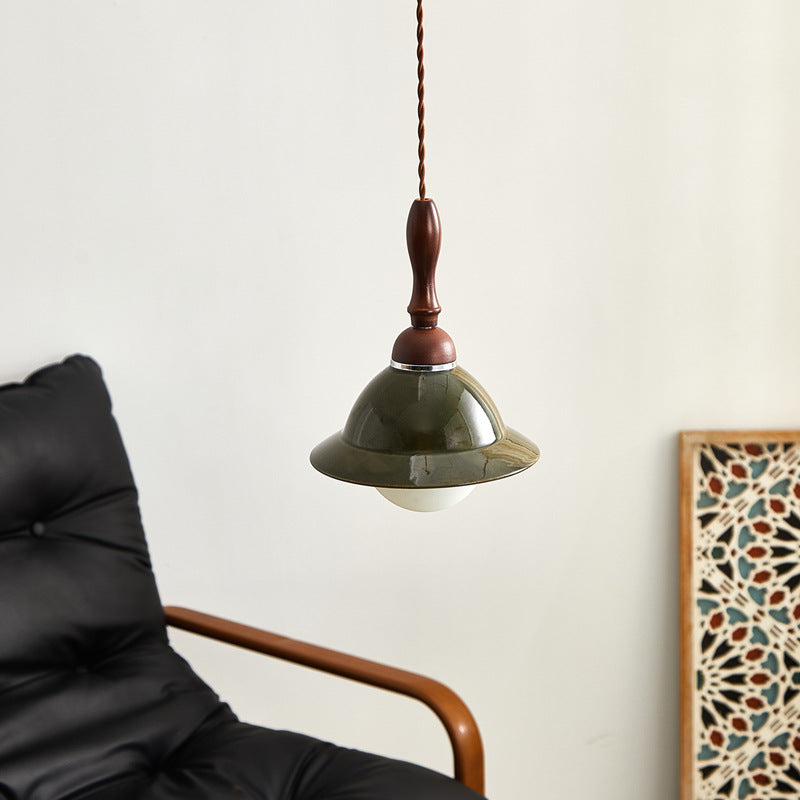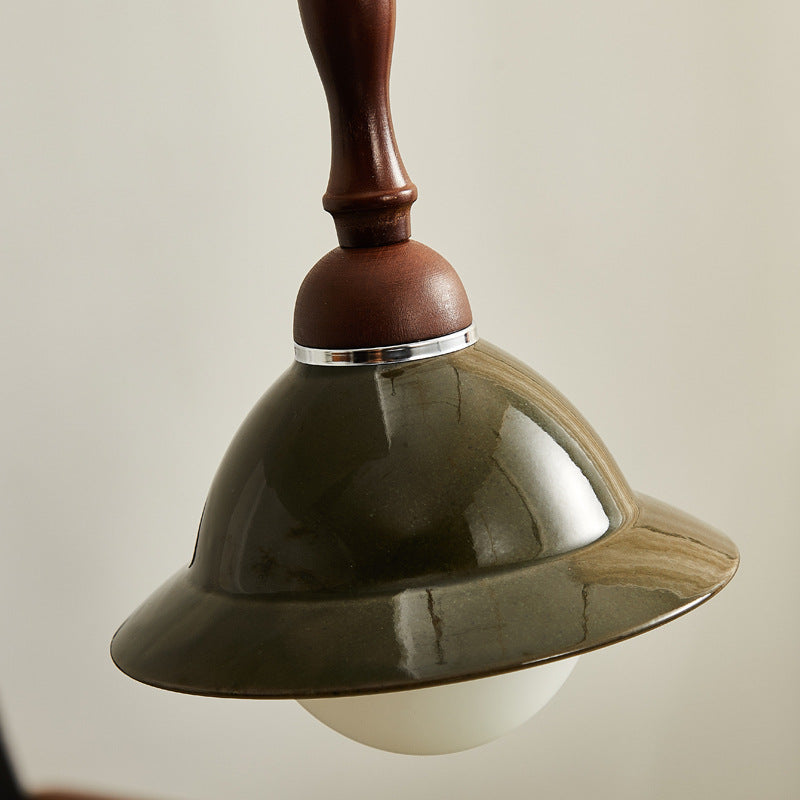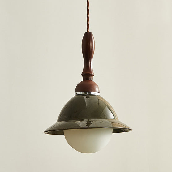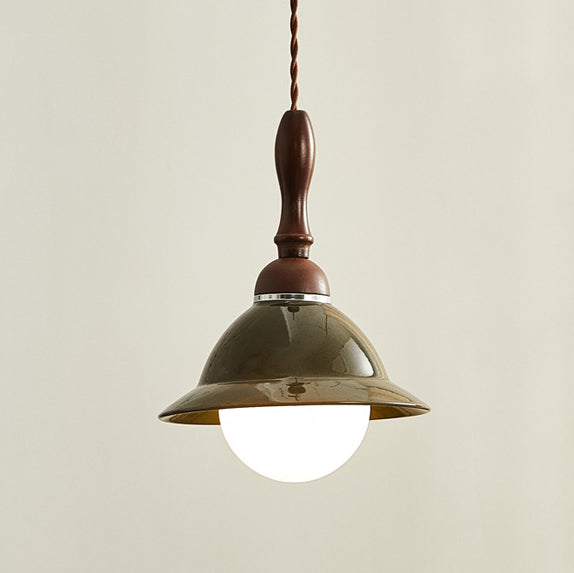 伝統的なヴィンテージ半球形楕円形木製セラミック1灯ペンダントライト(リビングルーム用)