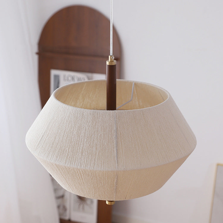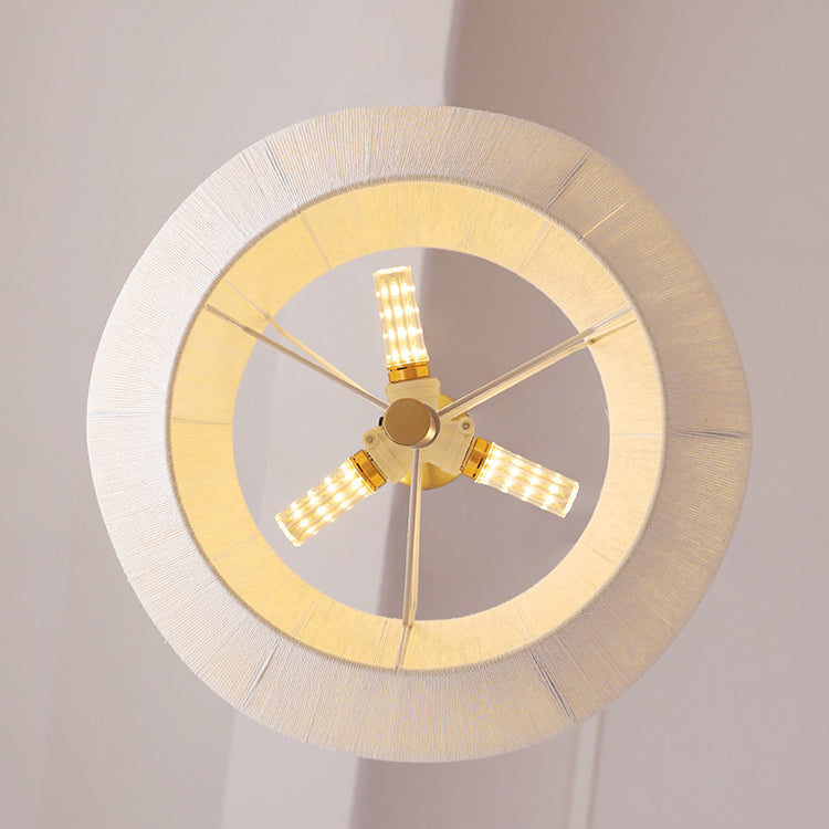 伝統的なヴィンテージ麻ロープ編みラウンドシェード木製3灯シャンデリア(リビングルーム用)