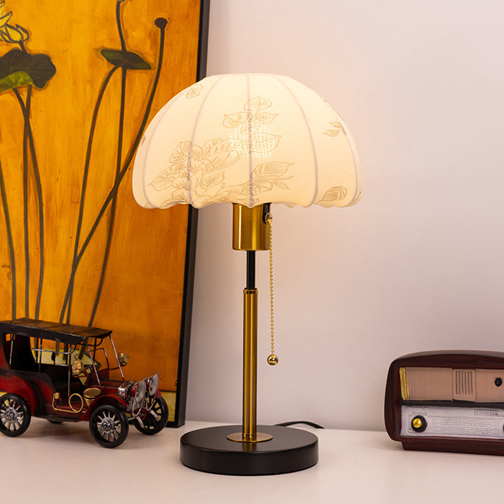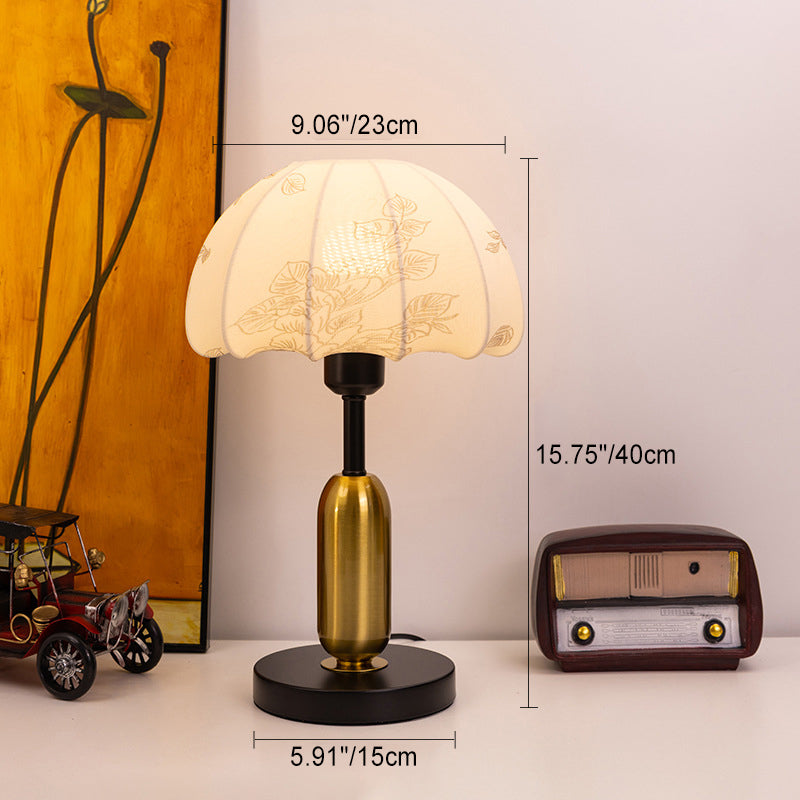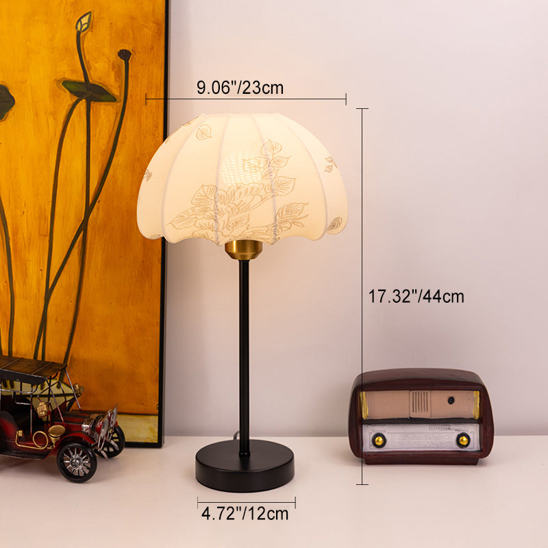 Traditional Vintage Iron Fabric Dome Leaves Pattern 1-Light Table Lamp For Bedroom