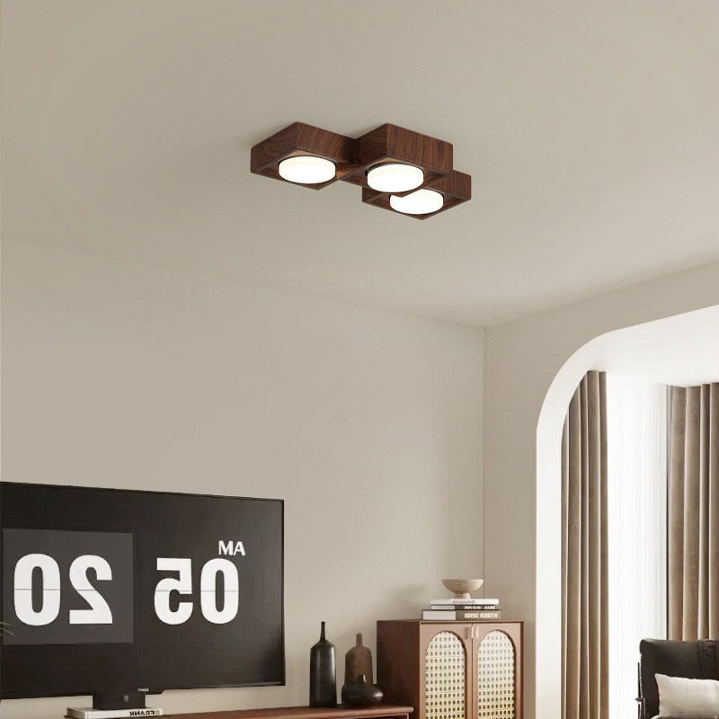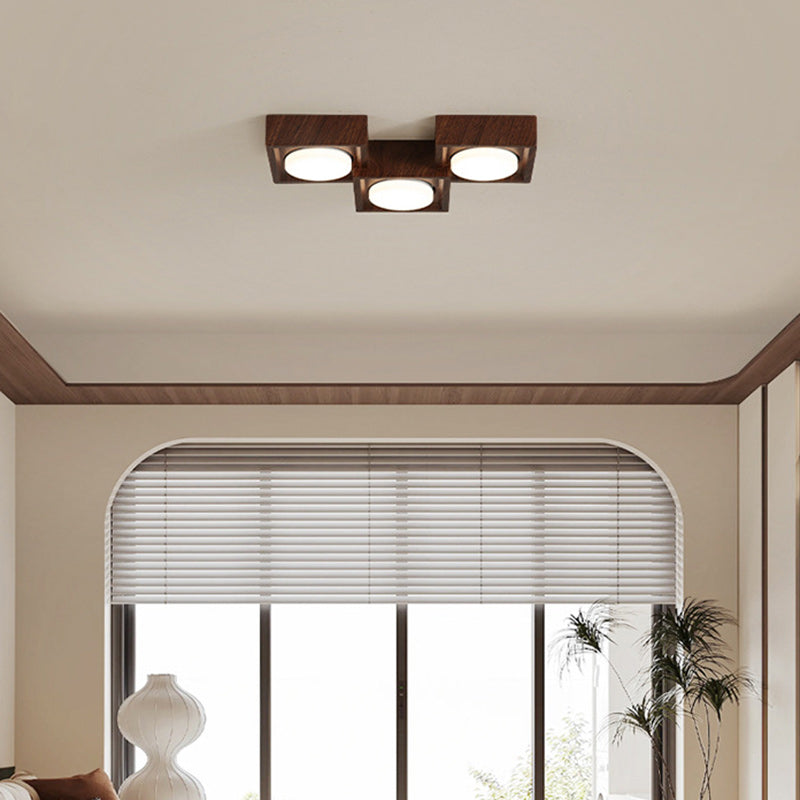 伝統的なヴィンテージの鉄と樹脂のスクエアブロックスタイルの2/3ライトフラッシュマウントダウンライトシーリングライトリビングルームと寝室用