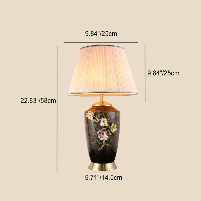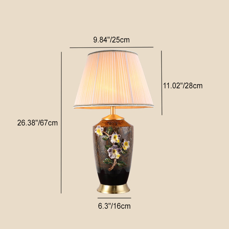 Traditional Vintage Peach Blossom Vase Shaped Ceramic Copper Fabric 1-Light Table Lamp For Bedroom
