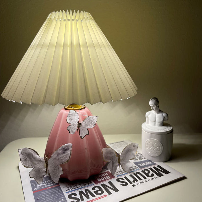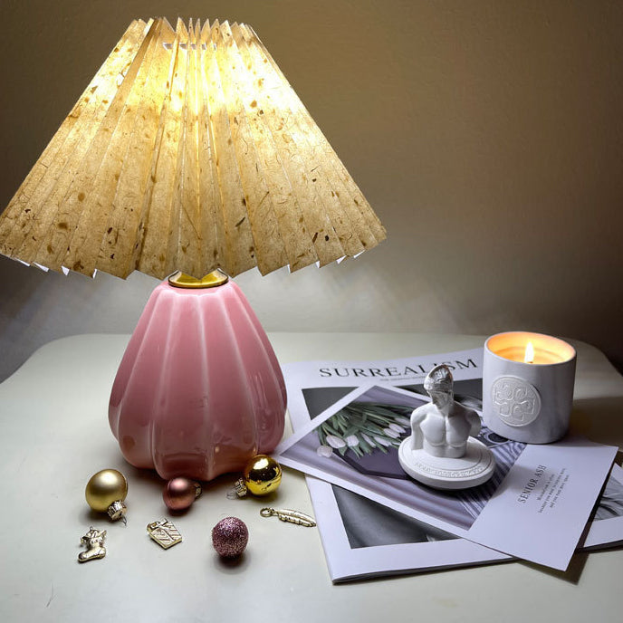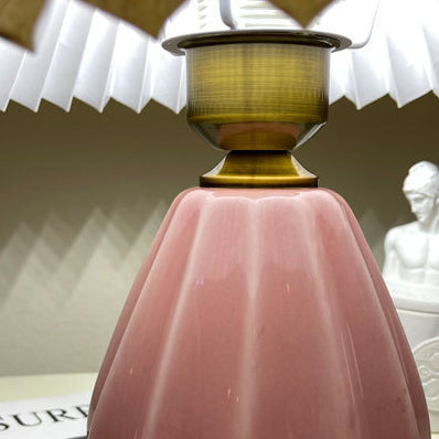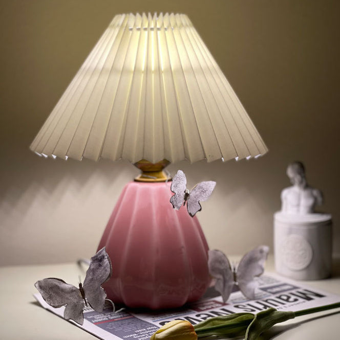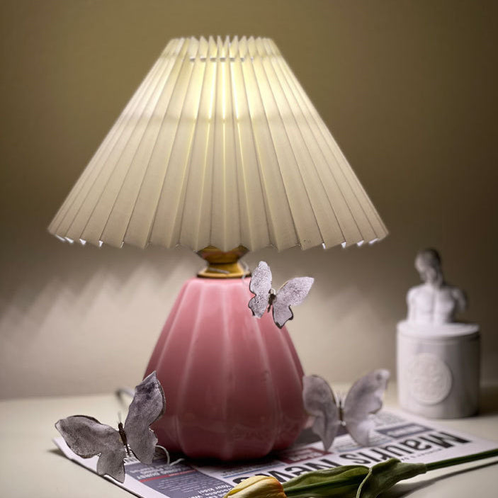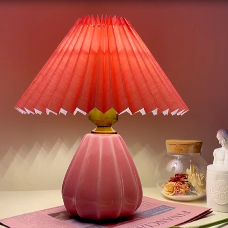 Traditional Vintage Round Cone Pleated Fabric Ceramic 1-Light Table Lamp For Bedroom