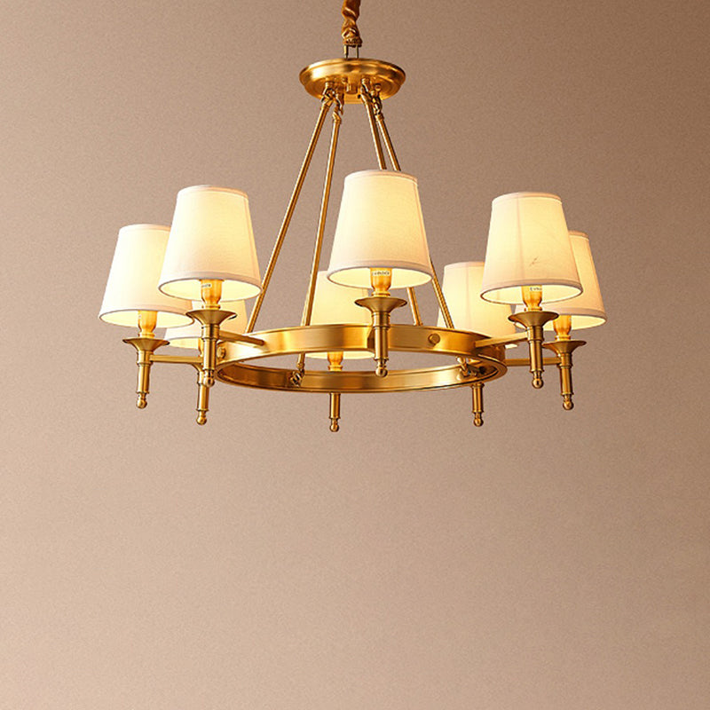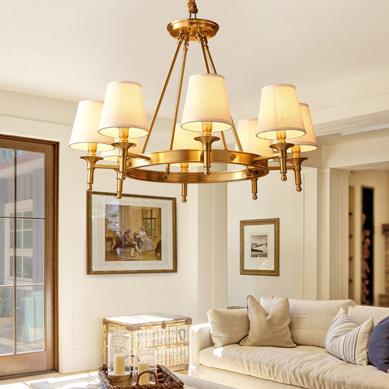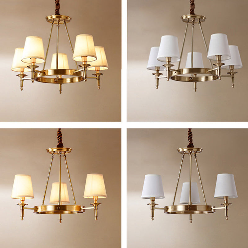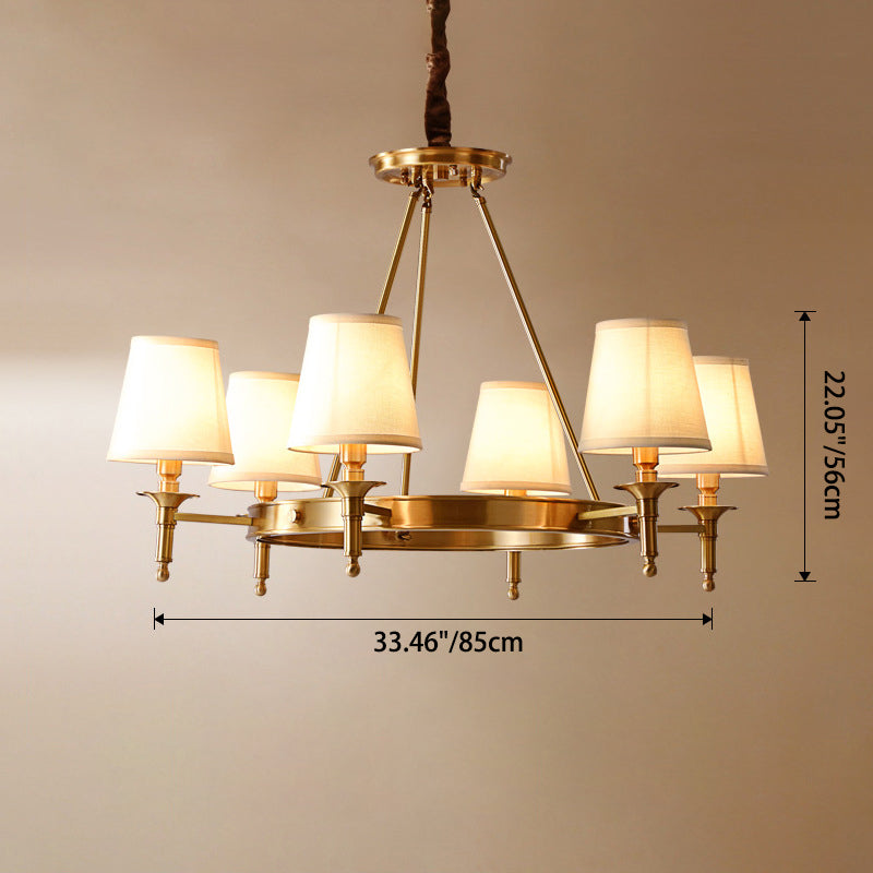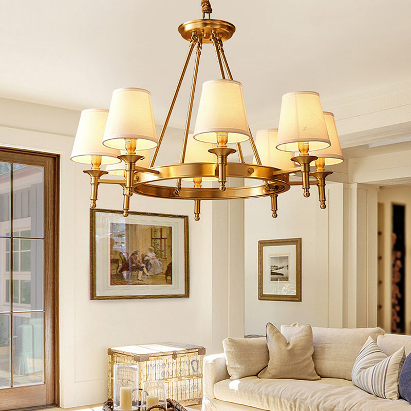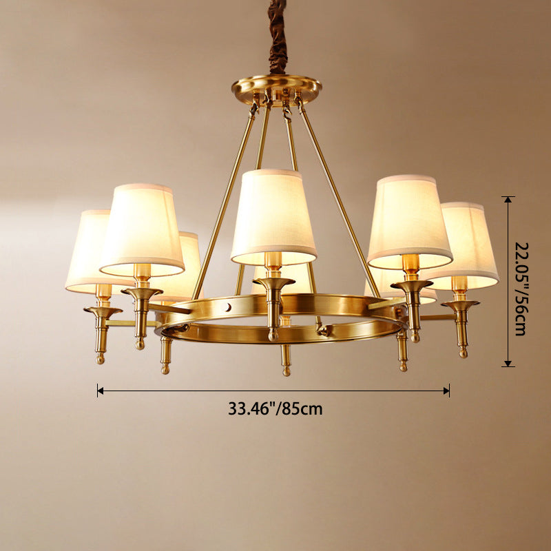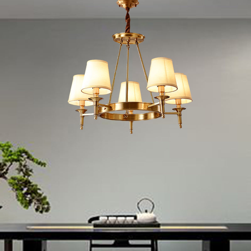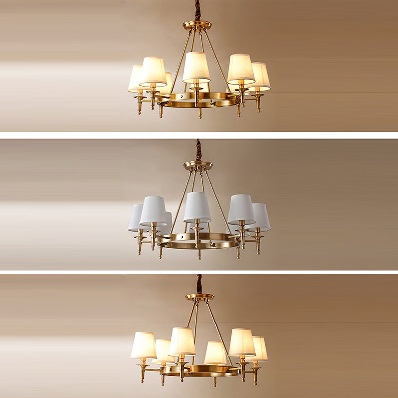 伝統的なヴィンテージラウンドシリンダー銅ファブリック5/6/8/10ライトシャンデリアリビングルーム用