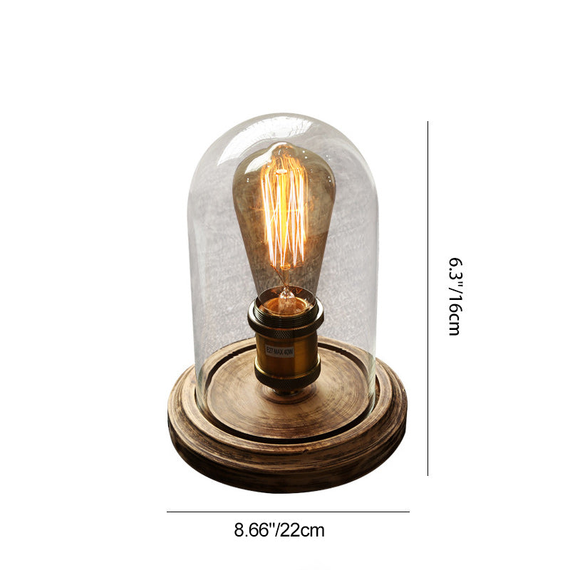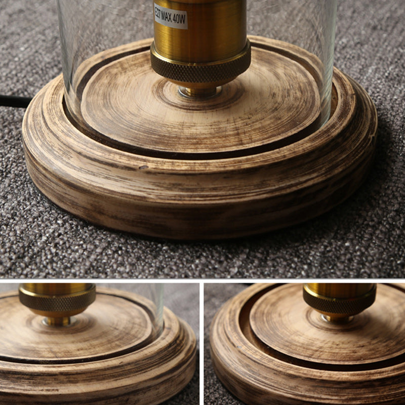 Traditional Vintage Round Cylinder Solid Wood Base Glass Shade 1-Light Table Lamp For Bedroom