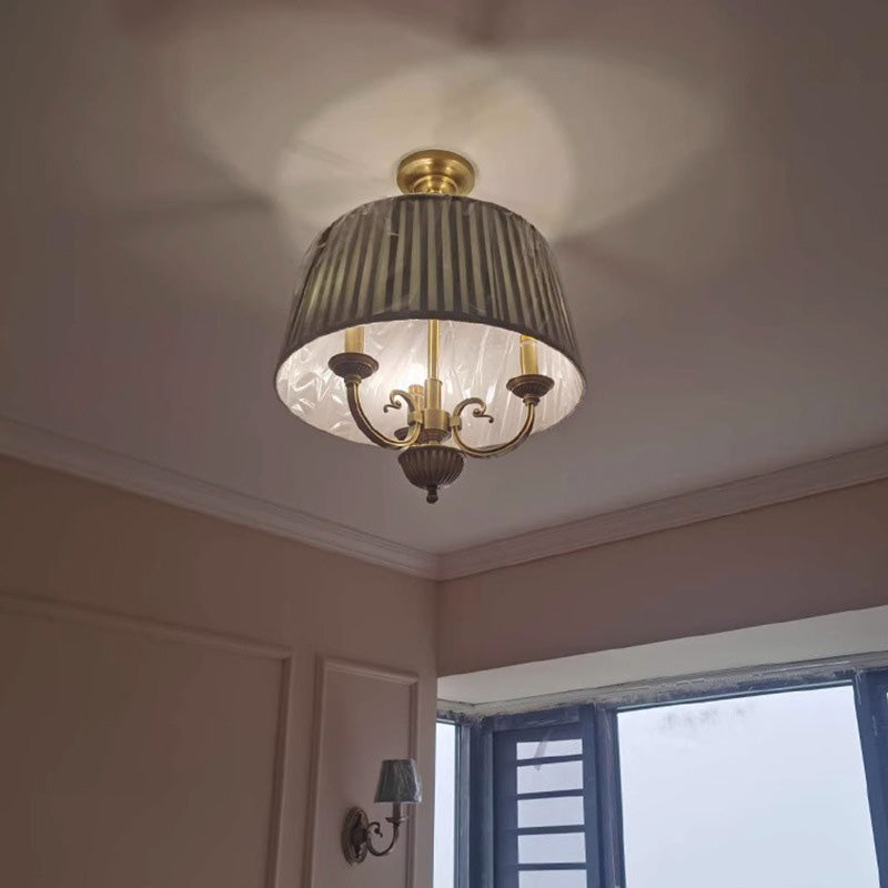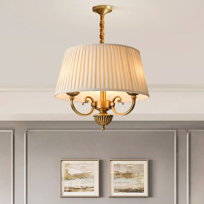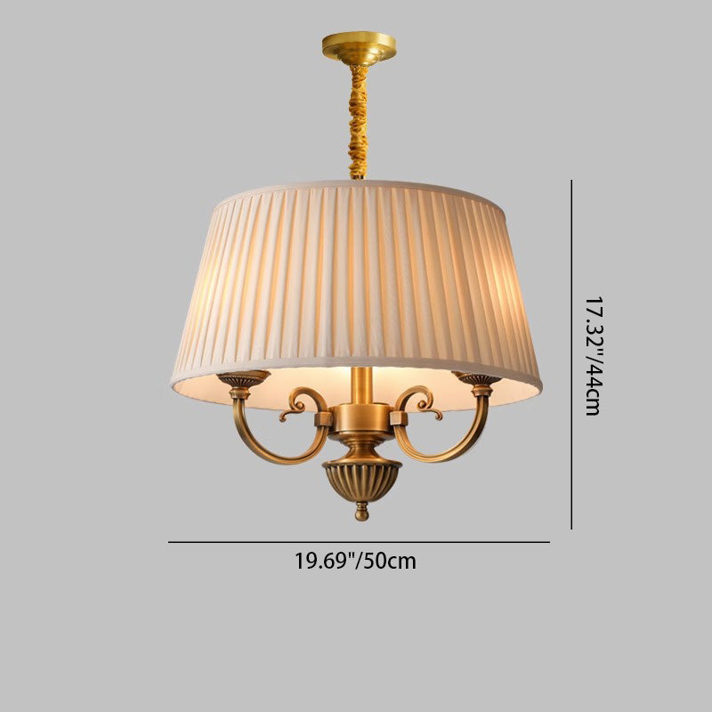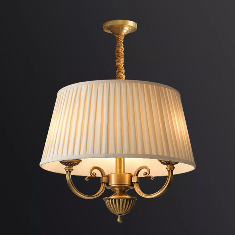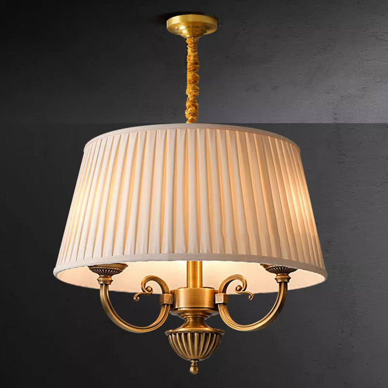 寝室用、伝統的なヴィンテージ丸型円筒形銅ファブリック3灯ペンダントライト