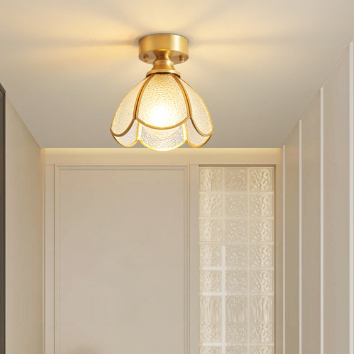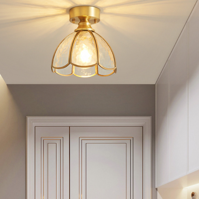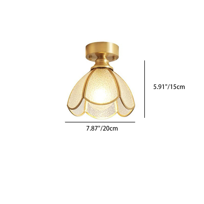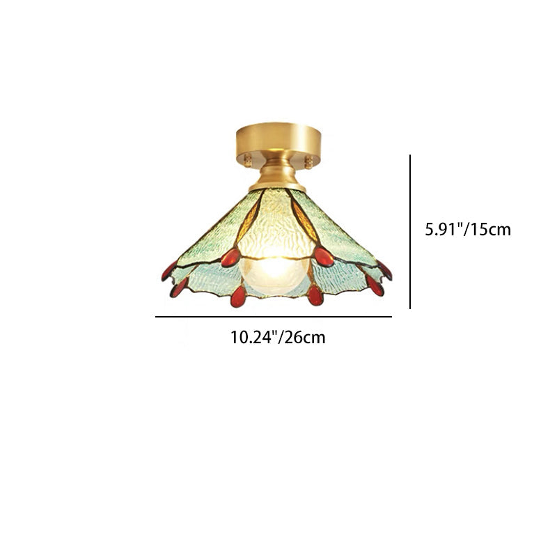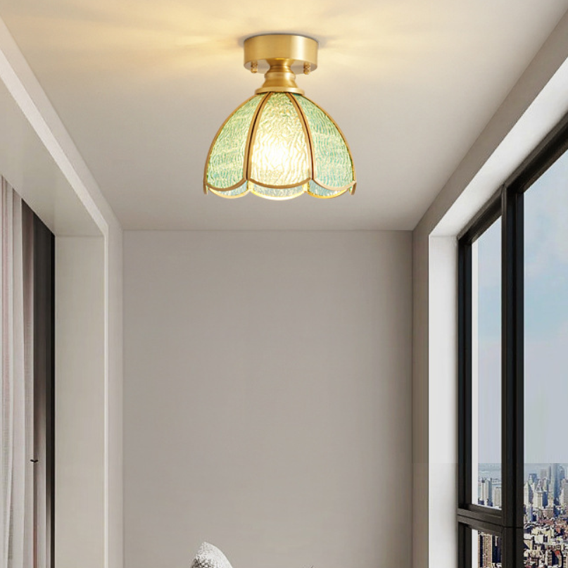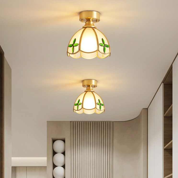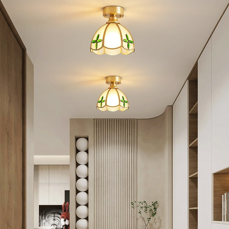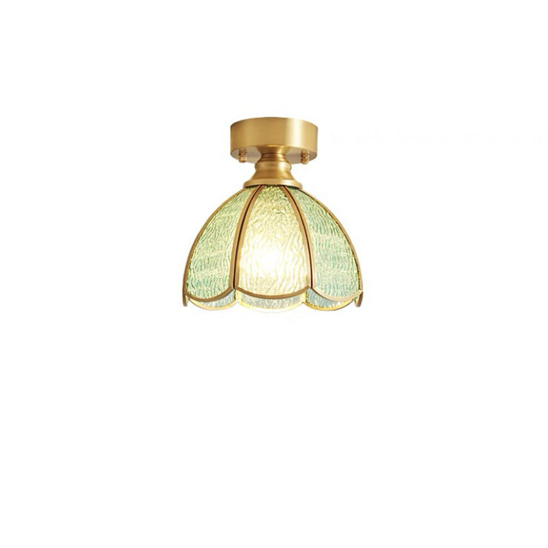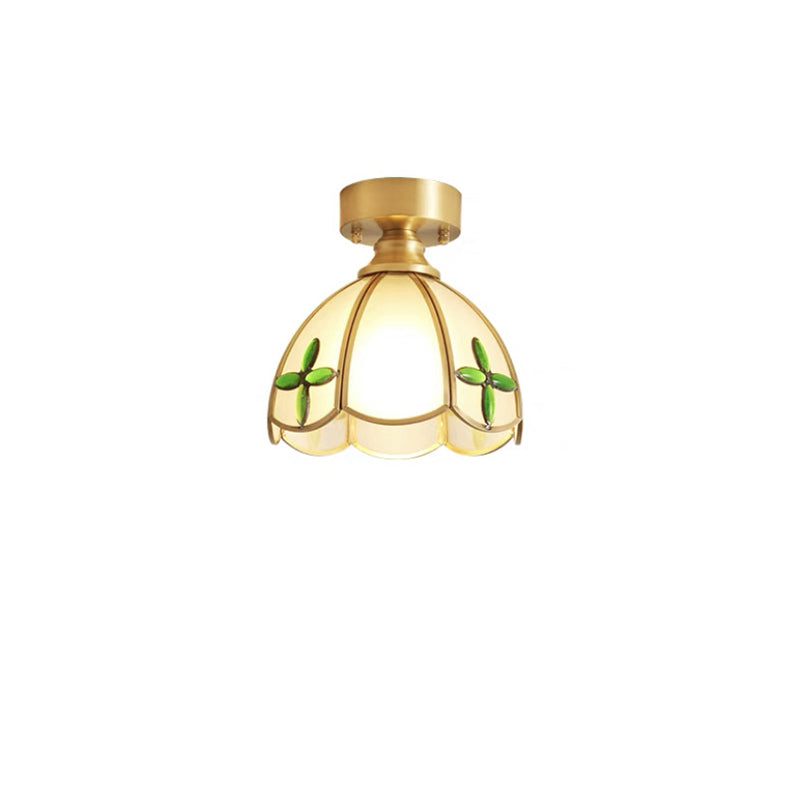伝統的なヴィンテージラウンドリーフアンブレラガラス銅1ライトセミフラッシュマウントシーリングライトリビングルーム用