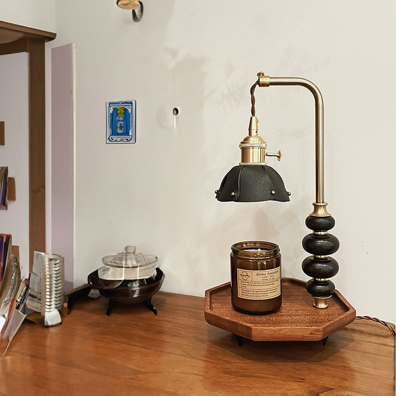 Traditional Vintage Round Octagonal Metal Wood Veneer 1-Light Melting Wax Table Lamp For Bedroom