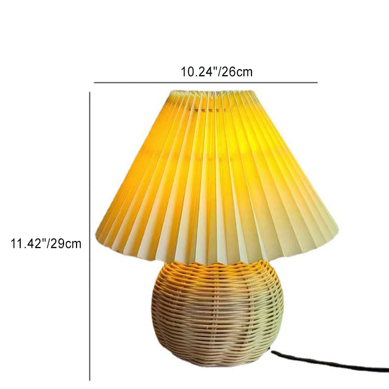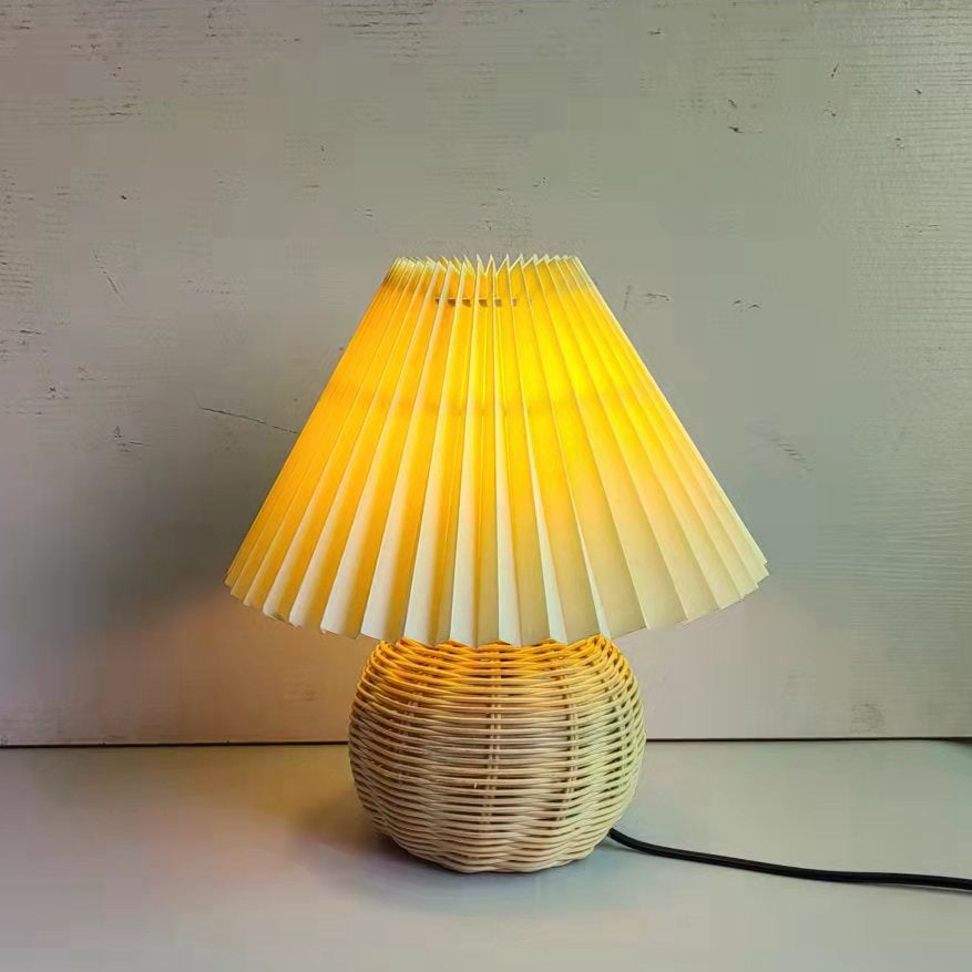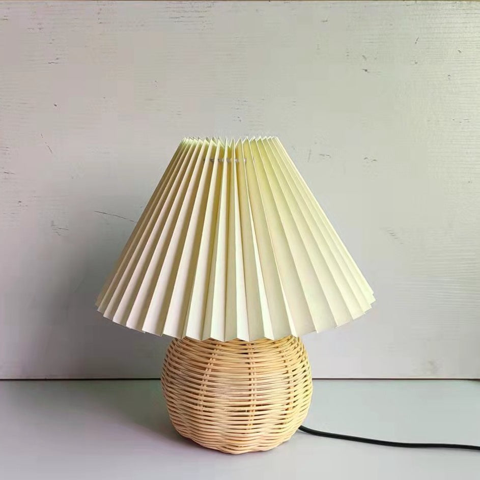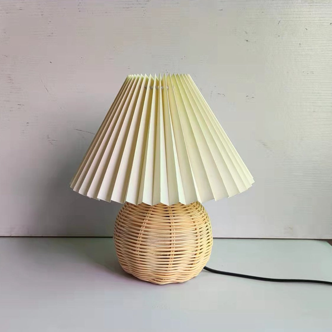 伝統的なヴィンテージラウンドプリーツ竹ファブリック1ライトテーブルランプ寝室用