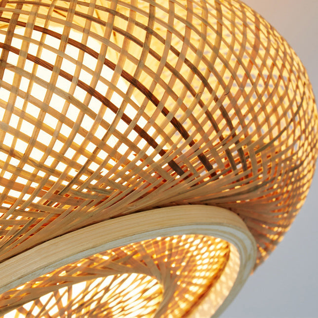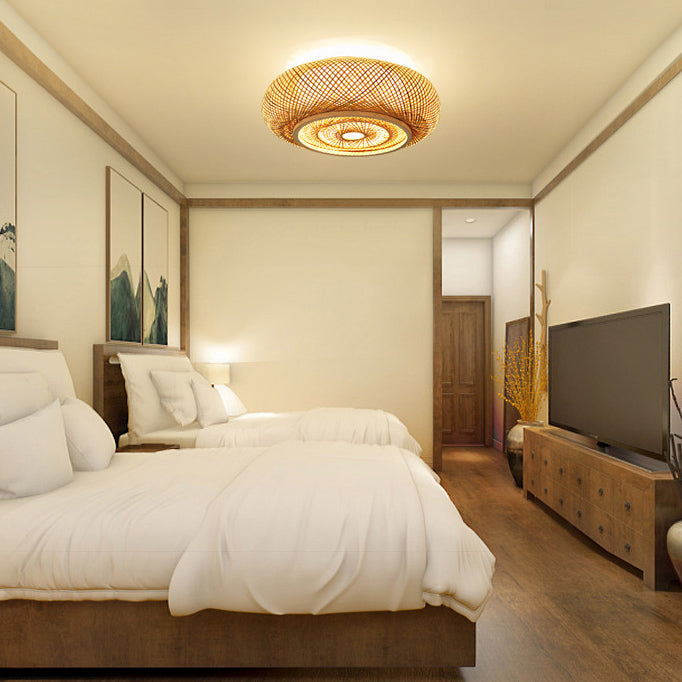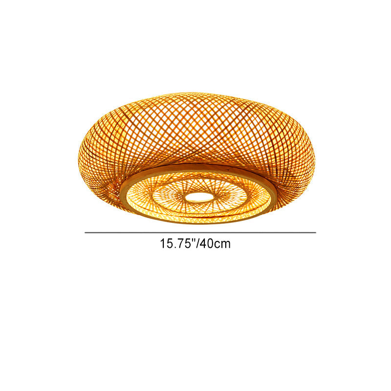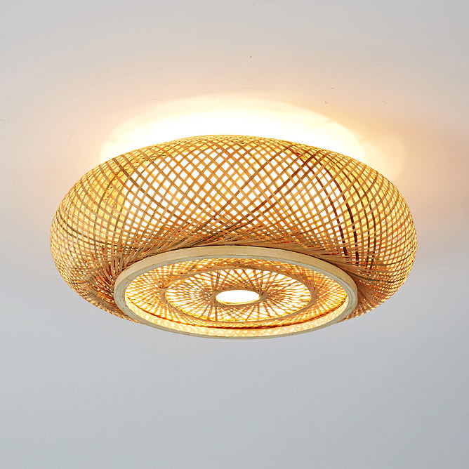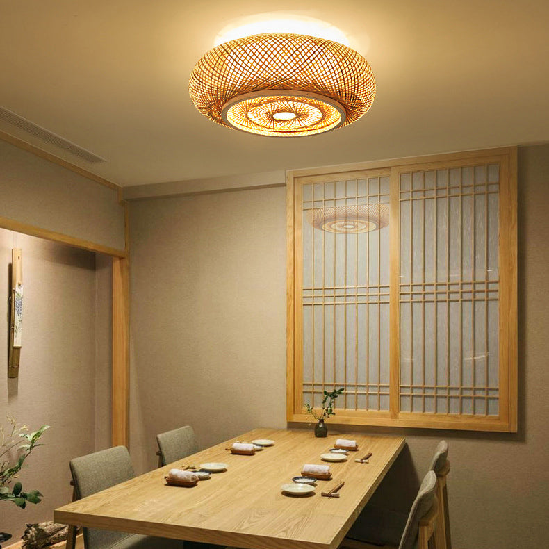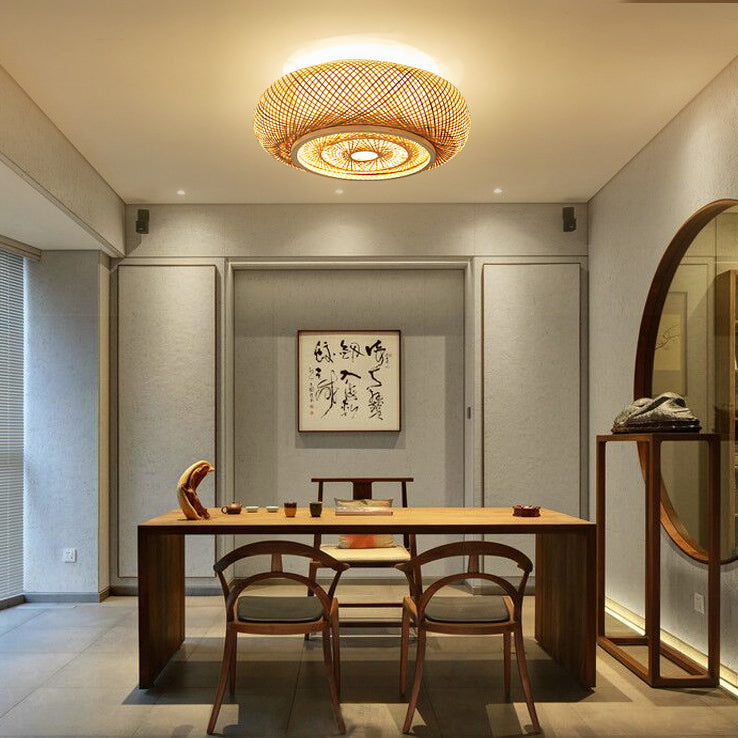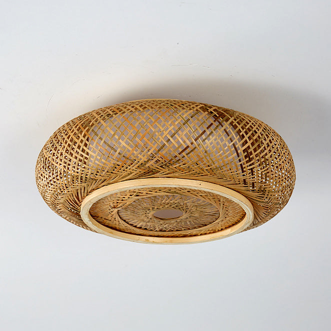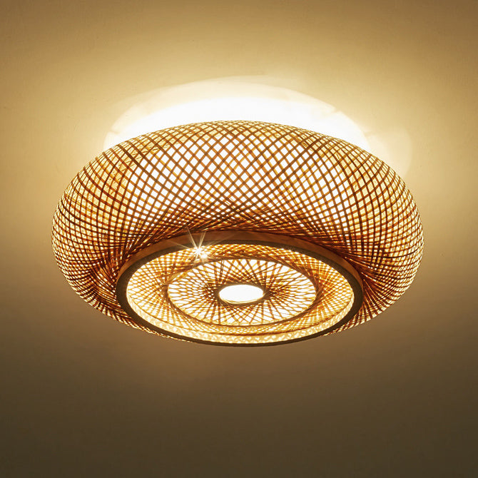 伝統的なヴィンテージラウンドスケルトン竹PVC 1ライトフラッシュマウントシーリングライトリビングルーム用
