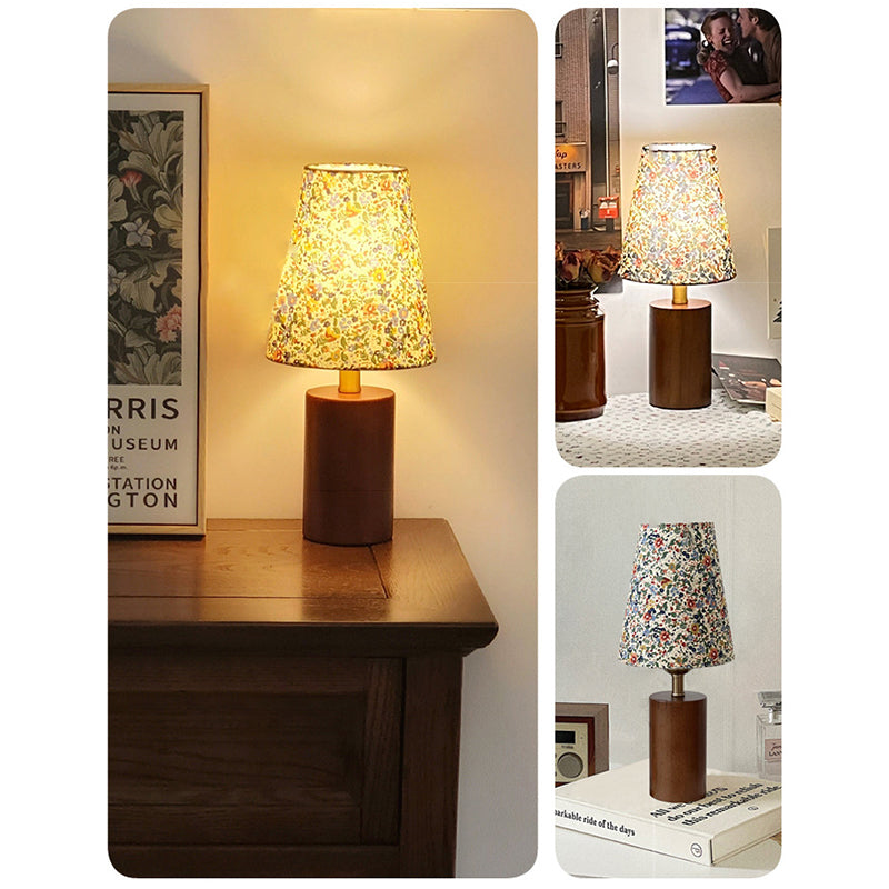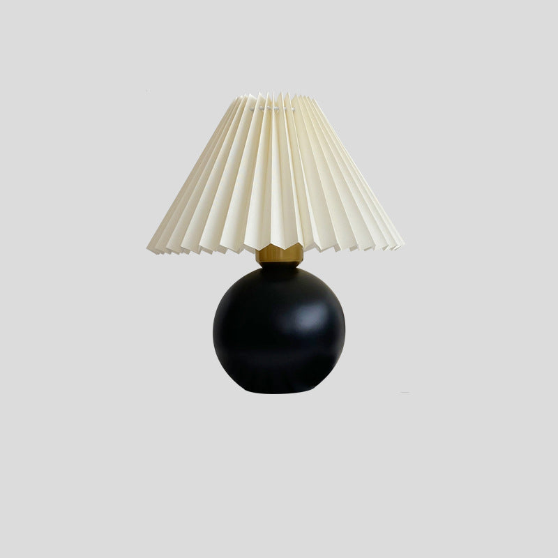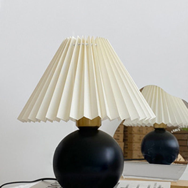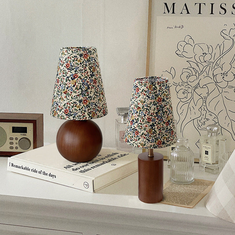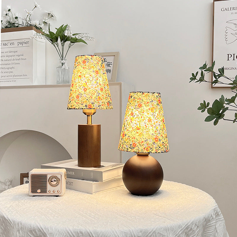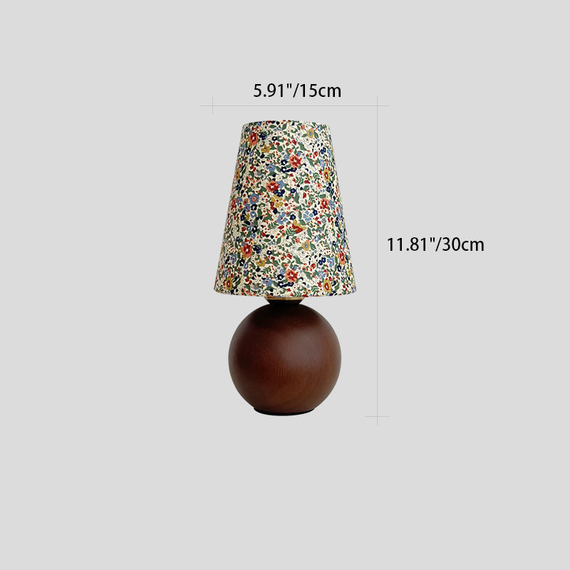 Traditional Vintage Round Sphere Rubberwood Cloth 1-Light Table Lamp For Bedroom