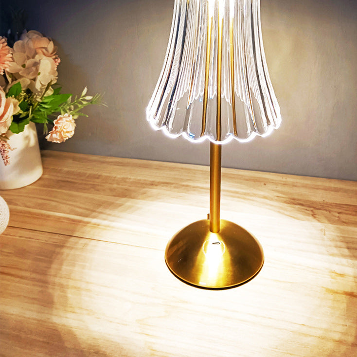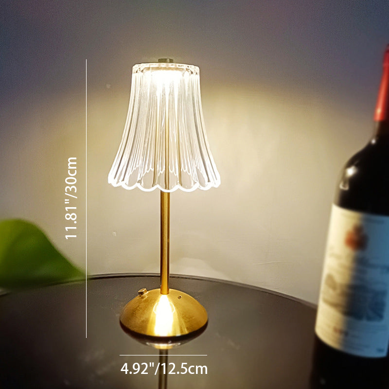 伝統的なヴィンテージラウンドストライプシリンダー半円ベース充電式アイアンクリスタルLEDテーブルランプ寝室用