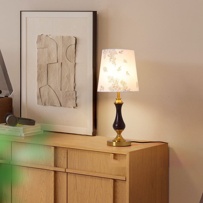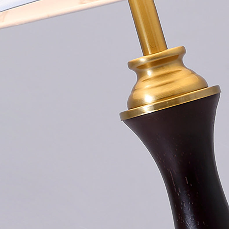 Traditional Vintage Round Table Bottle Disc Base Ash Wood Hardware Fabric 1-Light Table Lamp For Bedroom