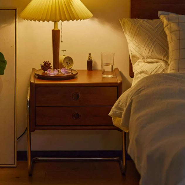 Traditional Vintage Square Wood Stainless Steel Nightstand 2-Drawer For Bedroom