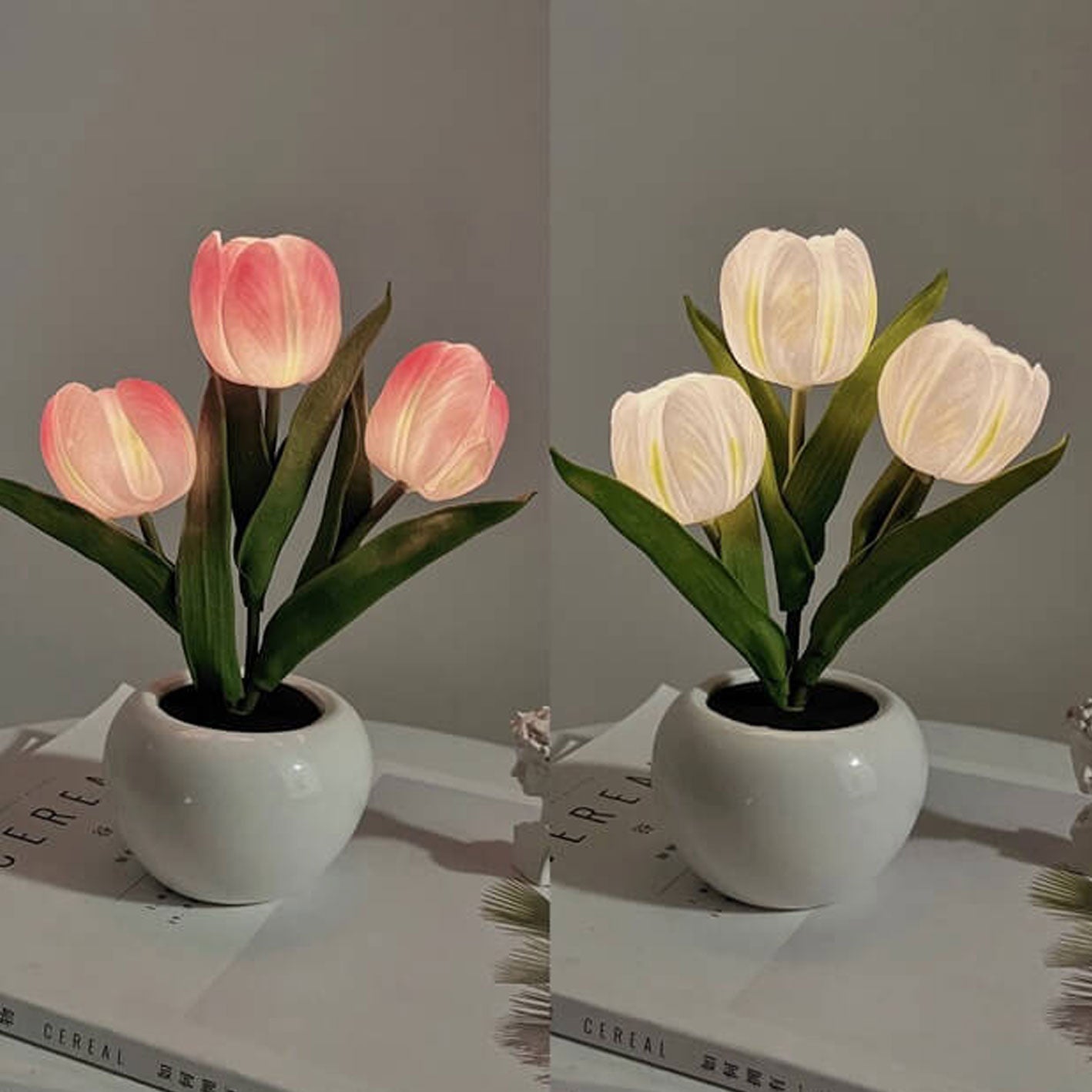 Tulip Night Light Simulated Flower Bouquet Decorative Ambient LED Table Lamp