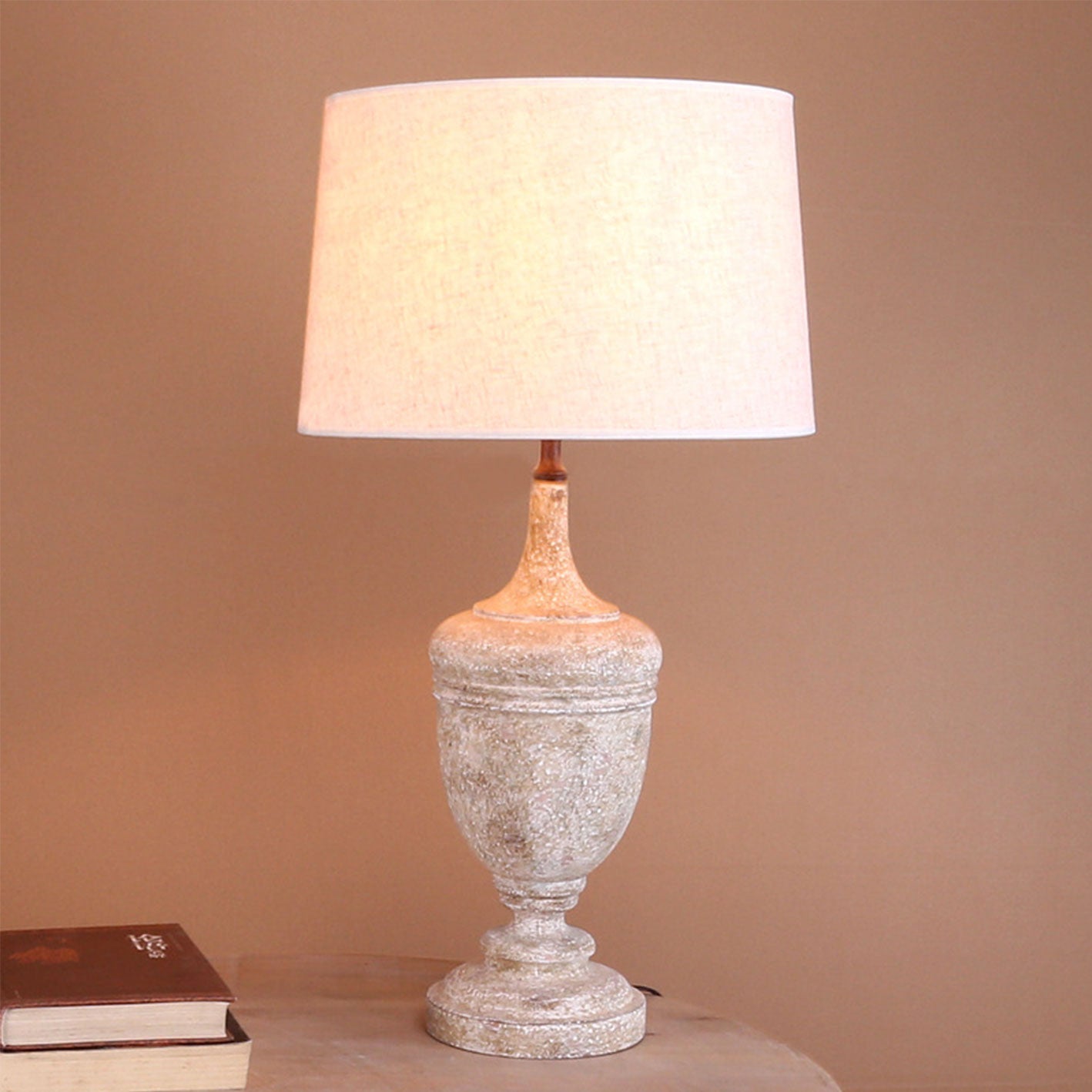 Vintage Country Fabric Doing Old Solid Wood Base 1-Light Table Lamp