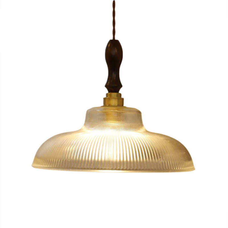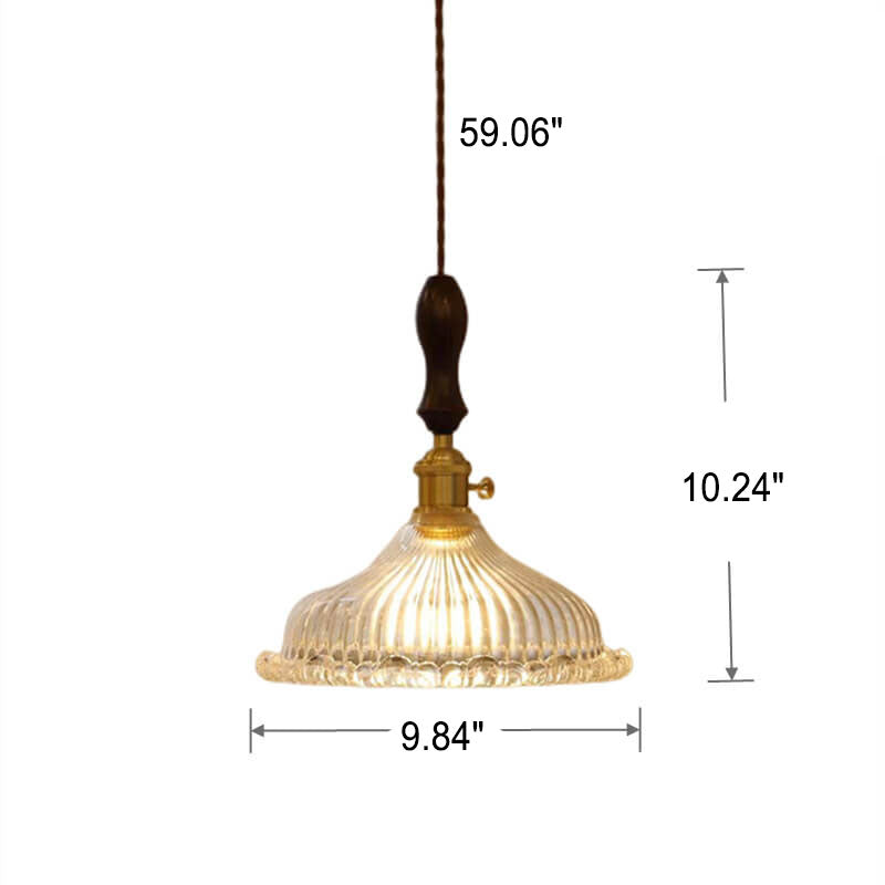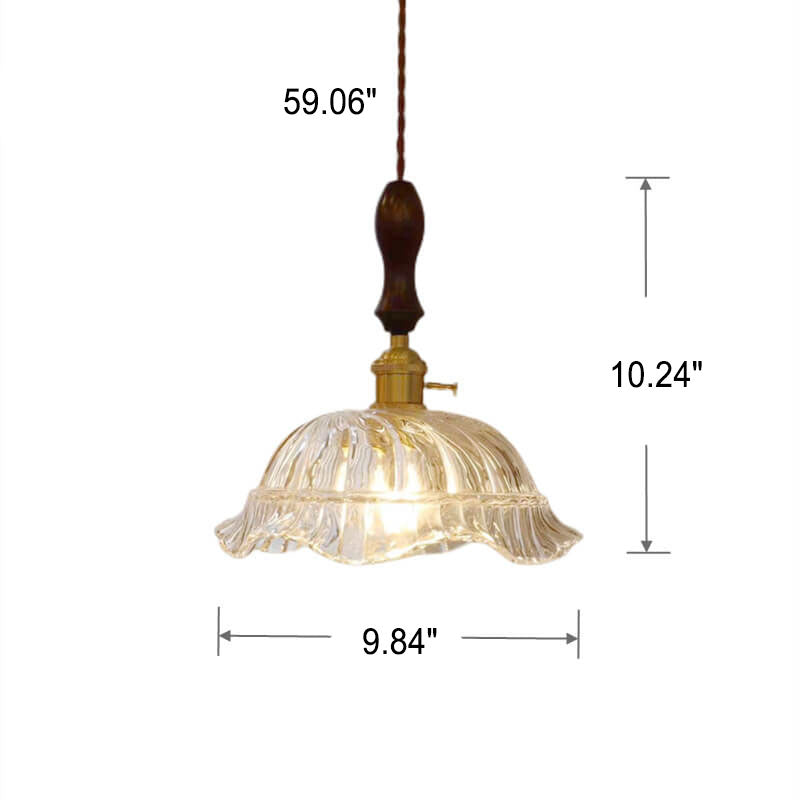 ヴィンテージガラスフラワードーム真鍮ウォールナット1灯ペンダントライト